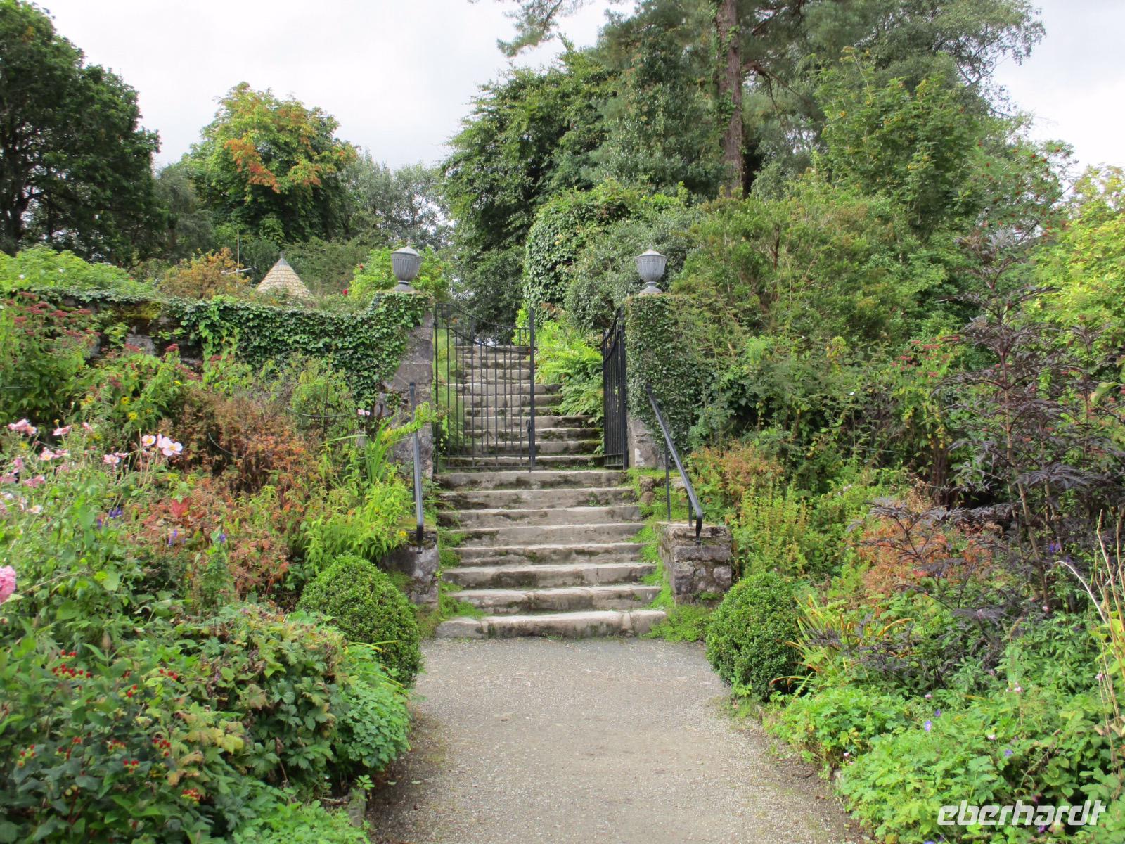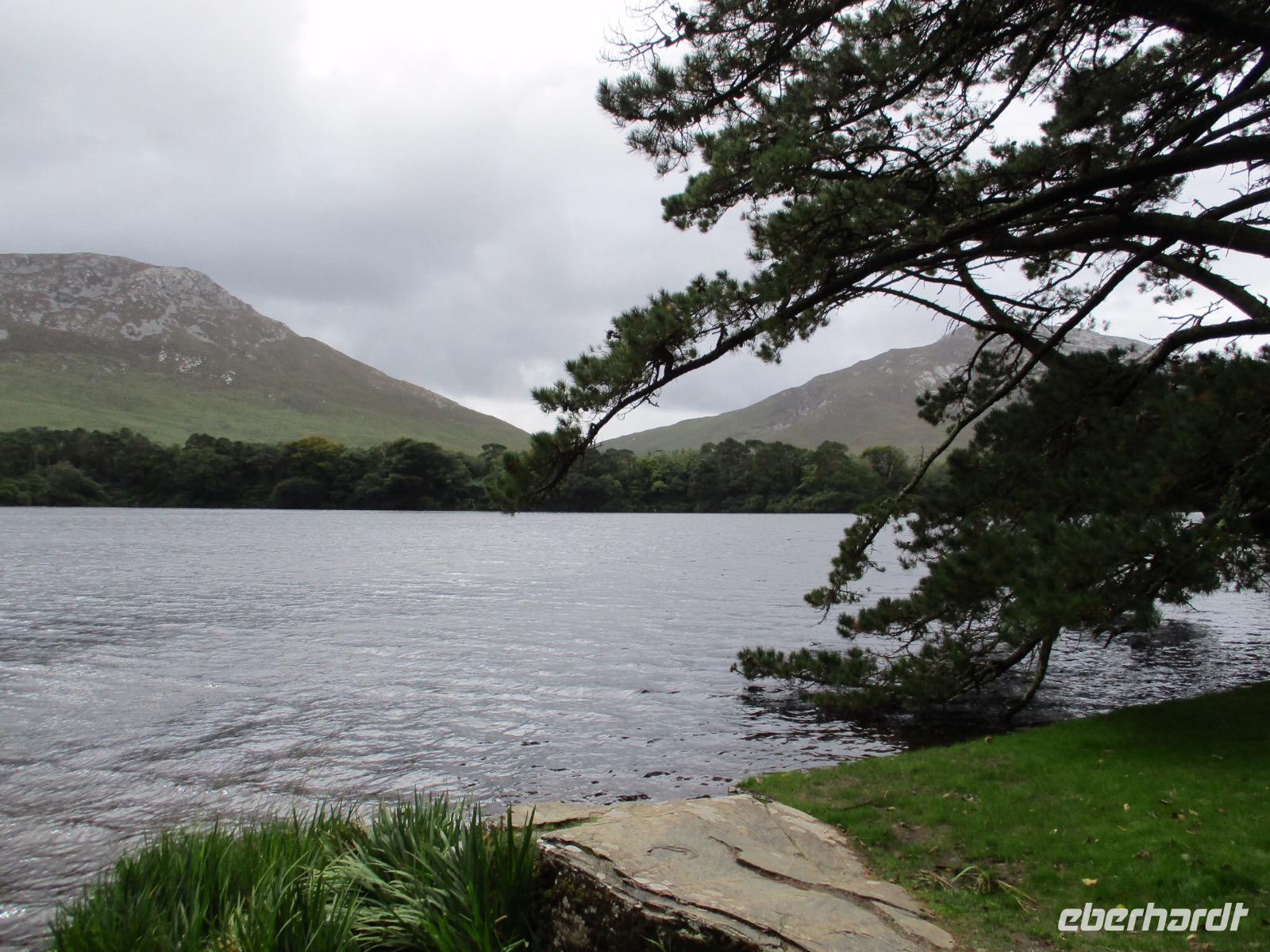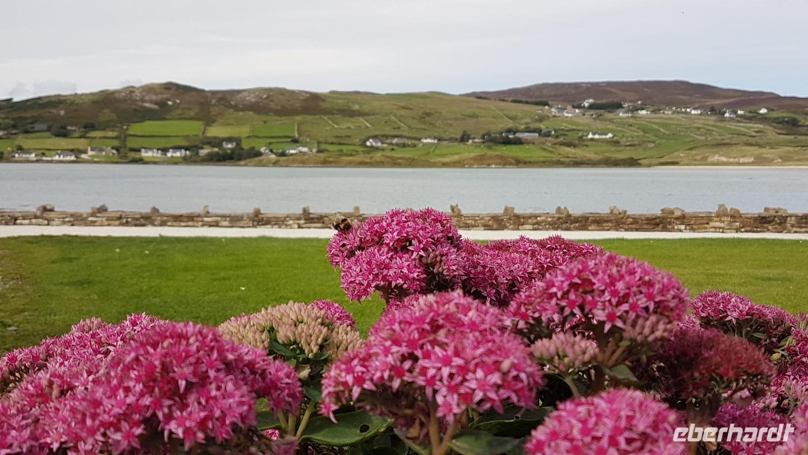 Zunächst sahen wir einen Film über die Entstehung des Nationalparks und vor allem über die Erbauer und Besitzer des Castles, das sich inmitten von rauher und karger Berglandschaft am idyllischen Ufer des Veagh Sees befindet. Es ist ein im Stil der schottischen Aristokratie errichtetes Schloss, es diente einst als Jagdschloss. Wir spazierten durch herrlich angelegte Gärten, wandelten in den stilvoll eingerichteten Räumen von Glenveagh Castle, staunten über üppig blühende Fuchsien und Hortensien und genossen den beruhigenden Blick über den See, der sich umrahmt von imposanten Bergen zu Füßen des kleinen Schlosses erstreckt.