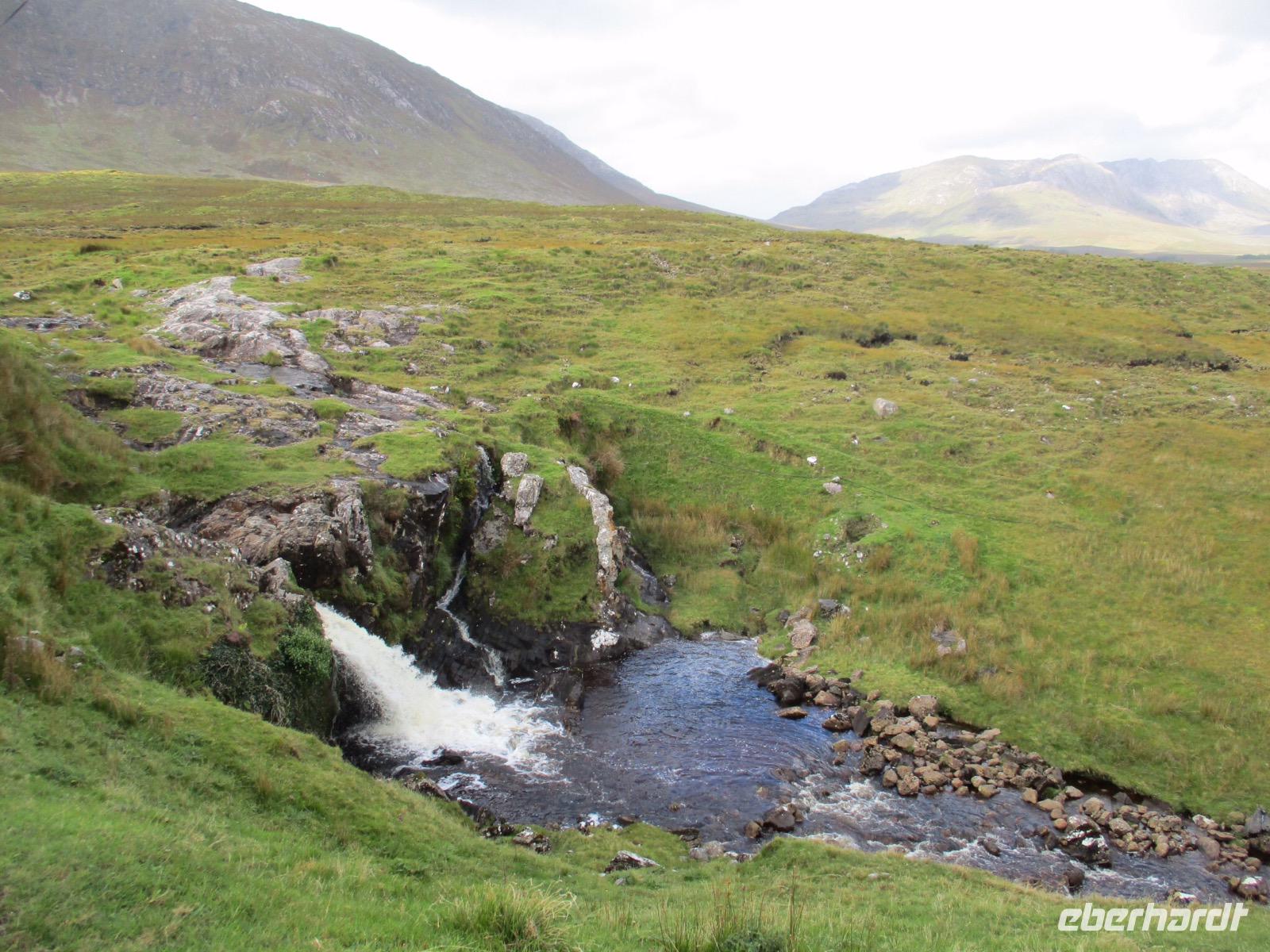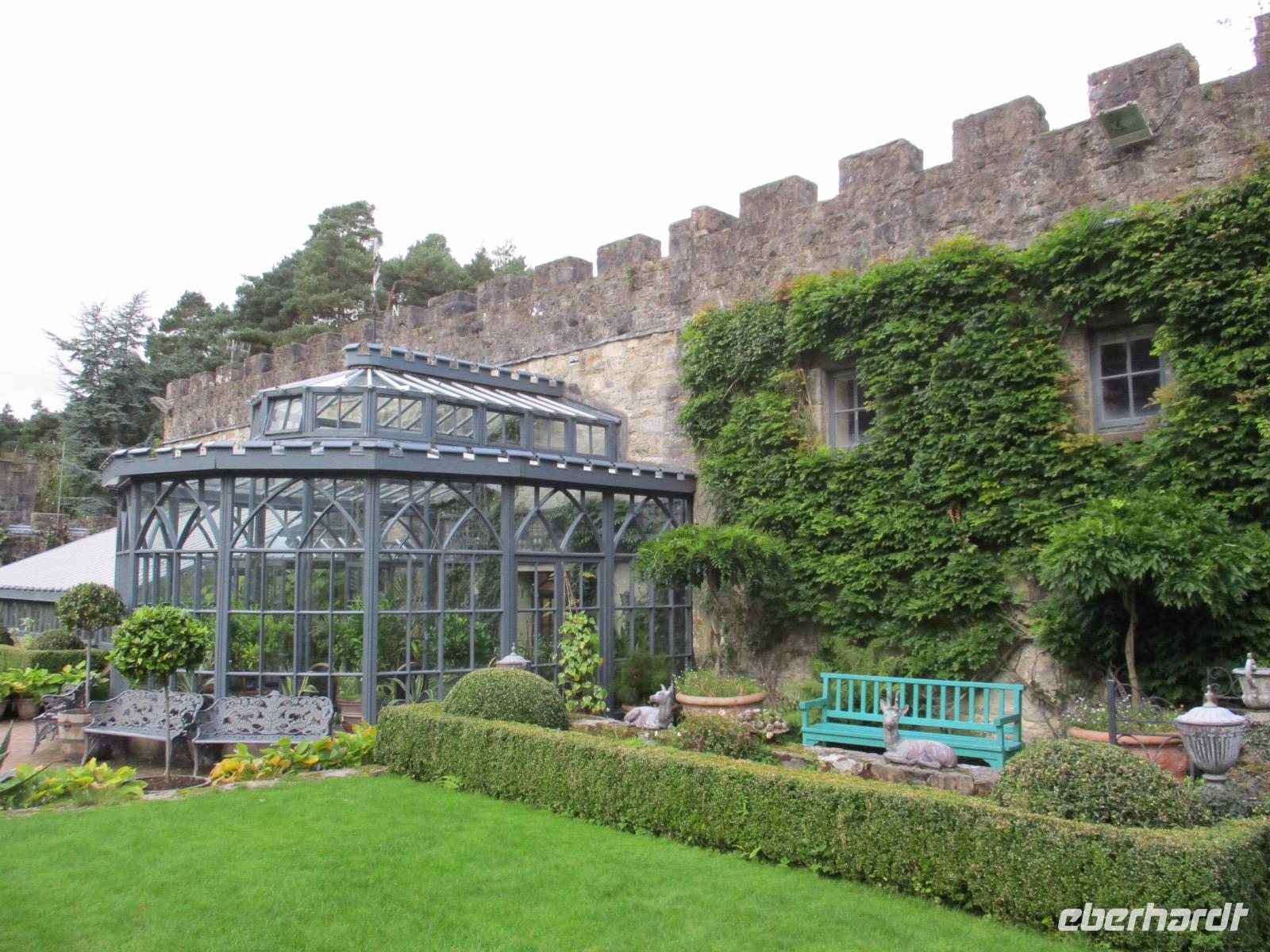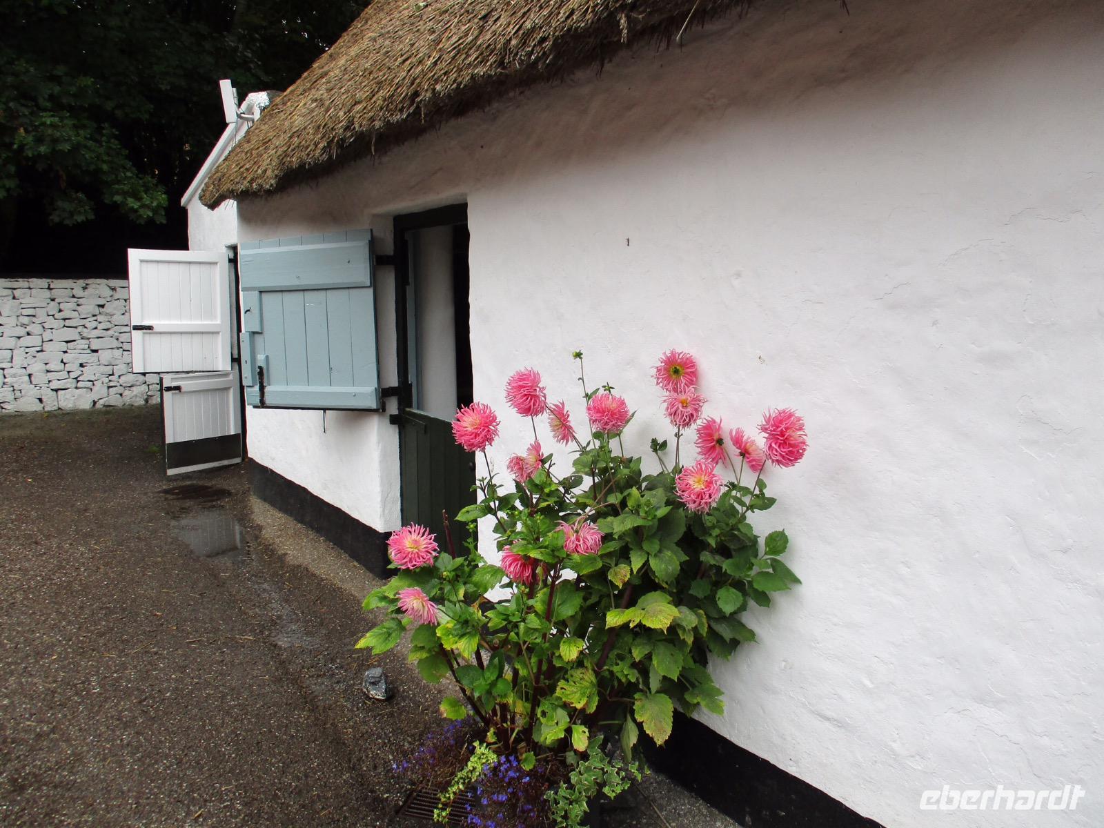 Zunächst sahen wir einen Film über die Entstehung des Nationalparks und vor allem über die Erbauer und Besitzer des Castles, das sich inmitten von rauher und karger Berglandschaft am idyllischen Ufer des Veagh Sees befindet. Es ist ein im Stil der schottischen Aristokratie errichtetes Schloss, es diente einst als Jagdschloss. Wir spazierten durch herrlich angelegte Gärten, wandelten in den stilvoll eingerichteten Räumen von Glenveagh Castle, staunten über üppig blühende Fuchsien und Hortensien und genossen den beruhigenden Blick über den See, der sich umrahmt von imposanten Bergen zu Füßen des kleinen Schlosses erstreckt.
