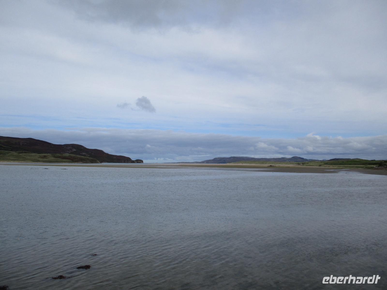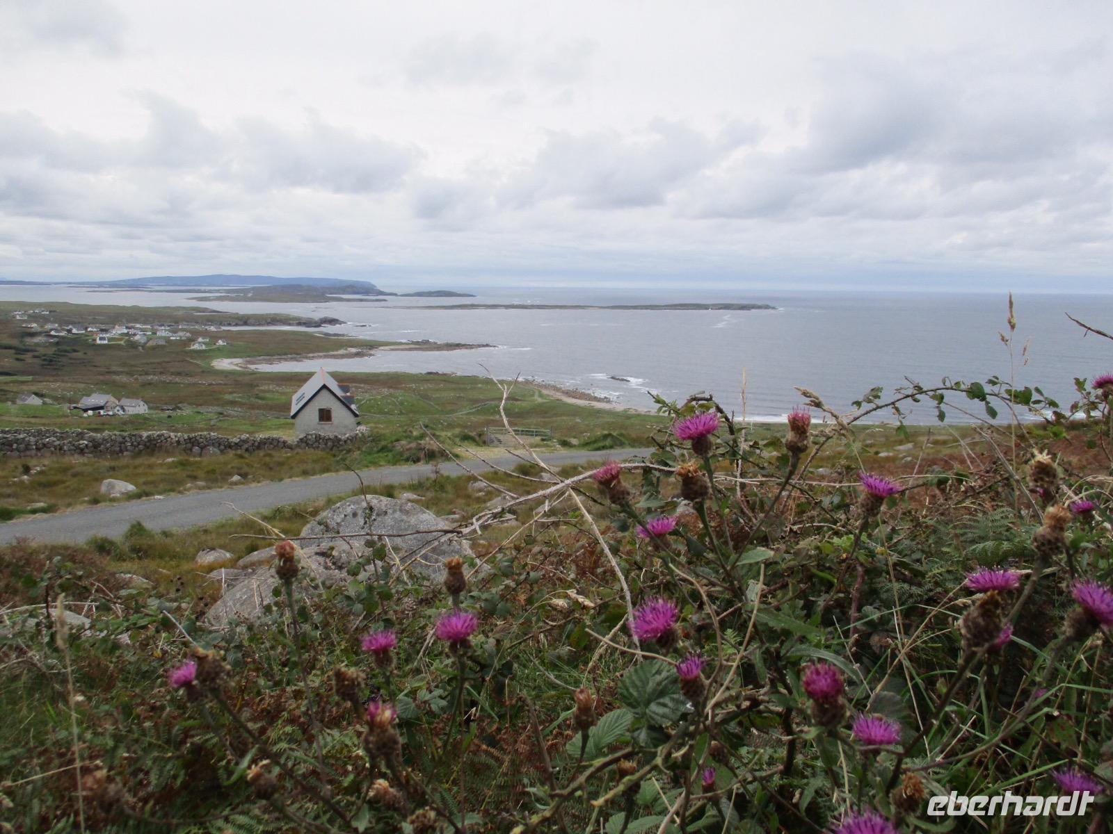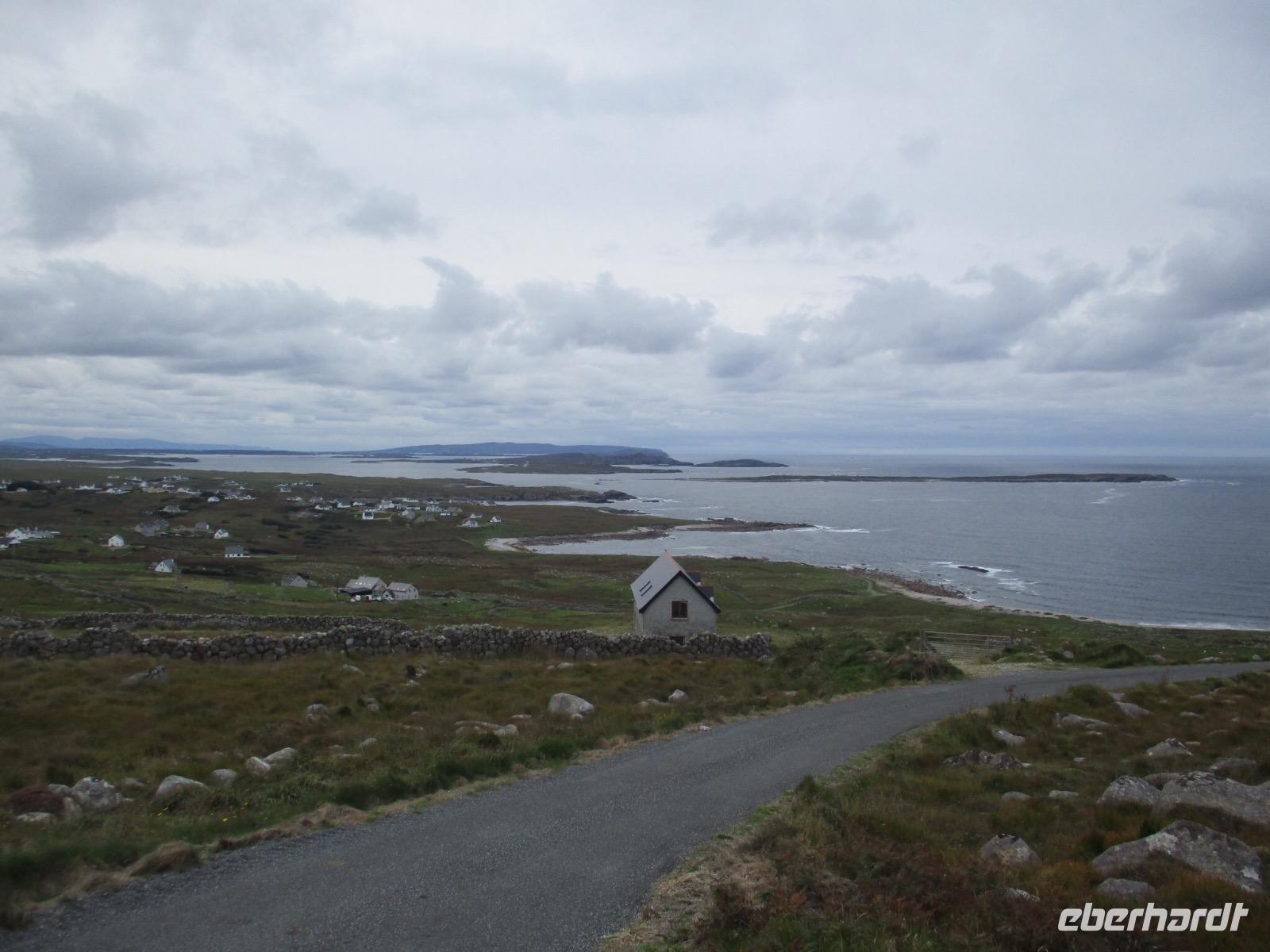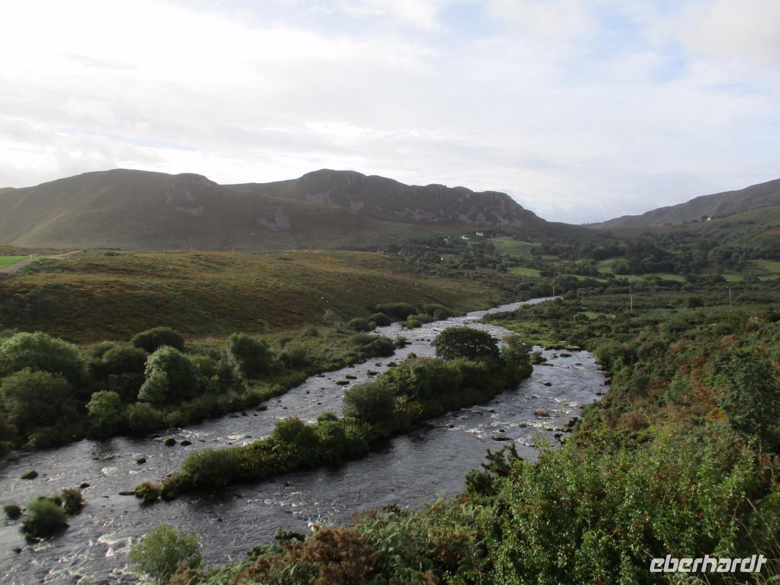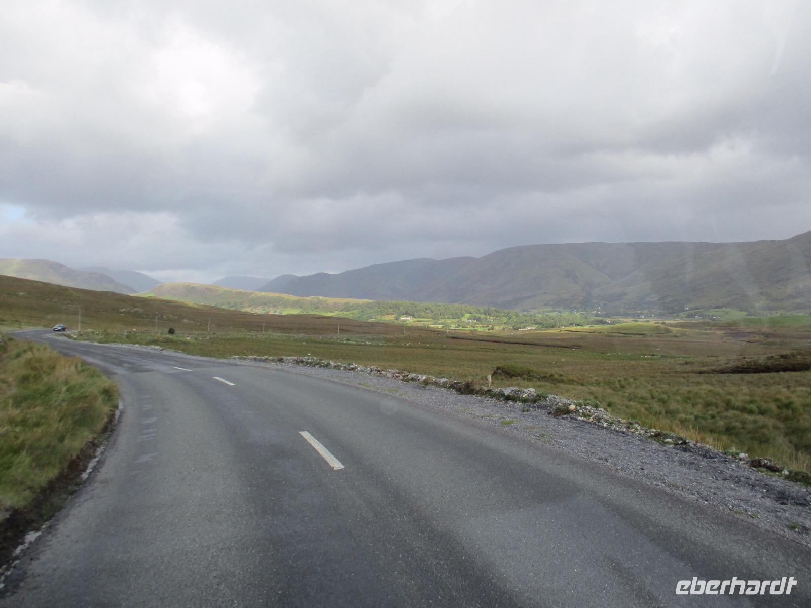 Nach diesem wunderschönen Besuch hieß es Abschied nehmen, wir verließen den Nationalpark, um das County Donegal zu erkunden. Zunächst fuhren wir Richtung Westen, bis wir die berühmte Küstenstraße „Wild Atlantik Way" erreichten. Unterwegs hielten wir mehrere Male an, um die beeindruckende Natur im Foto festzuhalten: von Gletschern geformte weite Täler, karg bewachsene imposante Berge, alte Kirchen und hübsche Dörfer, und immer wieder der Atlantik, der sich mit tosenden Wellen und in seiner rauen Schönheit gegen die Felsen der Küste aufbäumte. Die Gischt schoss hinauf aufs Land, Wind erzeugte ständig neue Wellen. Aber auch breite Sandstrände konnten wir entdecken.