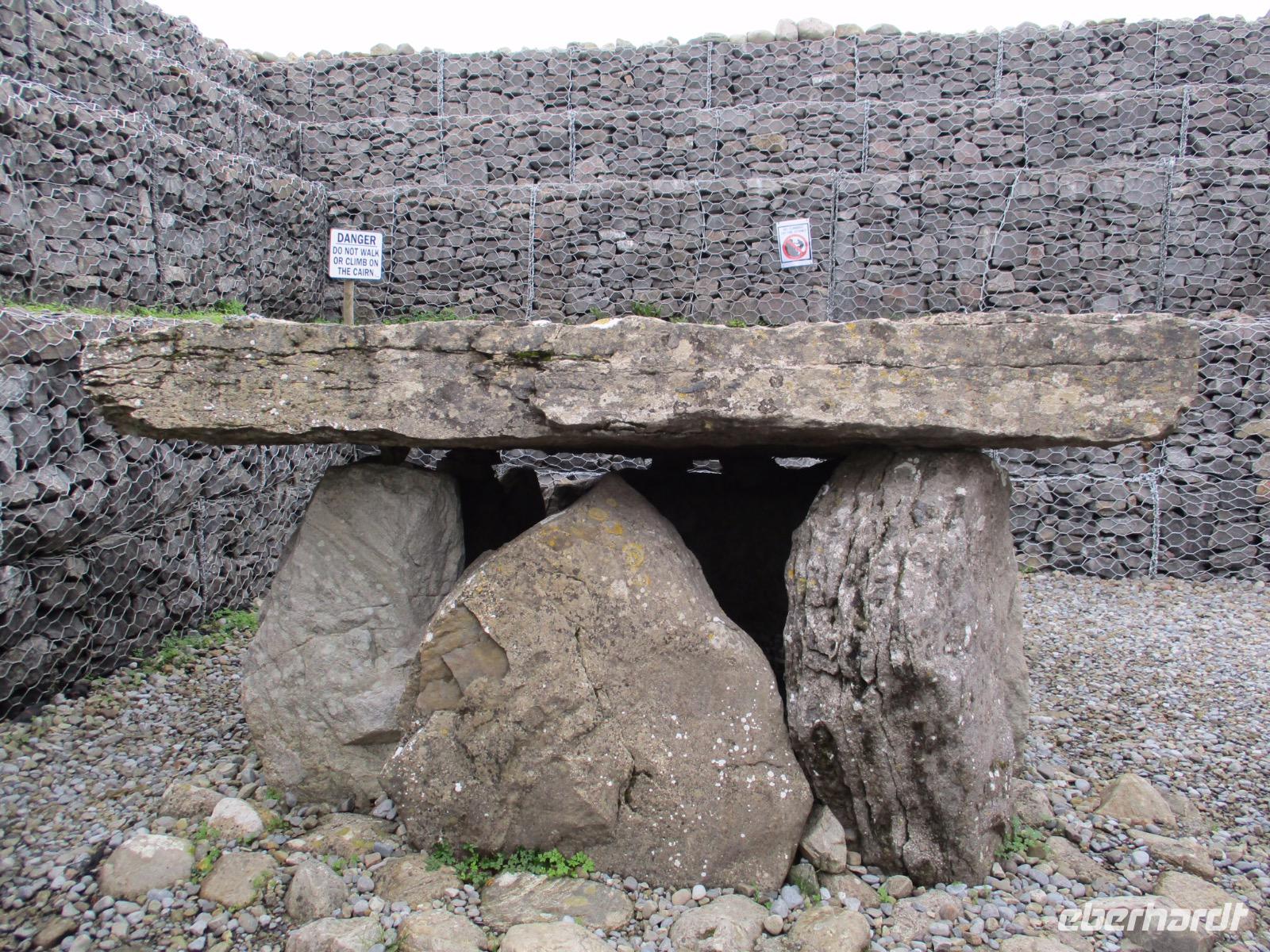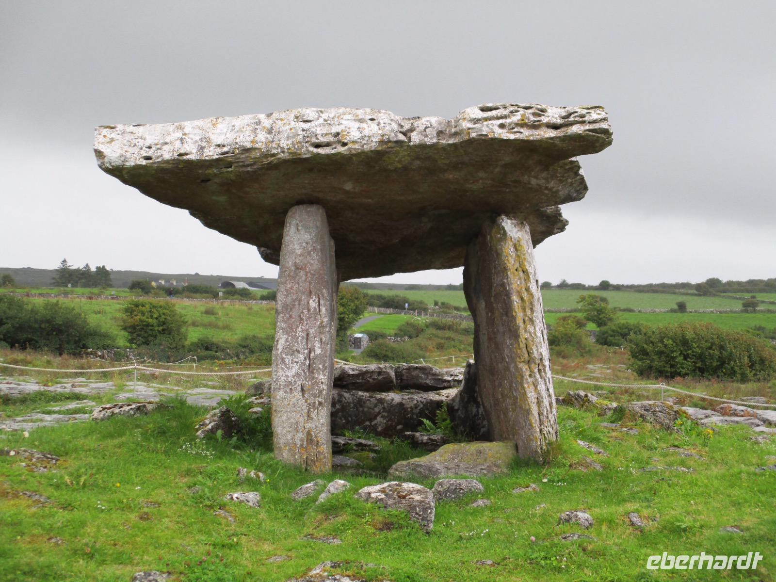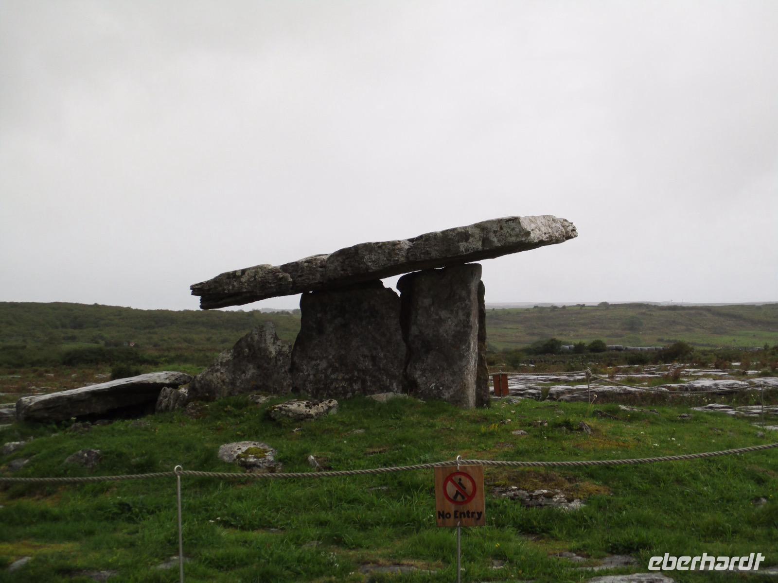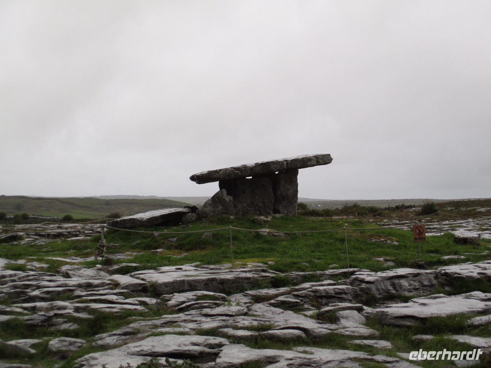Der Morgen empfing uns mit Sonnenschein, wir verließen Gort und fuhren in Richtung Südwesten, um zum Burren zu gelangen. Der Burren ist eine Karstlandschaft. Flache Kalksteinplatten bedecken das Gelände, manchmal hatten wir das Gefühl, in einer Mondlandschaft zu stehen. Prähistorische Monumente gibt es zahlreich in dieser einzigartigen Gegend. So hielten wir an am sogenannten Mühlsteintor, dem Poulnabrone Dolmen mitten im Burren. Wir staunten über die frühzeitlichen Menschen, die dieses Steingebilde vor etwa fünfeinhalb Tausend Jahren angelegt haben sollen.