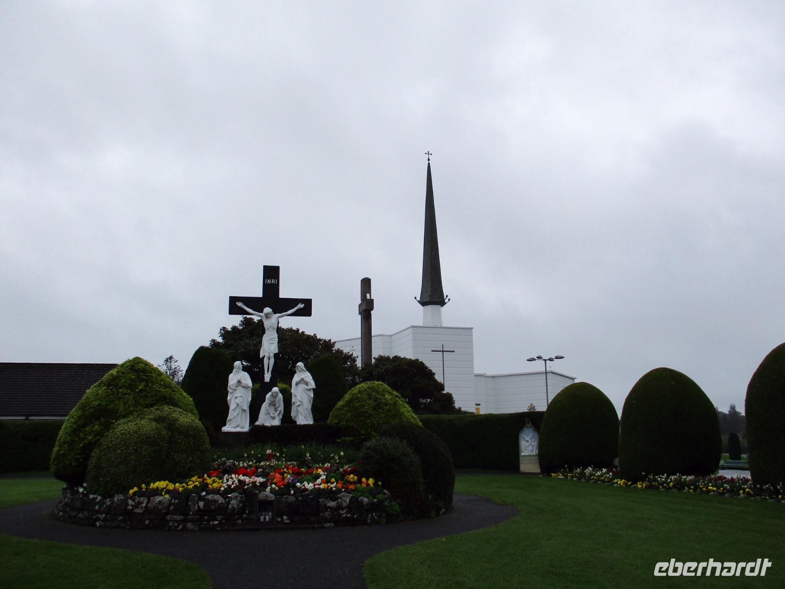 Am Nachmittag statteten wir einer der heiligsten Stätten der katholischen Kirche einen Besuch ab. Am 21. August 1879 soll hier einigen Einwohnern die Jungfrau Maria erschienen sein. Aus Knock wurde ein Wallfahrtsort, der über die Zeit viel Zuspruch von Pilgern erfahren hat. Eine neu gebaute Basilika fasst mehrere Tausend Gläubige. Viele kranke Menschen kommen hier her und hoffen auf Heilung. Aus mehreren Wasserhähnen kann man sich geweihtes heiliges Wasser für zu Hause abfüllen.