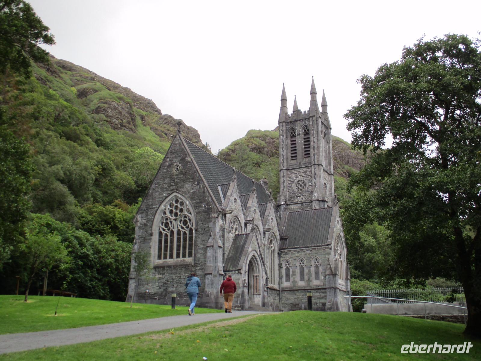Heute erwartete uns ein Tag mit atemberaubender Landschaft. Nicht weit hinter Galway erreichten wir das Gebiet Connemara. Weite Gletschertäler werden umrahmt von mächtigen Bergen, die sich in den zahlreichen malerischen Seen spiegeln. An mehreren Stellen hielt unser Bus, damit wir besonders schöne Fotos dieser beeindruckenden Landschaft machen konnten. Am Mittag erreichten wir schließlich Kylemore Abbey nicht weit vom Nationalpark Connemara entfernt. Das heutige Benediktinerinnenkloster war einst als Schloss direkt an einem Seeufer errichtet worden. Die Lage des Anwesens ist traumhaft. Mit einem Shuttlebus konnten wir zum viktorianischen Garten der Anlage fahren. Zu Fuß erreichten wir die neogotische Kirche und das Mausoleum von Kylemore Abbey.