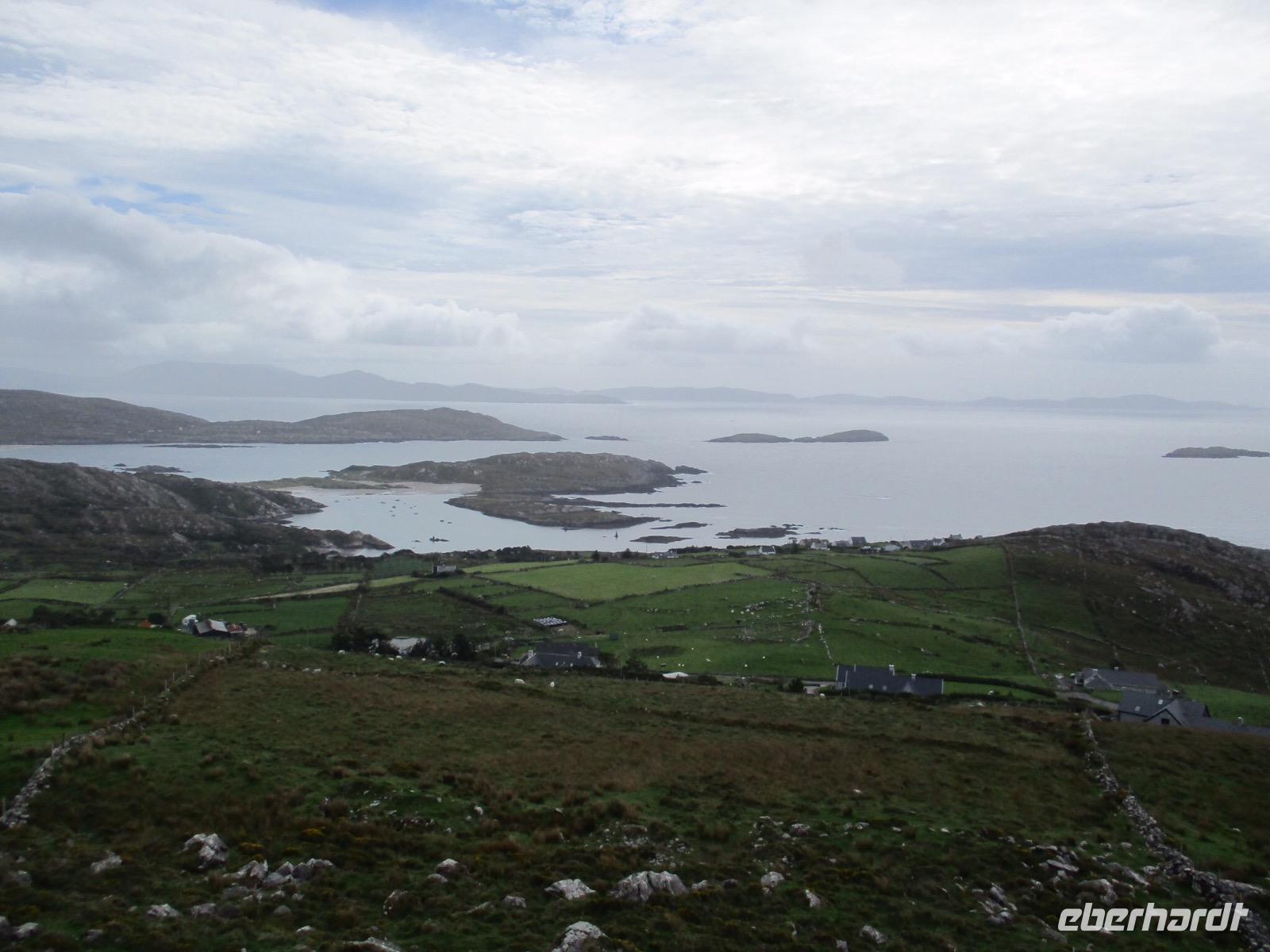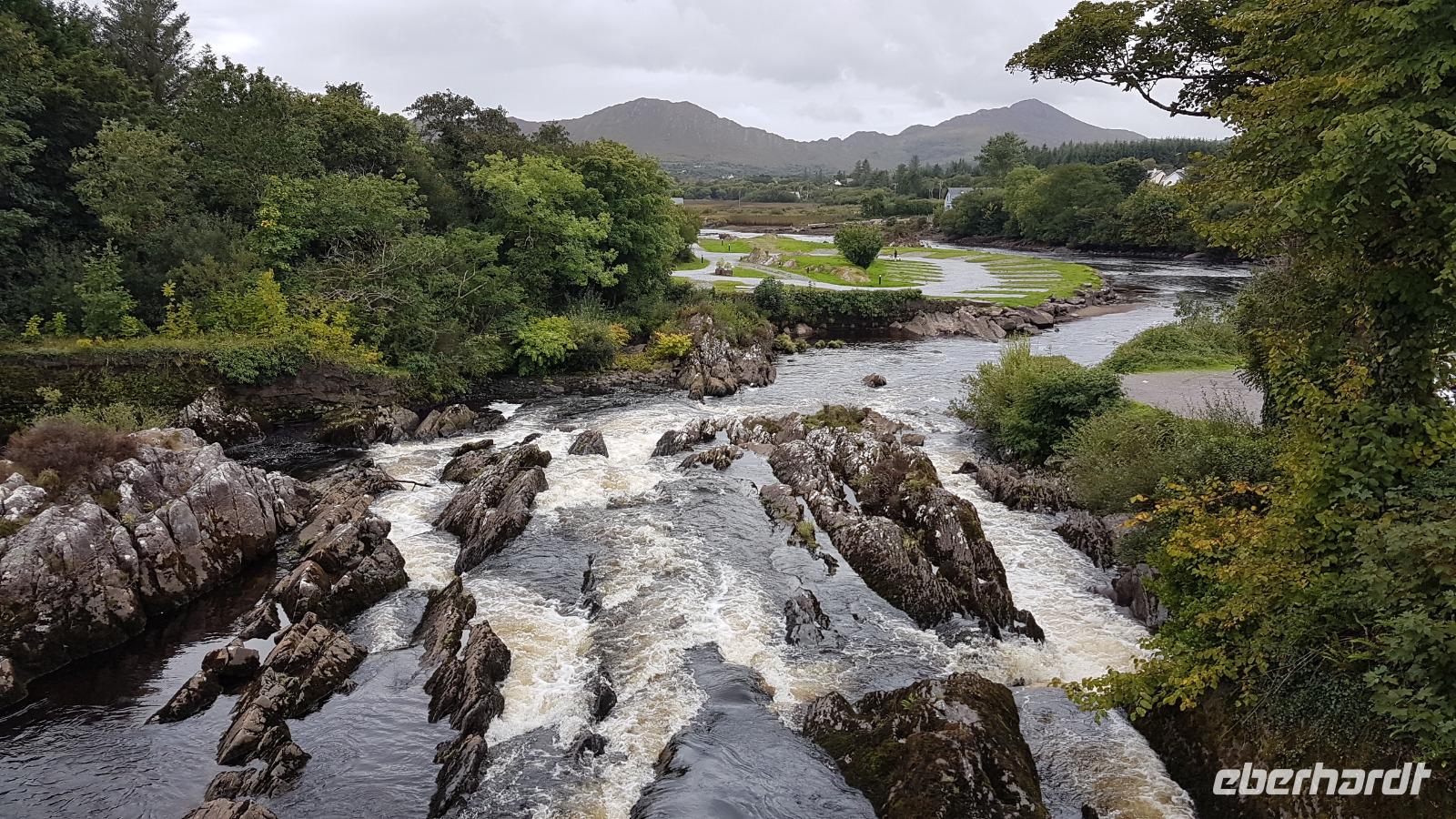 Auf unserem weiteren Weg genossen wir den ein oder anderen wunderbaren Blick über eine Bucht im Atlantik. In Sneem spazierten wir über eine alte Steinbrücke, unter der ein Fluss über tief eingeschnittene Felsblöcke strömt und sprudelt. Wir probierten ein Eis oder stöberten in den hübschen Geschäften nach Souvenirs.