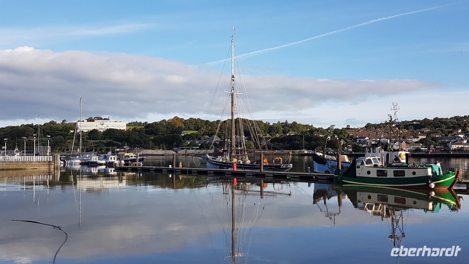 Wir verließen Tralee und erreichten nach einiger Fahrt die Stadt Cork. Wir unternahmen einen Spaziergang und entdeckten sicher noch das ein oder andere Souvenir bzw. erwarben einen Kaffee in einem der zahlreichen Cafés in der Stadt. Eine ausgedehnte Mittagspause legten wir in Cobh ein. Das ist ein hübsches kleines Hafenstädtchen mit historischem Bahnhof und einer Uferpromenade. Hier hatte die Titanic das letzte Mal auf ihrer Jungfernfahrt angelegt, um weitere Passagiere aufzunehmen, bevor sie ihr tragisches Ende fand. Wir aber genossen das herrliche und sonnige Wetter dieses Tages, saßen auf den Bänken mit Blick auf das Meer. Am Nachmittag erreichten wir die Jameson Distillery in Midleton. Bei einer Führung wurde uns alles über die Produktion des Whiskeys erzählt. Wir verkosteten das hier gebrannte „Wasser des Lebens" und hatten auch Gelegenheit, das ein oder andere hochprozentige Mitbringsel im Shop der Distillery zu erstehen. Nach diesem Besuch sangen und klatschten wir in unserem Bus zum berühmten Lied „Whiskey in the jar". Den Abend verbrachten wir in Waterford im Tower-Hotel, direkt neben einem berühmten Turm aus der Wikingerzeit. Das Abendessen wurde uns als sehr schmackhaftes Drei-Gänge-Menü serviert.