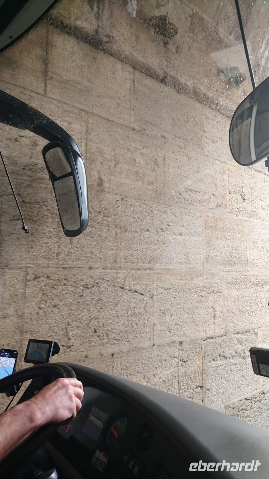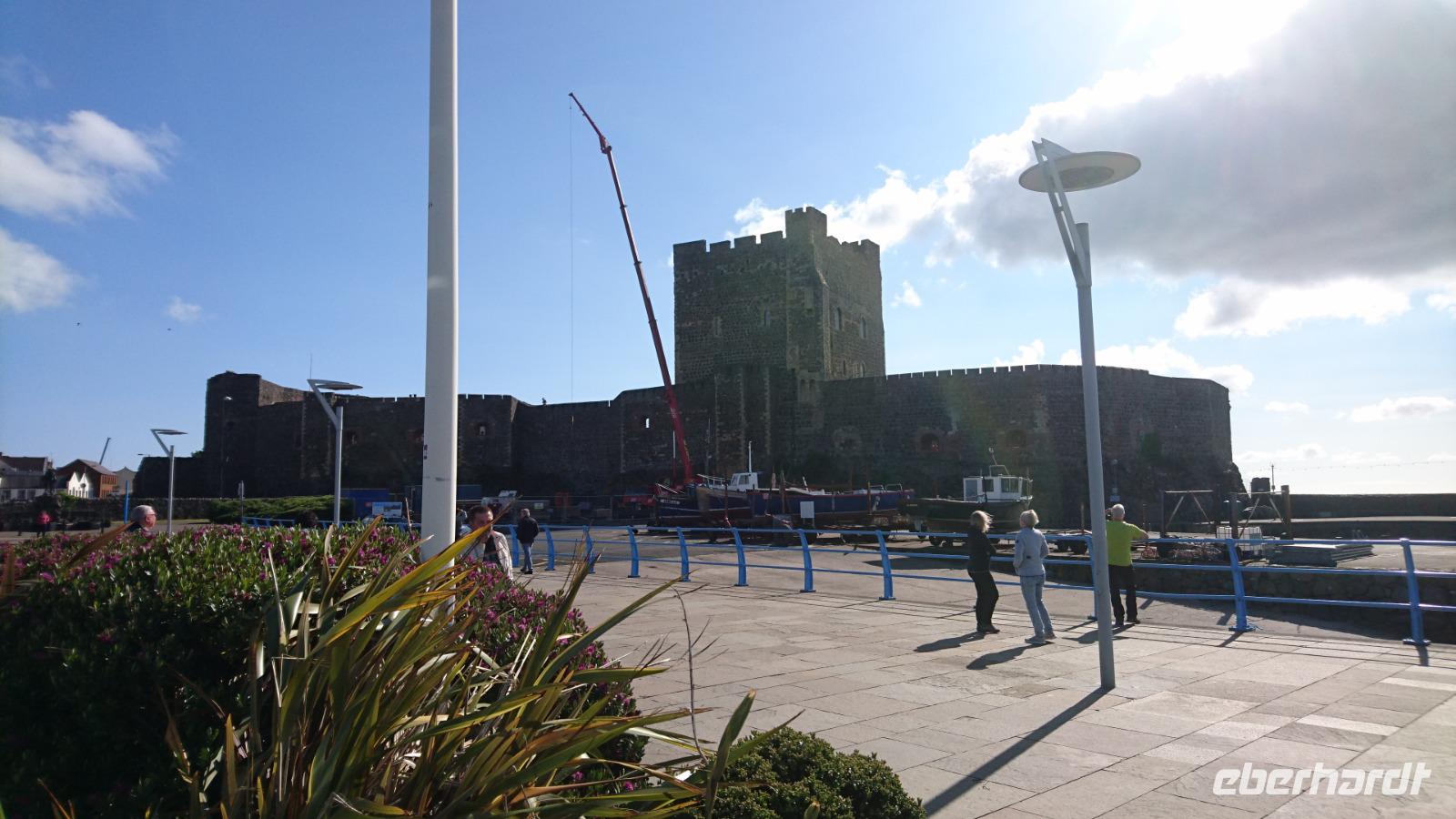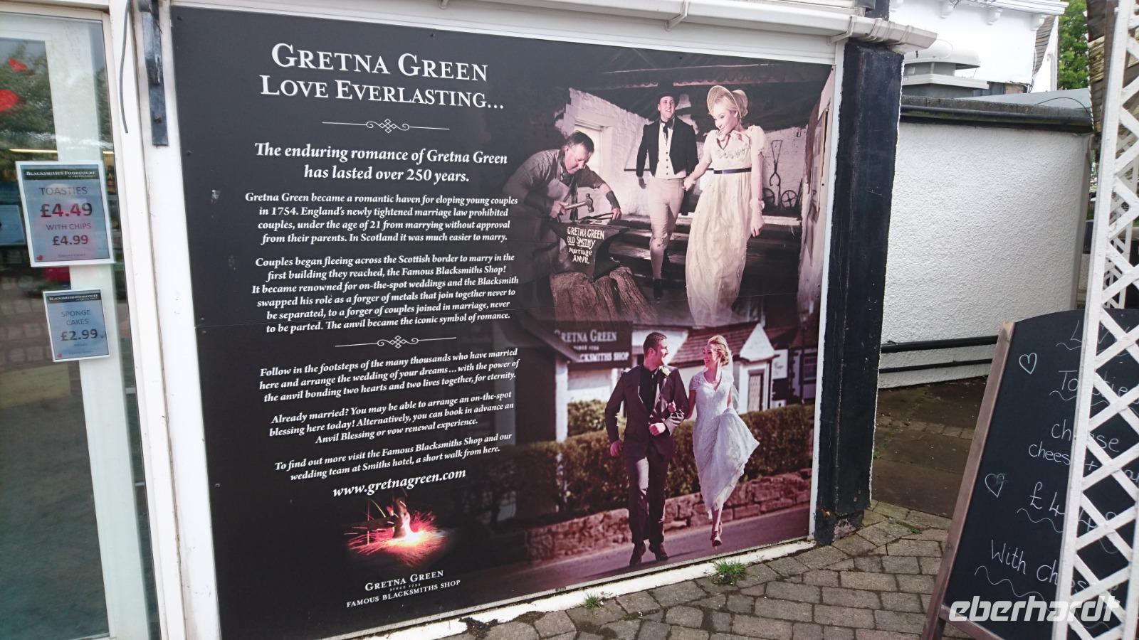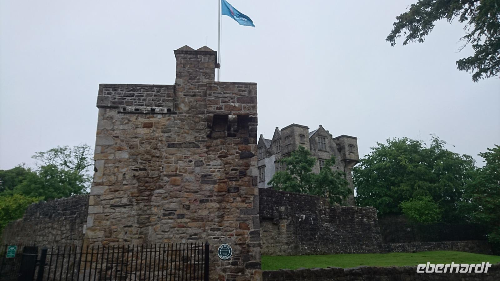 Der Lautsprecher an Bord weckte uns, wie Stefan es uns bereits am Abend vorher ankündigte. Uns blieb genügend Zeit für Dusche, Frühstück und Einpacken unserer wenigen Dinge im Fährgepäck, das wir extra dafür schon zuhause packten, um nicht mit den großen Koffern durch die schmalen Gänge in die kleinen Kabinen an Bord gehen zu müssen. Wir brauchten ja nicht viel in dieser ersten Reisenacht, sodass unsere Koffer gemütlich im Bus schlummern konnten. Dan ging es von Bord und nachdem wir die britischen Einreisemodalitäten erledigten, erwartete uns Peter mit unserem Bus bereits vor dem Terminal. Schnell verteilten er und Stefan noch einige Getränke, dann erklang schon die britisch-englische Nationalhymne und wir sahen die britische und die englische Fahne, die Stefan schwenkte und uns gleich in ihrer Zusammensetzung erläuterte. Wir waren jetzt also in Großbritannien, genauer gesagt in England. Doch das sollte sich im Laufe des Vormittags noch ändern. Erst einmal ging es entlang des Hadrianswalles auf englischer Seite in Richtung Carlisle, dort dann gen Norden nach Schottland hinein, wo wir wieder Fahne und Hymne zur Begrüßung geboten bekamen, ehe wir unsere Mittagspause in Gretna Green, direkt bei der Hochzeitsschmiede einnahmen und gleich noch einen Dudelsackspieler und die Geschichte des Ortes und der Schmiede an der englisch-schottischen Grenze erfuhren, ehe wir wieder weiter fuhren. Wir sahen bereits, dass Peter und Stefan etwas besorgt waren, doch alles ging gut, auf die Minute genau erreichten wir den nächsten Fährhafen, denn wir mussten heute noch einmal übers Wasser, von der Insel Großbritannien nach Irland. Die Fähe legte bald ab und wir fuhren unserer Urlaubsinsel entgegen, erreichten sie am zeitigen Abend und fuhren unter den Klängen der inoffiziellen nordirischen Hymne und unser dem Schwenken der nordirischen Fahne von Bord, dann durch Belfast und als wir dann schließlich am richtigen Hotel, einem Radisson Blue gleich am River Lagan unweit der Innenstadt, ankamen, begrüßten wir auch gleich unsere Fluggäste, die erst am Morgen in Deutschland starteten und schon hier waren, auf uns warteten und wenig später im schönen Restaurant mit uns das Abendessen einnahmen. Auch heute waren wir müde, hatten viel gesehen und erlebt und ruhten uns kurz darauf für Kommendes aus.