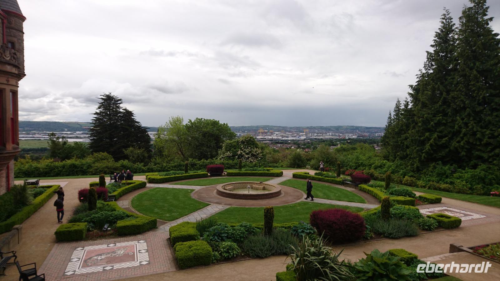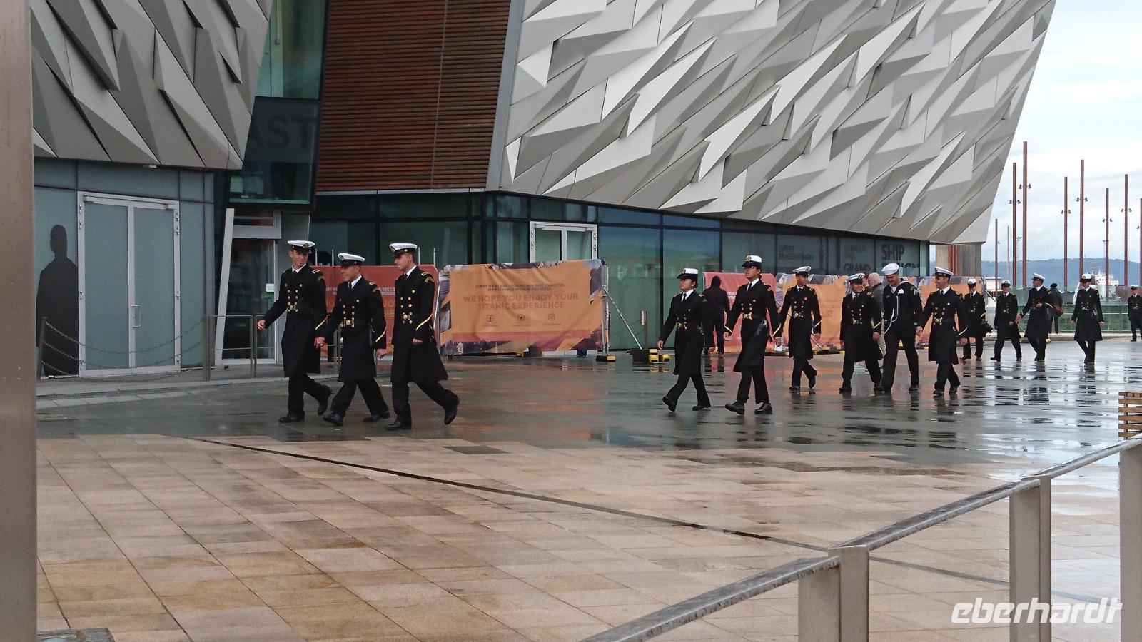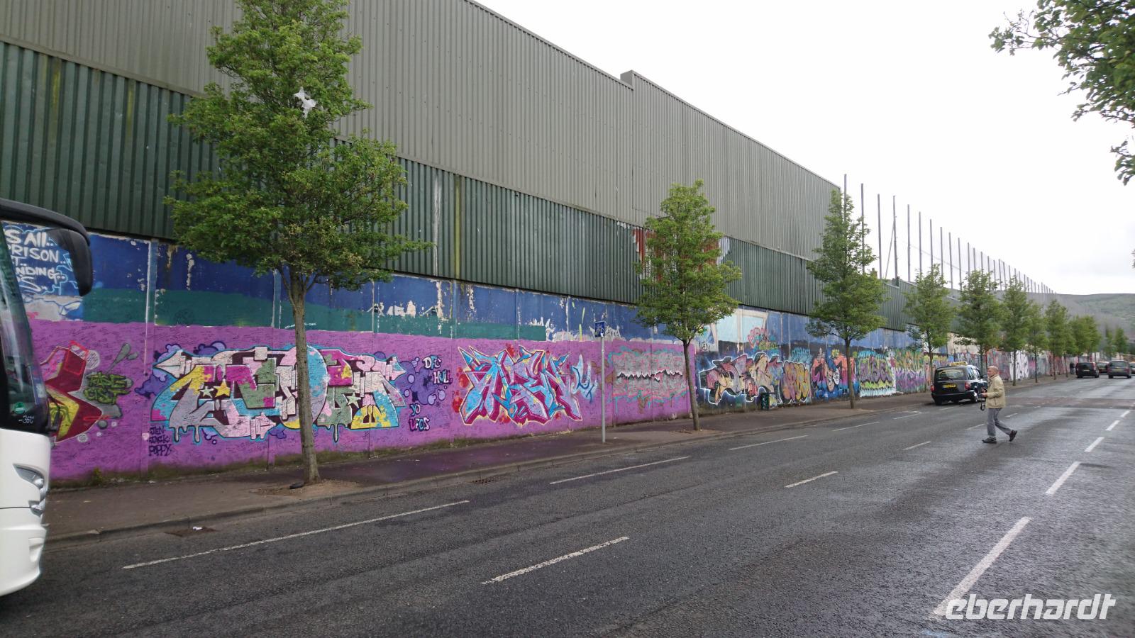 Nach dem Frühstück trafen wir uns alle an der Rezeption und nachdem auch unsere Fluggäste ihre gebuchten Busplätze einnahmen, stellte uns Stefan unseren heutigen Stadtführer Manfred vor. Gleich startete die Tour. Wir sahen den Hafen, die Innenstadt, dann das Parlament und die einst Belfast teilenden Mauern, von denen wir erfuhren, dass die darin befindlichen Tore abends immer noch regelmäßig geschlossen werden, um Übergriffe aller Art zu vermeiden. Manfred erläuterte uns auch die derzeit völlig offene Situation Nordirlands in den Fragen des Brexits und in Aufarbeitung der Vergangenheit vor diesem und vor der ersten europäischen Öffnung. Ja, an Nordirland und die irische Frage dachte wohl niemand in London, als man sich dort für den Brexit entschied oder ihn zumindest vor der damaligen Entscheidung ins Gespräch brachte. Wir werden nun, da wir dort waren, sicher viel genauer bei Meldungen in den Medien hinhören und mit den Iren mitfiebern, damit sie eine gute Lösung bekommen. Der Blick vom Belfaster Schloss hinunter auf die eigentlich immer noch geteilte Stadt entschädigte für trübe Gedanken und da gerade im Schloss geheiratet wurde, sahen wir, dass man das Leben hier aufgrund der Situation nicht anhielt, sondern dass es weiter ging. Genauso erging es uns, als wir am Nachmittag die Titanic-Ausstellung besuchten und Vieles über den Schiffbau in Belfast und den Stolz der Belfaster auf ihre einstig großen und guten Schiffe erfuhren. Natürlich ist das Schicksal der Titanic bekannt, doch Belfast verließ sie in einem einwandfreien Zustand. Wir ganz sicher auch am nächsten Tag, denn heute genossen wir nach einer Stippvisite am Titanic-Dock noch Freizeit und Abendessen.