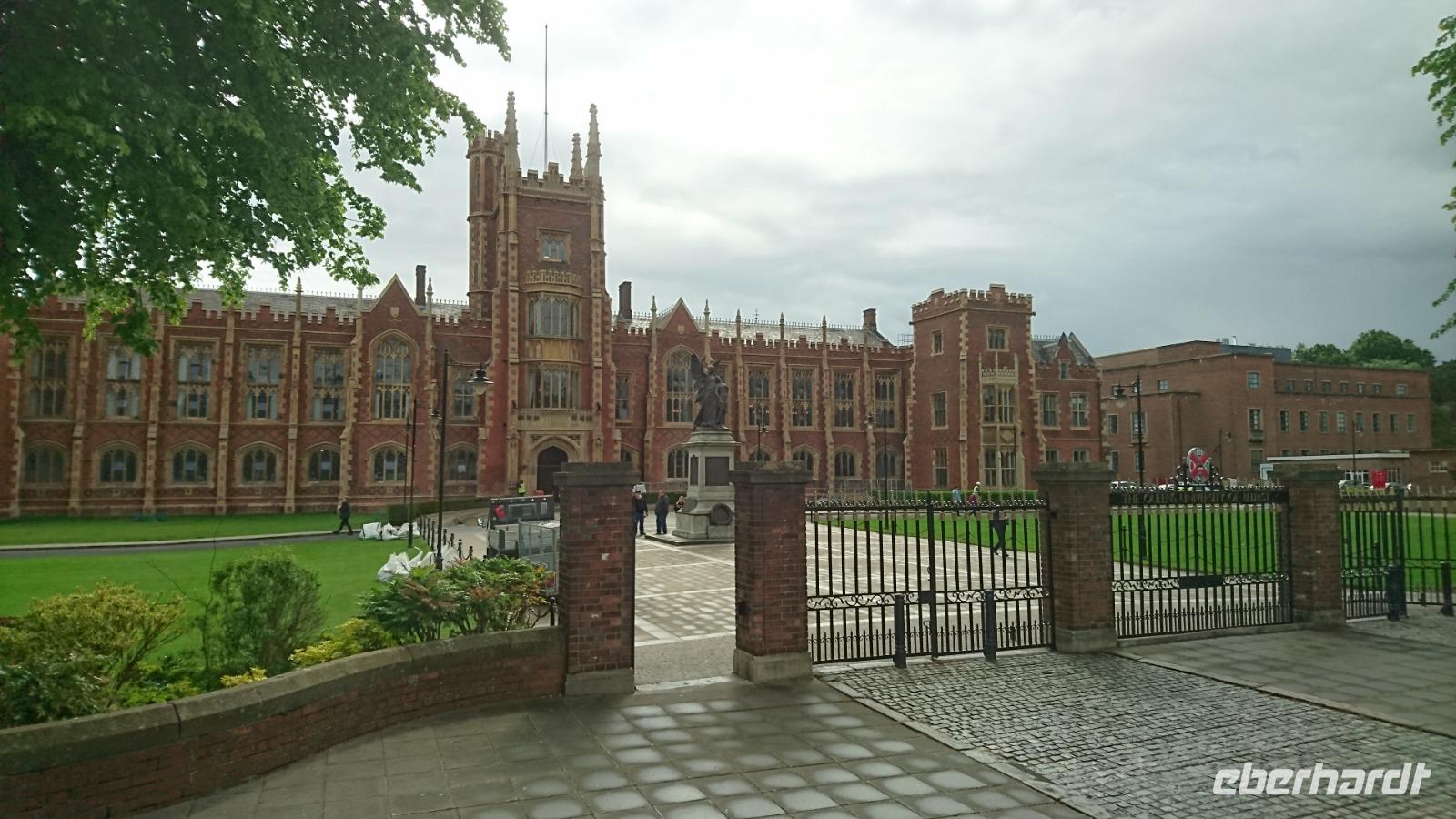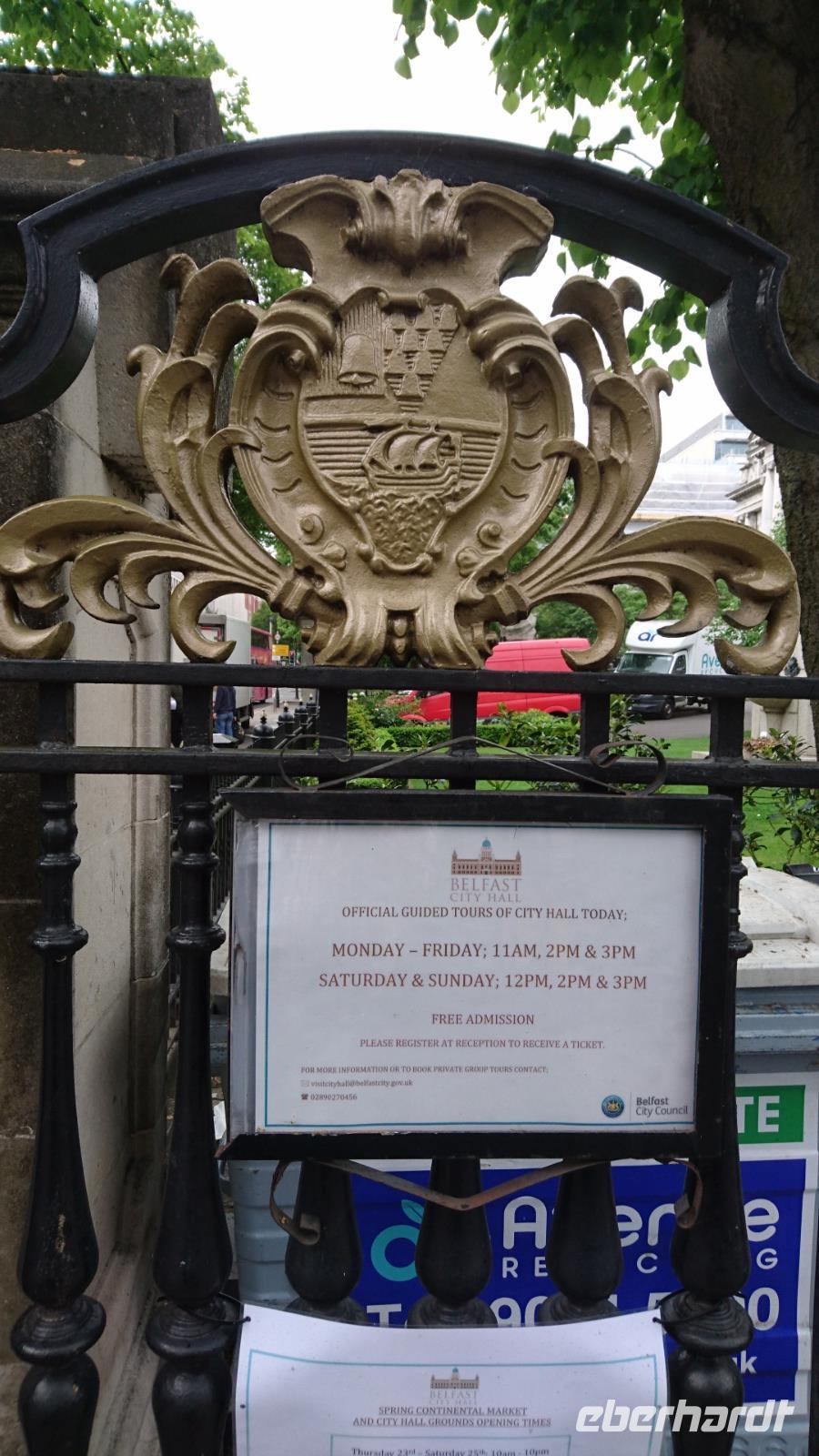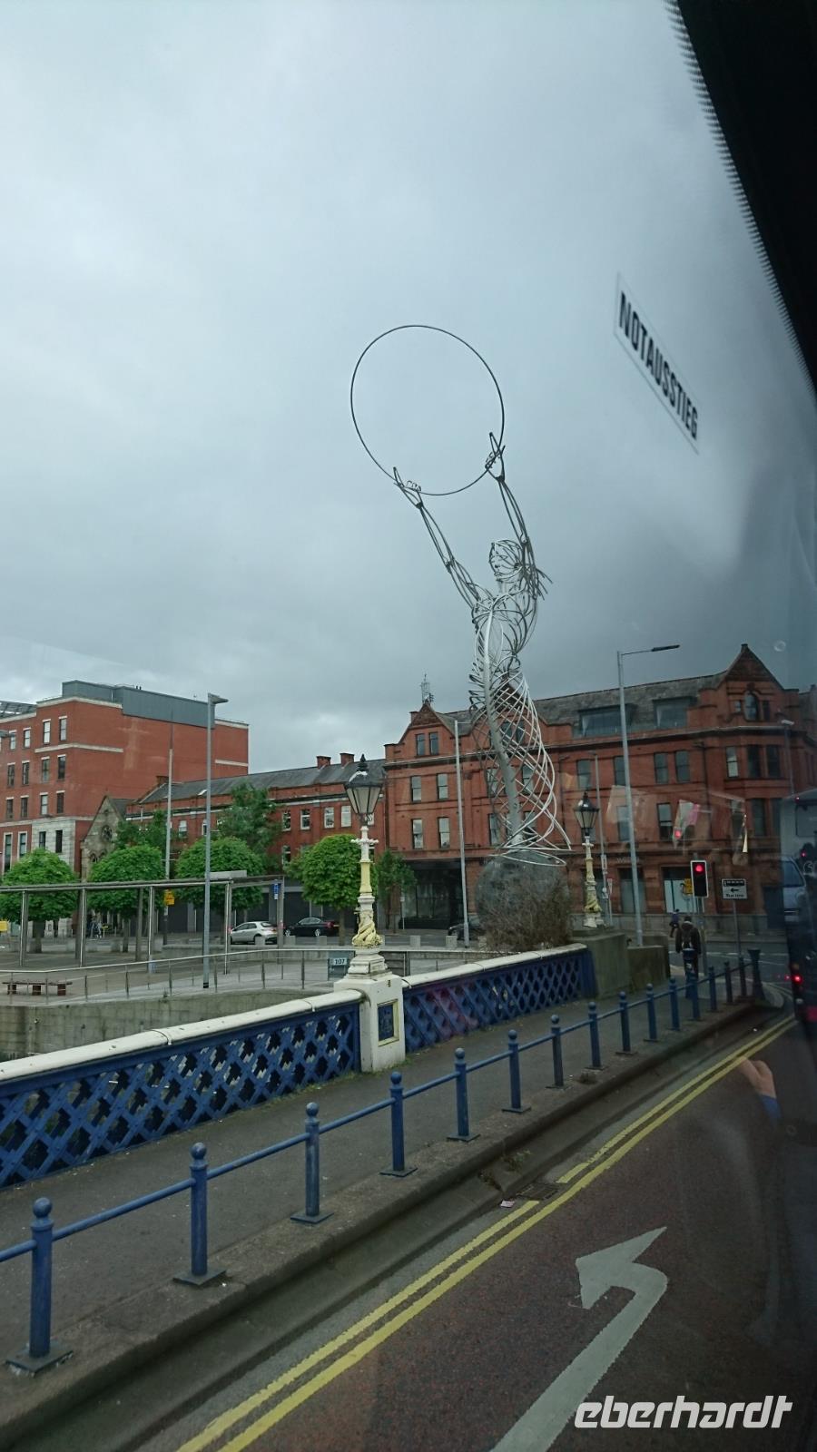 Nach dem Frühstück trafen wir uns alle an der Rezeption und nachdem auch unsere Fluggäste ihre gebuchten Busplätze einnahmen, stellte uns Stefan unseren heutigen Stadtführer Manfred vor. Gleich startete die Tour. Wir sahen den Hafen, die Innenstadt, dann das Parlament und die einst Belfast teilenden Mauern, von denen wir erfuhren, dass die darin befindlichen Tore abends immer noch regelmäßig geschlossen werden, um Übergriffe aller Art zu vermeiden. Manfred erläuterte uns auch die derzeit völlig offene Situation Nordirlands in den Fragen des Brexits und in Aufarbeitung der Vergangenheit vor diesem und vor der ersten europäischen Öffnung. Ja, an Nordirland und die irische Frage dachte wohl niemand in London, als man sich dort für den Brexit entschied oder ihn zumindest vor der damaligen Entscheidung ins Gespräch brachte. Wir werden nun, da wir dort waren, sicher viel genauer bei Meldungen in den Medien hinhören und mit den Iren mitfiebern, damit sie eine gute Lösung bekommen. Der Blick vom Belfaster Schloss hinunter auf die eigentlich immer noch geteilte Stadt entschädigte für trübe Gedanken und da gerade im Schloss geheiratet wurde, sahen wir, dass man das Leben hier aufgrund der Situation nicht anhielt, sondern dass es weiter ging. Genauso erging es uns, als wir am Nachmittag die Titanic-Ausstellung besuchten und Vieles über den Schiffbau in Belfast und den Stolz der Belfaster auf ihre einstig großen und guten Schiffe erfuhren. Natürlich ist das Schicksal der Titanic bekannt, doch Belfast verließ sie in einem einwandfreien Zustand. Wir ganz sicher auch am nächsten Tag, denn heute genossen wir nach einer Stippvisite am Titanic-Dock noch Freizeit und Abendessen.