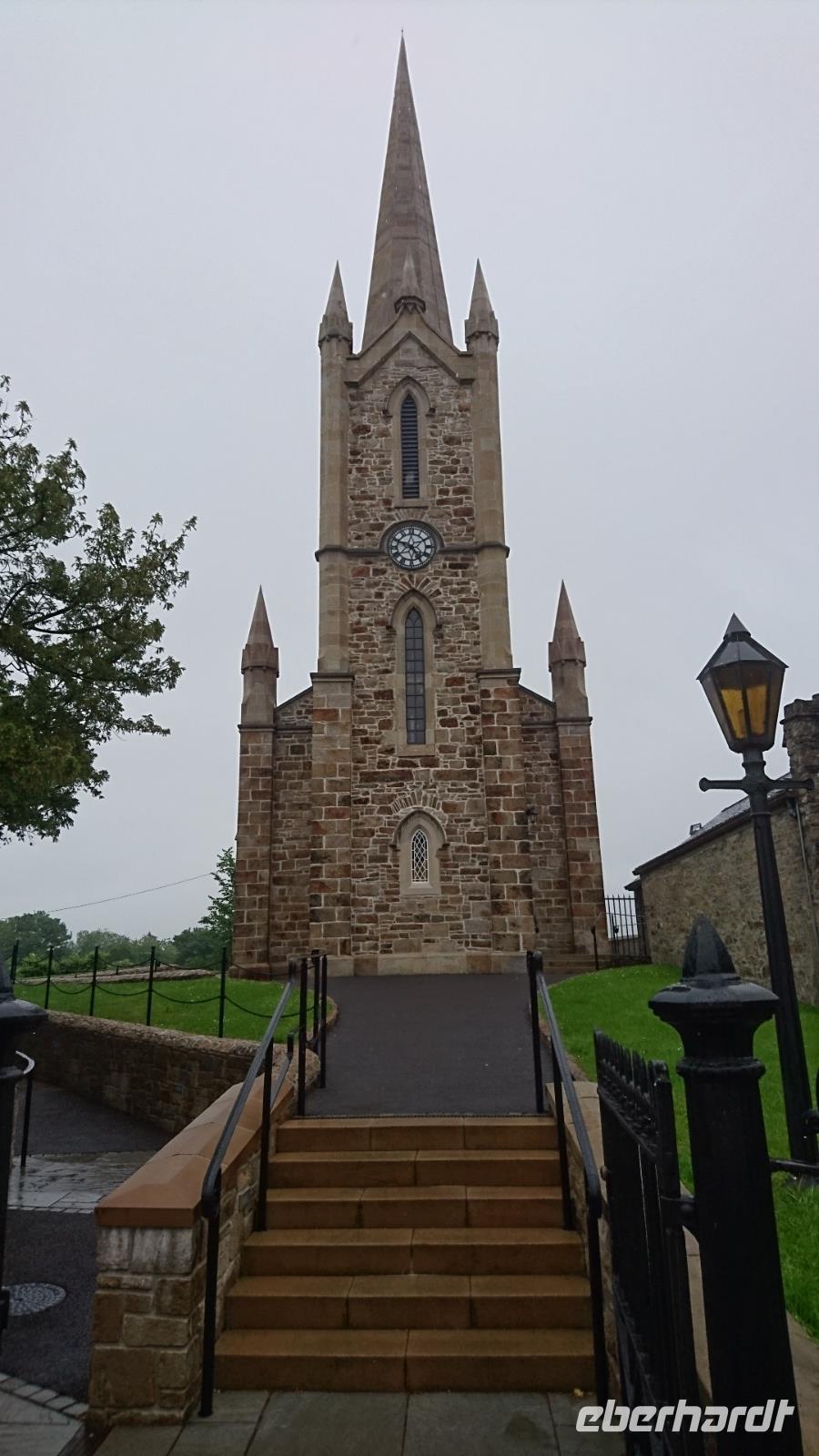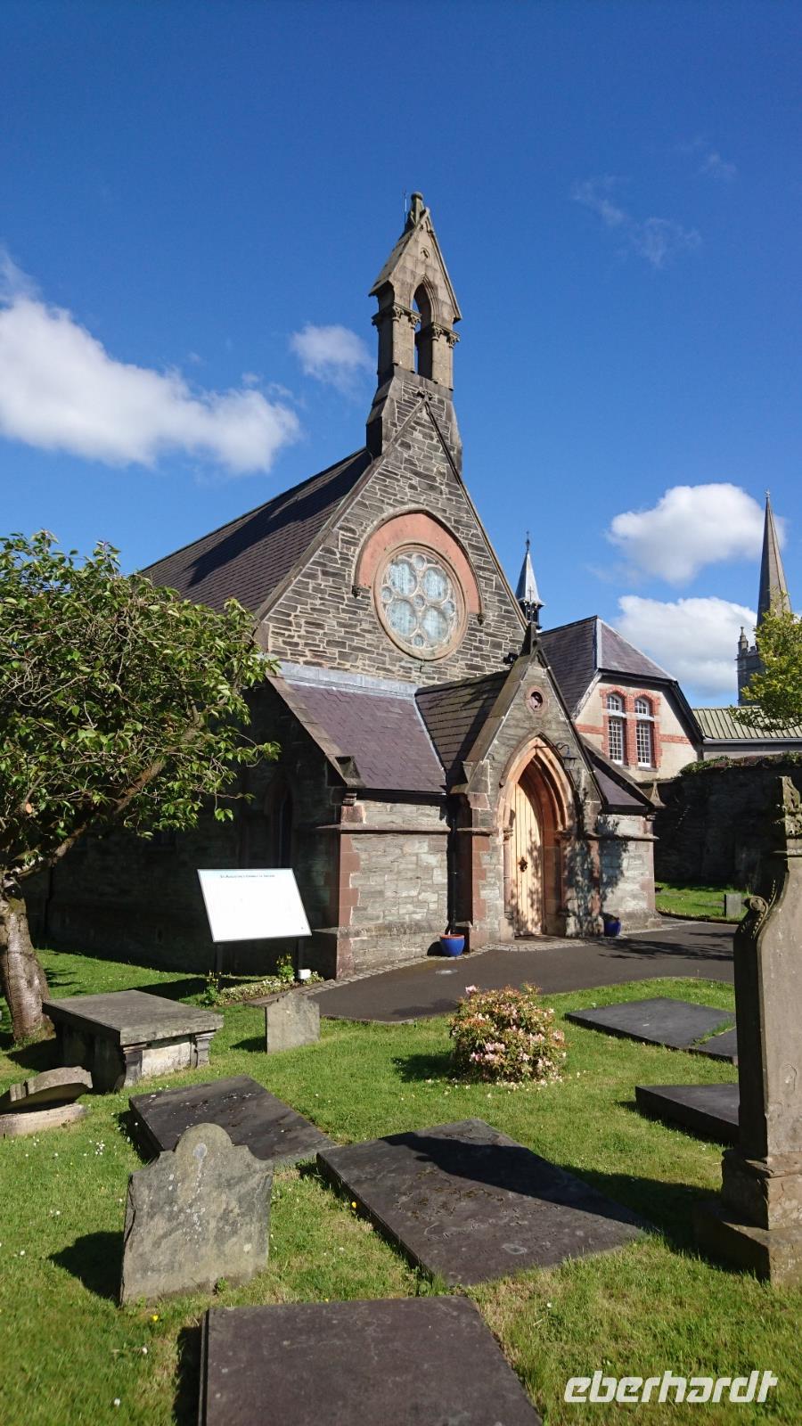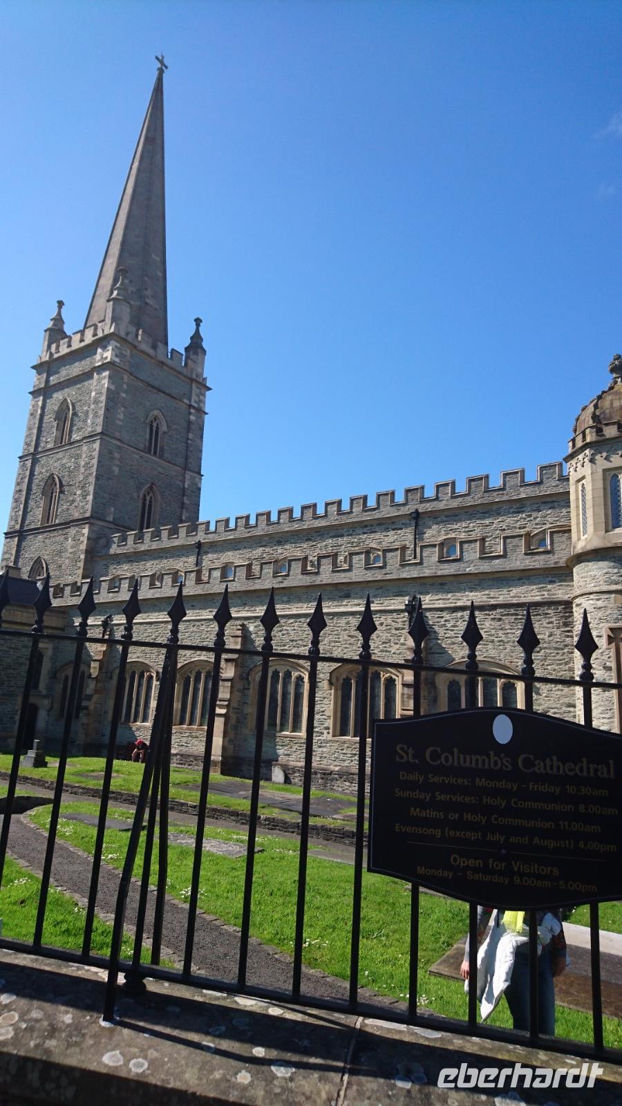 Stefan meinte am Morgen, als wir nach dem Frühstück mit unseren Koffern am Bus standen, dass wir nun eine große irische Stadt kannten, nun aber Naturschönheiten der Insel sehen sollten. So waren wir begeistert, als wir die Antrim-Coast und die Causeway-Route entlang gen Norden fuhren, erst in Carrickfergus am Schloss für Fotos stoppten, dann in Cairnalough einen der Drehorte von Game of Thrones sahen und schließlich, vorbei an Mull of Kintyre in Schottland und der Rathlin-Insel, Giants Causeway erreichten. Stefan reichte nicht nur die Ausflugsliste herum, in der wir uns eintragen konnten, wenn wir am kommenden Tag den Glenveagh-Nationalpark und an einem der späteren Tage eine irische Stepp-Show in Tralee besuchen wollten, sondern erzählte uns auch die mystische Geschichte von der Erschaffung und Zerstörung des Dammes der Riesen, wie Giants Causeway ja auch genannt wird. Hier am Atlantik hatten wir Zeit, um die Natur, den Basalt und die Felsen auf uns wirken zu lassen, probierten Irish Stew im Besucherzentrum und fuhren später weiter nach Westen, stoppten an der Ruine des schottisch-irischen Schlosses Dunluce Castle und erreichten schließlich Derry... oder besser Londonderry? Na ja, man ist sich nicht wirklich einig. Die Royalisten wählen den langen Namen, die Republikaner den kurzen und so weiß nicht einmal die Behörde, wie man die Stadt nennen soll. So bezeichnen viele sie als ‚Die Stadt mit dem Schrägstrich', eben Derry/Londonderry. Stefan lud uns ein zu einem Spaziergang auf der völlig erhaltenen Stadtmauer. Hier sahen wir, ähnlich wie in Belfast und doch noch viel ergreifender, die absolute Trennung der Stadt. Tore auf den Mauern waren in den Angeln gut geölt, die Mauerseite zur Bogside, der Seite der Republikaner in Derry, war durch Netze und Geflechte hoch versperrt und irgendwie hatte man das Gefühl, mitten in einem riesigen und nicht wirklich nachvollziehbaren Schlamassel zu sitzen, obwohl wir liefen und bald wieder aus Derry abfuhren, um Nordirland heute und für unsere Tour zu verlassen. Unser Weg führte uns entlang des River Foyle zur nordirisch-irischen Grenze, die man kaum wahrnahm. Wie meinte Stefan? Die Straßenschilder sind in Irland nun in Gälisch und englisch beschriftet, die Geschwindigkeiten und Entfernungen metrisch dargestellt und an den Straßenrändern sehen wir gelbe anstatt weißer Linien. Ansonsten ist alles gleich. So erreichten wir bald die irische Stadt Letterkenny und bezogen bald darauf unser Hotel, das Station House am alten Bahnhof, und ließen uns das Abendessen schmecken, ehe wir die vielen heutigen Erlebnisse beim Ausruhen für kommende Tage verarbeiteten.