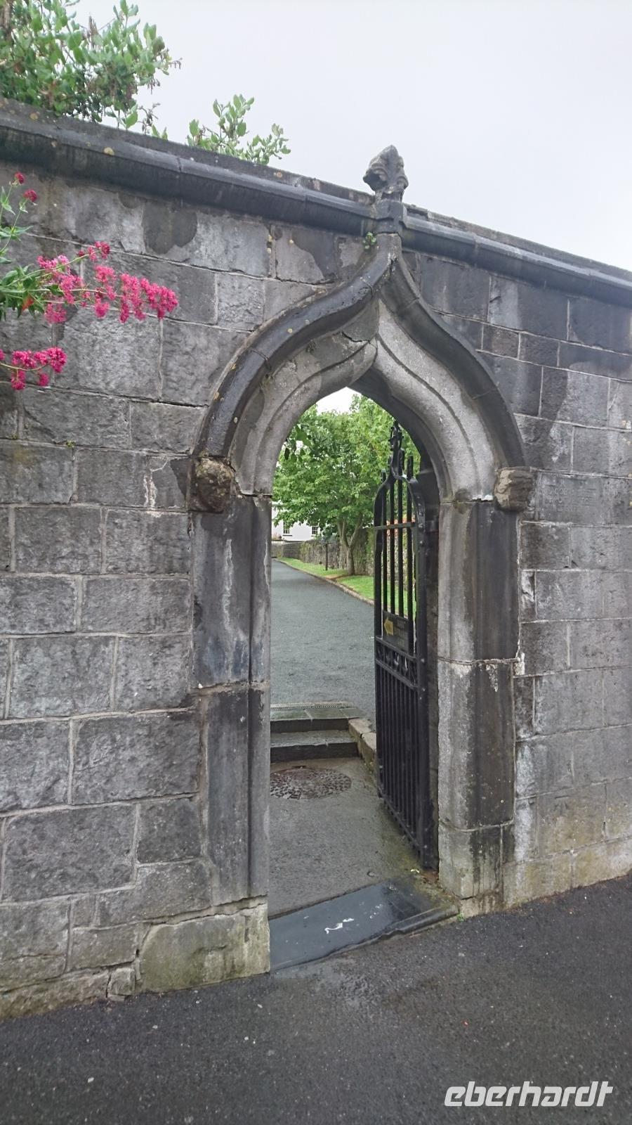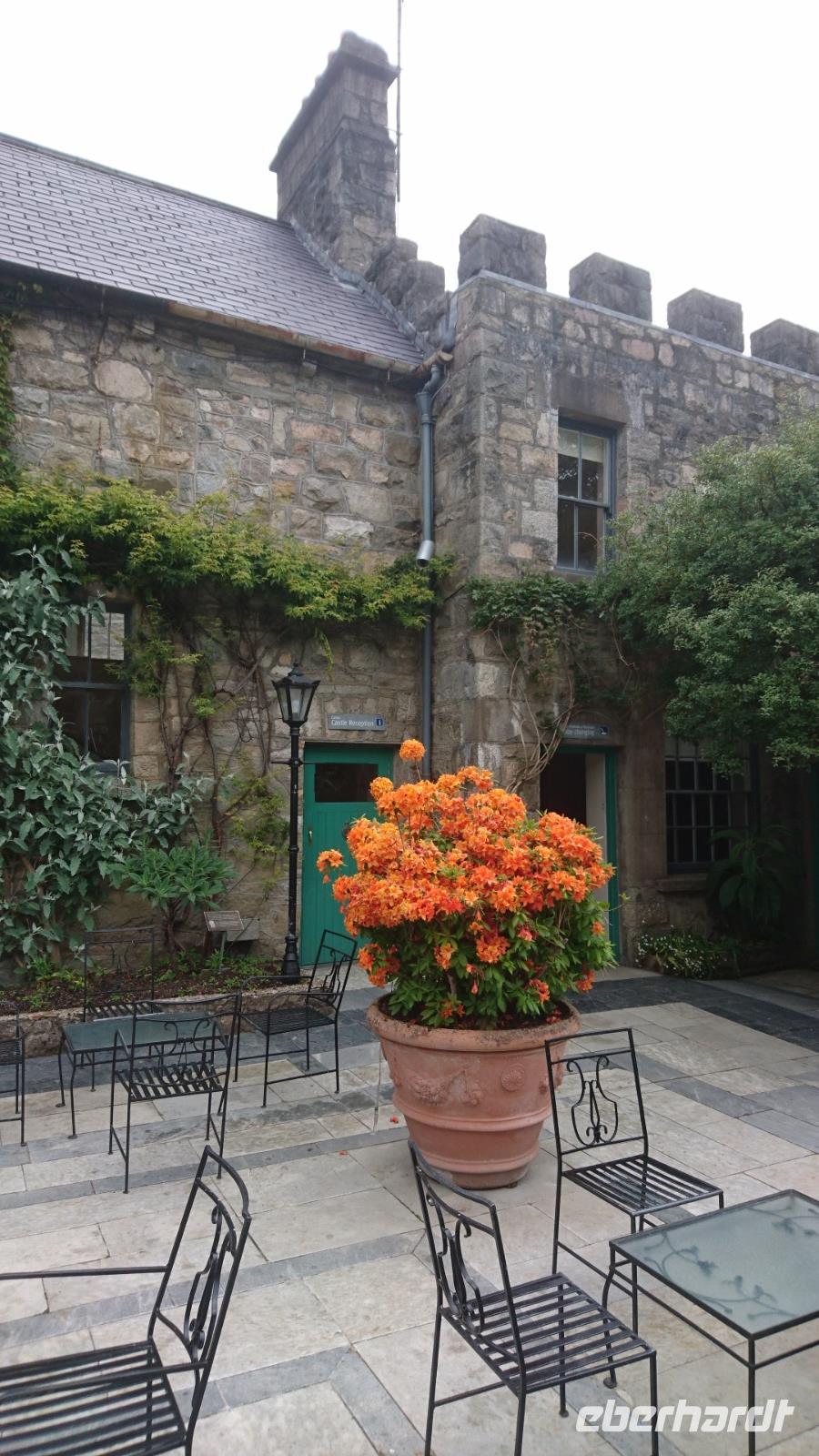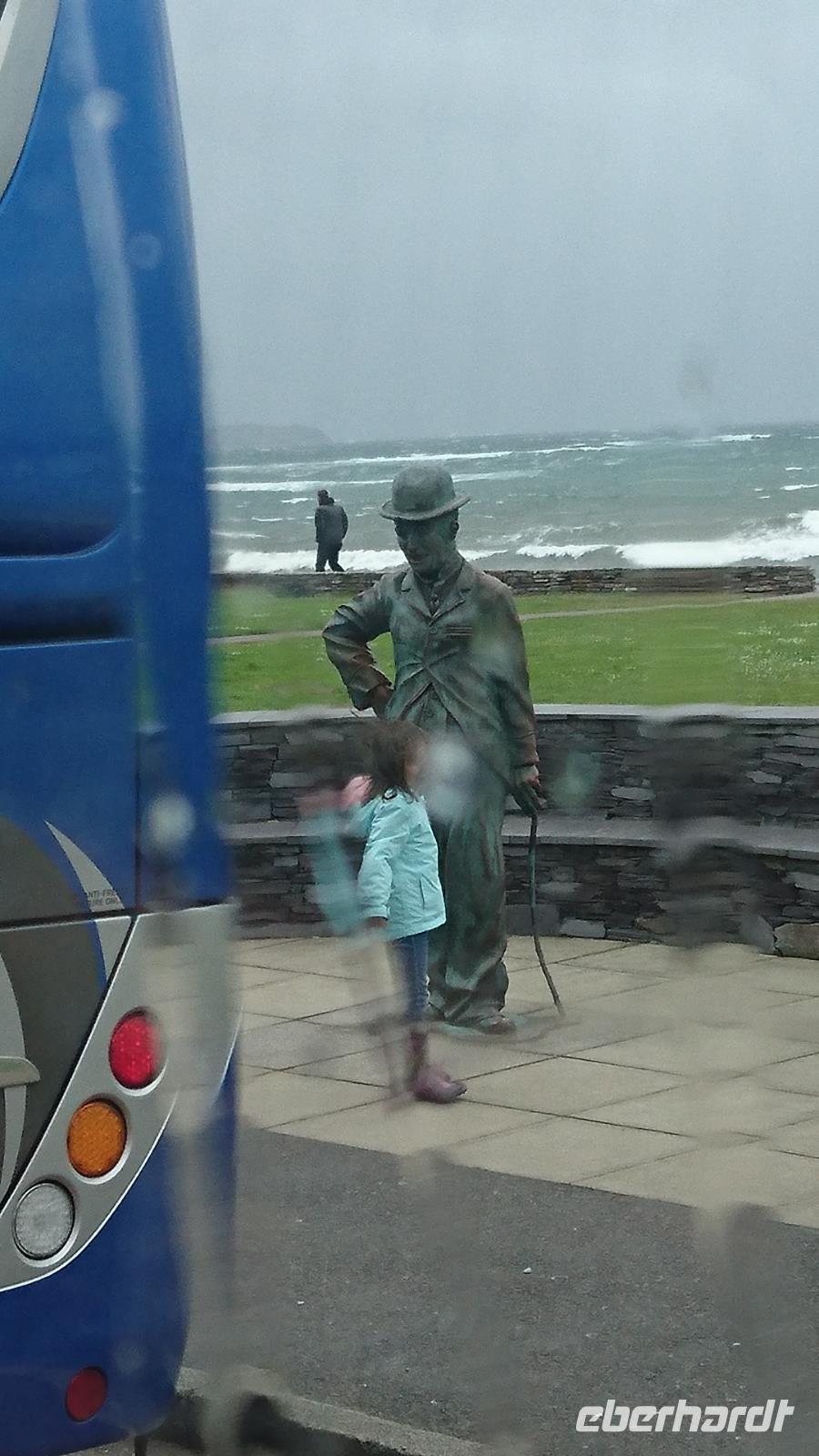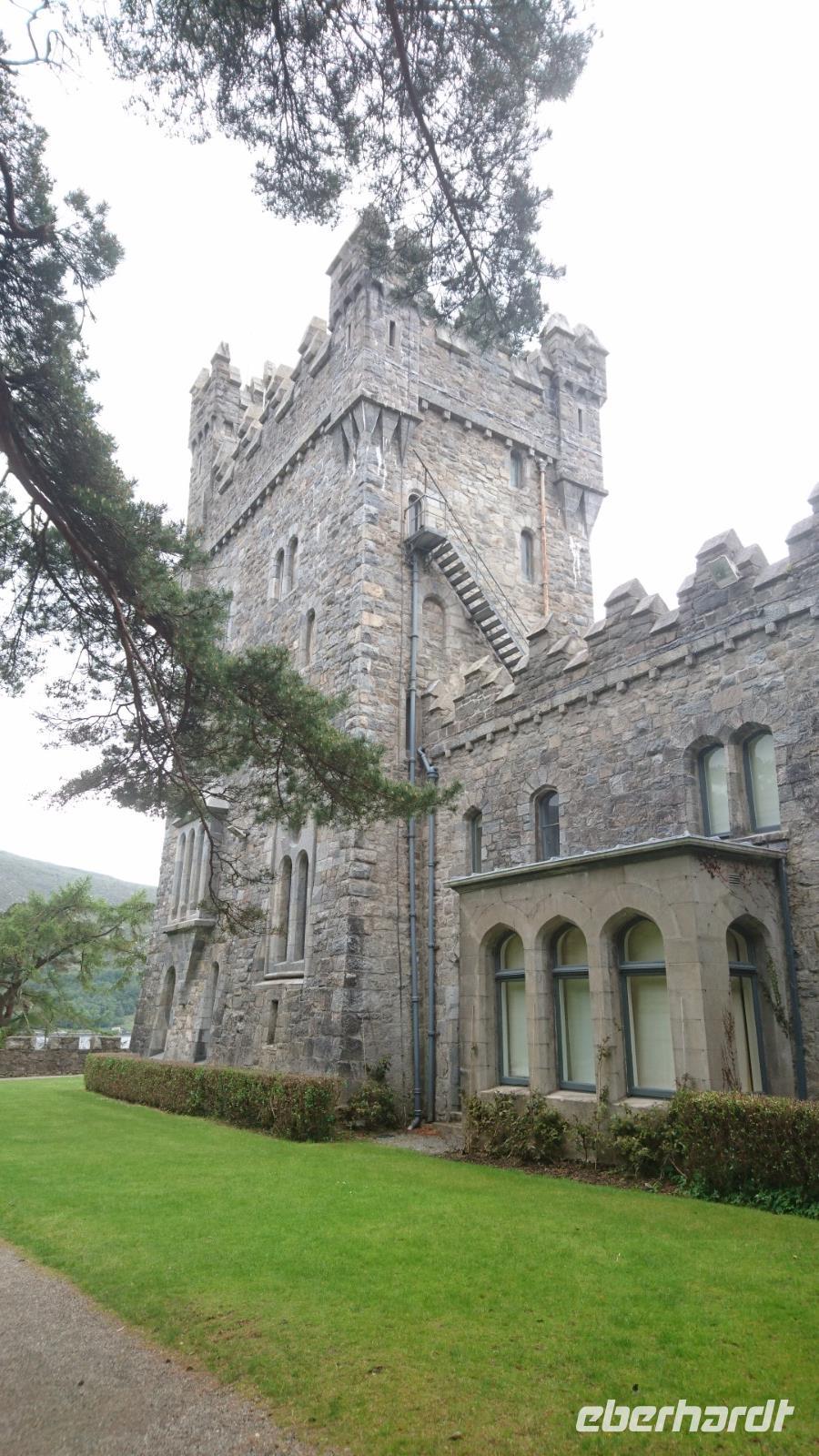Wieder hieß es: Koffer packen. Peter lud all unser Gepäck mit einer Ruhe und genauer Planung ins Busfach und wir staunten über seine tetrisartige Arbeit, ehe er und Stefan wieder die Morgengetränke im Bus verteilten und sich unser Fahrzeug gen Süden in Bewegung setzte. Längst hatten wir die Antrimküste verlassen und befanden uns nun auf dem Wild Atlantic Way, der uns nun noch einige Tage auf unserer weiteren Tour begleiten und führen sollte. Erst einmal ging es aus Letterkenny hinaus gen Süden, noch einmal an Donegal vorbei und schließlich verließen wir an einer sehr schmalen Stelle die Hauptstraße und fuhren hinein ins ursprüngliche Irland. Bald schon tauchte es vor uns auf, Schloss Mulaghmore, das Castle der Montbattens, die einst den indischen Vizekönig stellten und direkte Verwandte von Prinz Charles sind. Stefan erzählte uns die Geschichte des Todes desletzten wichtigen Lords der Familie, aber auch, wie vor einigen Jahren ein erster Staatsbesuch von Prinz Charles und seiner Lady Camilla Stefans Reiseprogramm einen Tag lang total durcheinanderbrachte. Dazu genossen wir die schroffen Küstenabschnitte dieser Tour und erreichten wenig später Drumcliff, welches ebenso mit der irischen Geschichte eng verknüpft ist, denn zum einen liegt dort der irische Nationaldichter E.B. Yeats begraben, zum Anderen steht da ein Baum, gepflanzt von Prinz Charles und zum Dritten findet man dort ein altes keltisches Hochkreuz und jenen Rundturmstumpf, der eines Tages zusammenbrechen soll, wenn der klügste Mensch der Welt daran vorbei geht. Nun ja, wir wollten den Iren den Turm nicht kaputt machen und ließen diesen Test einfach mal aus, fuhren lieber weiter und erreichten bald ebenso irische Geschichte, wenn auch sehr frühe. Denn nun ging es bis ins Jahr 4.000 und weiter vor Christus zurück. Das alte Megalithgräberfeld in Carrowmore legte Zeugnis ab von einer hohen Totenkultur eines Volkes, das plötzlich kam und ebenso plötzlich 2.000 Jahre nach seinem Eintreffen wieder verschwand, ohne dass man bis heute nachvollziehen kann, woher und wohin. Aber wir wussten, wohin wir heute noch wollten und nach Stefans Führung über die alte Grabanlage gab es Mittagswürstchen am Bus und dann den Aufbruch weiter nach Süden, wo wir den größten und wichtigsten irischen Wallfahrtsort, Knock, erreichten, dort nicht nur die riesige WC-Anlage nutzten, sondern ebenso die große Kirche besichtigten. Danach fuhren wir weiter, vorbei an Galway nach Gort, wo wir am Abend unser neues Hotel, das der Lady Gregory, bezogen und bald zu Abend aßen, ehe wir uns wieder ausruhten für kommende Erlebnisse.