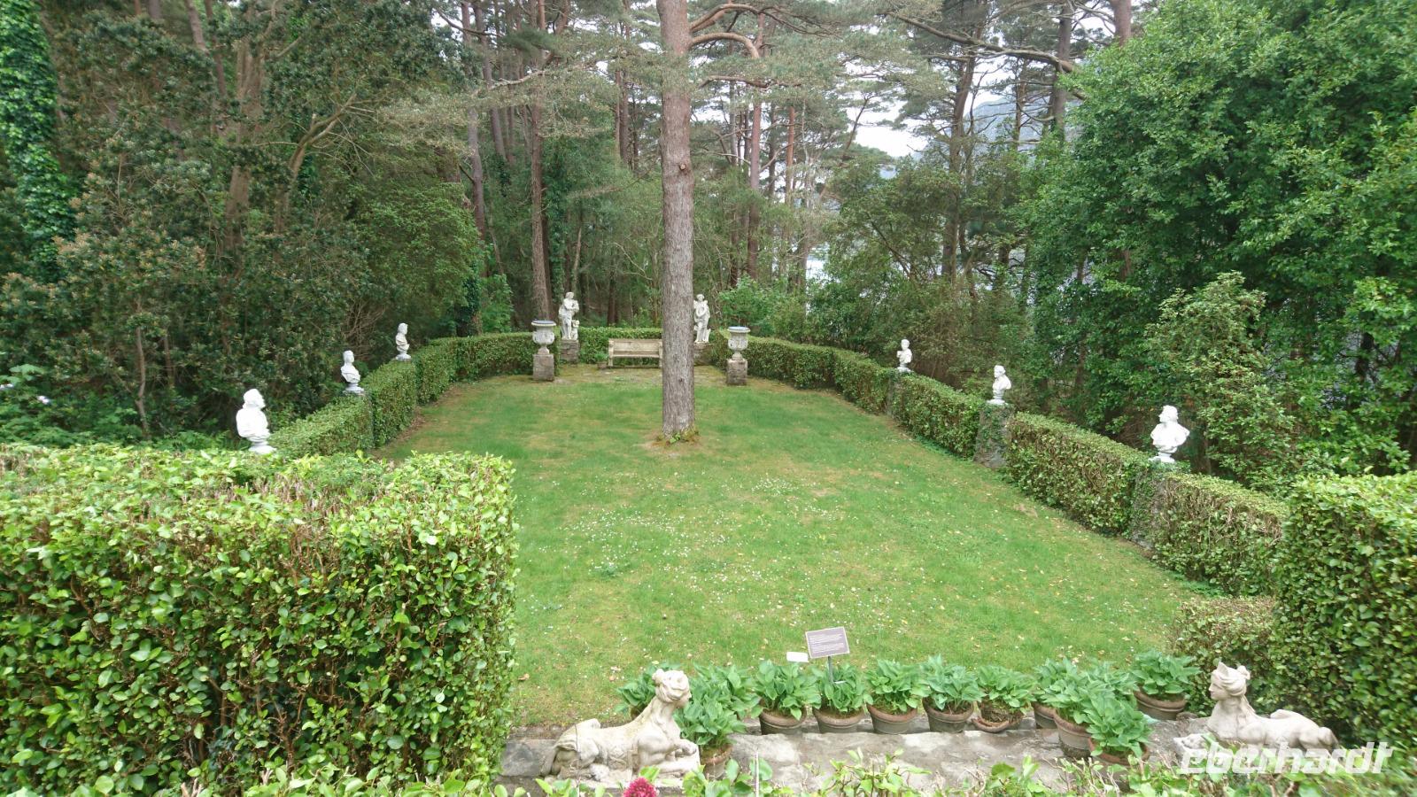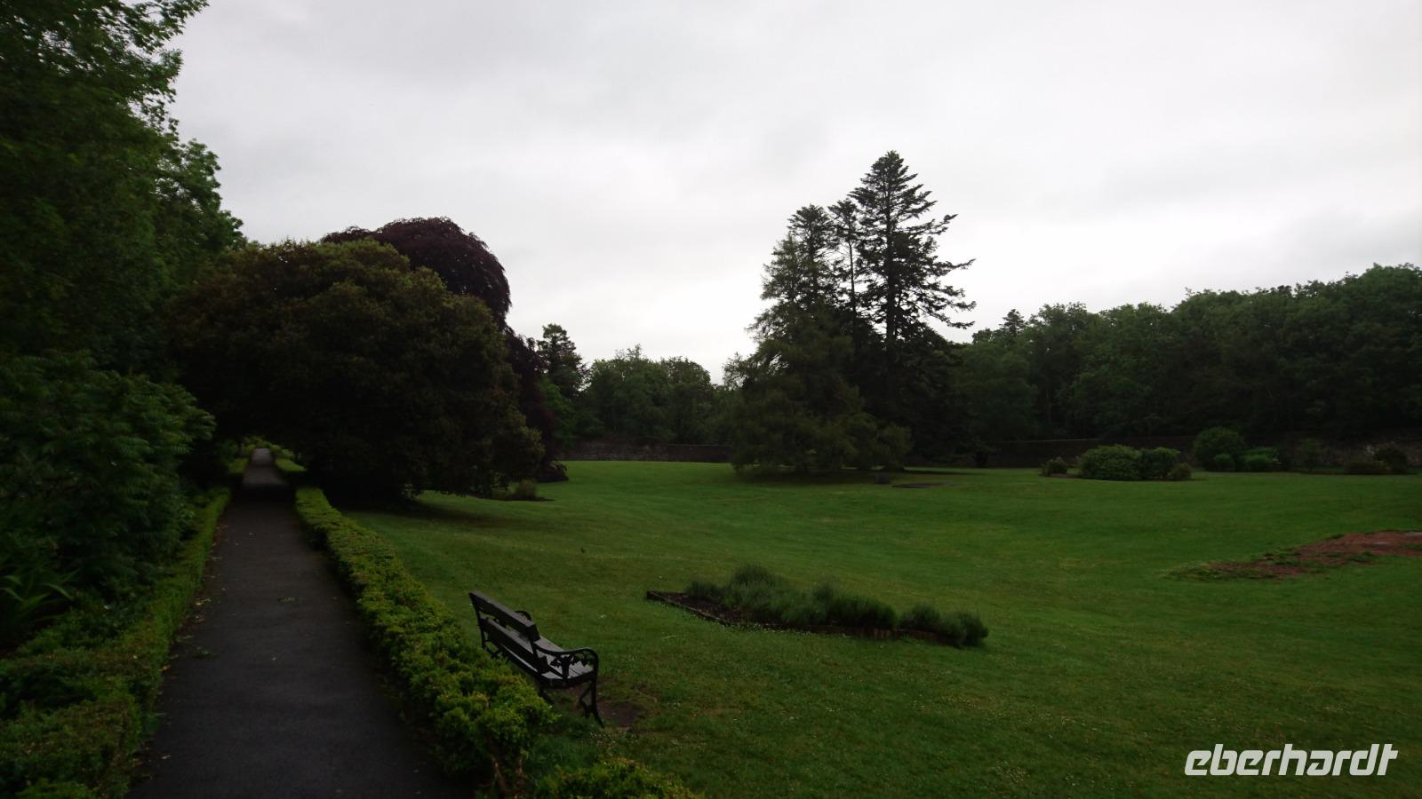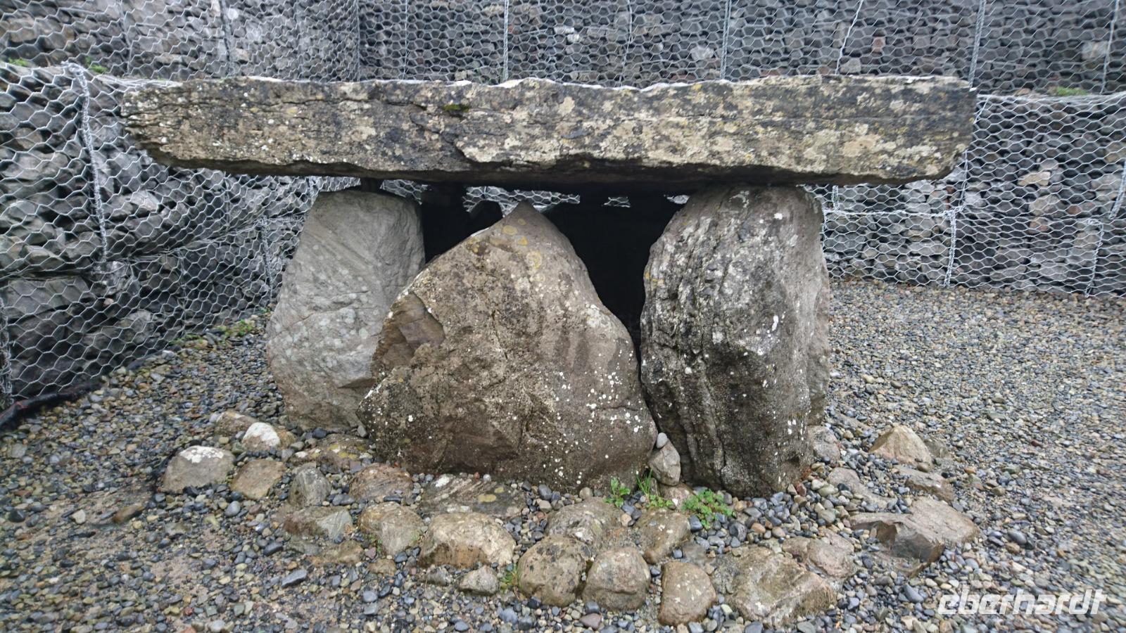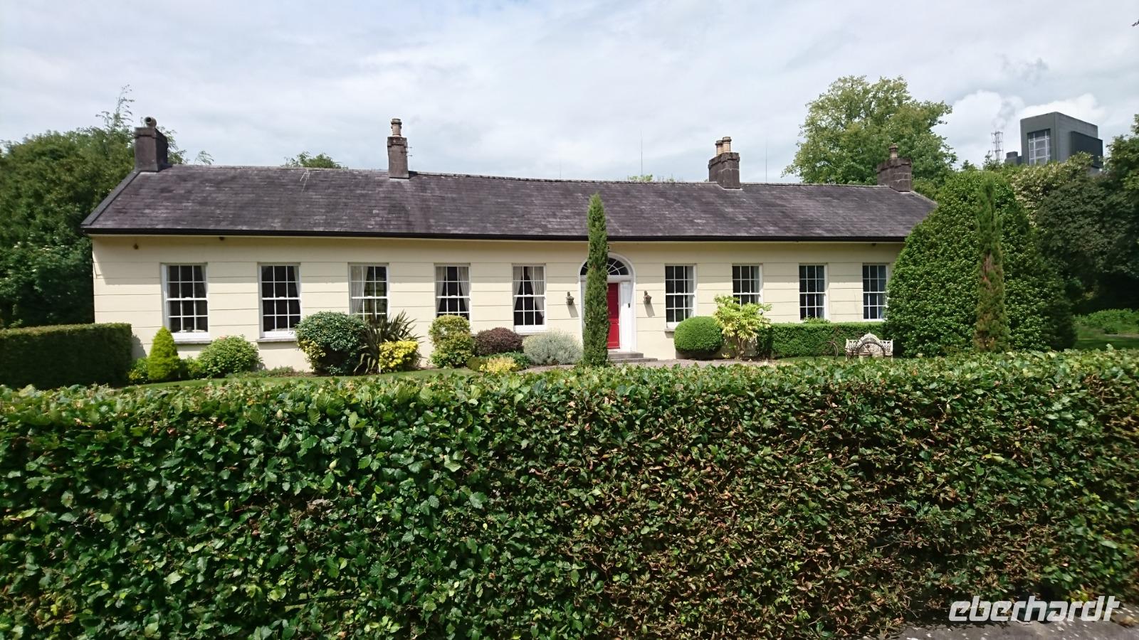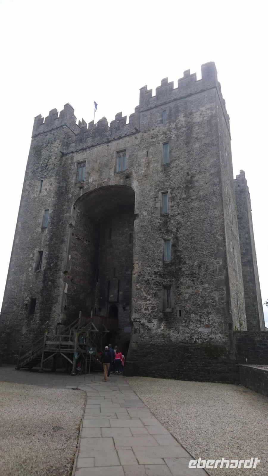 Wieder hieß es: Koffer packen. Peter lud all unser Gepäck mit einer Ruhe und genauer Planung ins Busfach und wir staunten über seine tetrisartige Arbeit, ehe er und Stefan wieder die Morgengetränke im Bus verteilten und sich unser Fahrzeug gen Süden in Bewegung setzte. Längst hatten wir die Antrimküste verlassen und befanden uns nun auf dem Wild Atlantic Way, der uns nun noch einige Tage auf unserer weiteren Tour begleiten und führen sollte. Erst einmal ging es aus Letterkenny hinaus gen Süden, noch einmal an Donegal vorbei und schließlich verließen wir an einer sehr schmalen Stelle die Hauptstraße und fuhren hinein ins ursprüngliche Irland. Bald schon tauchte es vor uns auf, Schloss Mulaghmore, das Castle der Montbattens, die einst den indischen Vizekönig stellten und direkte Verwandte von Prinz Charles sind. Stefan erzählte uns die Geschichte des Todes desletzten wichtigen Lords der Familie, aber auch, wie vor einigen Jahren ein erster Staatsbesuch von Prinz Charles und seiner Lady Camilla Stefans Reiseprogramm einen Tag lang total durcheinanderbrachte. Dazu genossen wir die schroffen Küstenabschnitte dieser Tour und erreichten wenig später Drumcliff, welches ebenso mit der irischen Geschichte eng verknüpft ist, denn zum einen liegt dort der irische Nationaldichter E.B. Yeats begraben, zum Anderen steht da ein Baum, gepflanzt von Prinz Charles und zum Dritten findet man dort ein altes keltisches Hochkreuz und jenen Rundturmstumpf, der eines Tages zusammenbrechen soll, wenn der klügste Mensch der Welt daran vorbei geht. Nun ja, wir wollten den Iren den Turm nicht kaputt machen und ließen diesen Test einfach mal aus, fuhren lieber weiter und erreichten bald ebenso irische Geschichte, wenn auch sehr frühe. Denn nun ging es bis ins Jahr 4.000 und weiter vor Christus zurück. Das alte Megalithgräberfeld in Carrowmore legte Zeugnis ab von einer hohen Totenkultur eines Volkes, das plötzlich kam und ebenso plötzlich 2.000 Jahre nach seinem Eintreffen wieder verschwand, ohne dass man bis heute nachvollziehen kann, woher und wohin. Aber wir wussten, wohin wir heute noch wollten und nach Stefans Führung über die alte Grabanlage gab es Mittagswürstchen am Bus und dann den Aufbruch weiter nach Süden, wo wir den größten und wichtigsten irischen Wallfahrtsort, Knock, erreichten, dort nicht nur die riesige WC-Anlage nutzten, sondern ebenso die große Kirche besichtigten. Danach fuhren wir weiter, vorbei an Galway nach Gort, wo wir am Abend unser neues Hotel, das der Lady Gregory, bezogen und bald zu Abend aßen, ehe wir uns wieder ausruhten für kommende Erlebnisse.