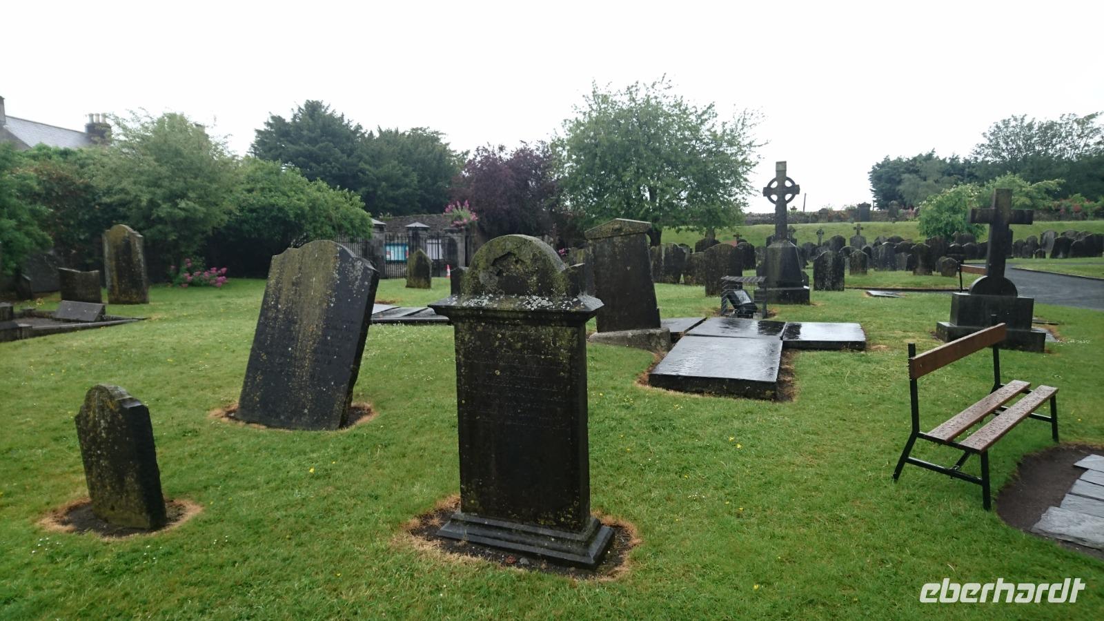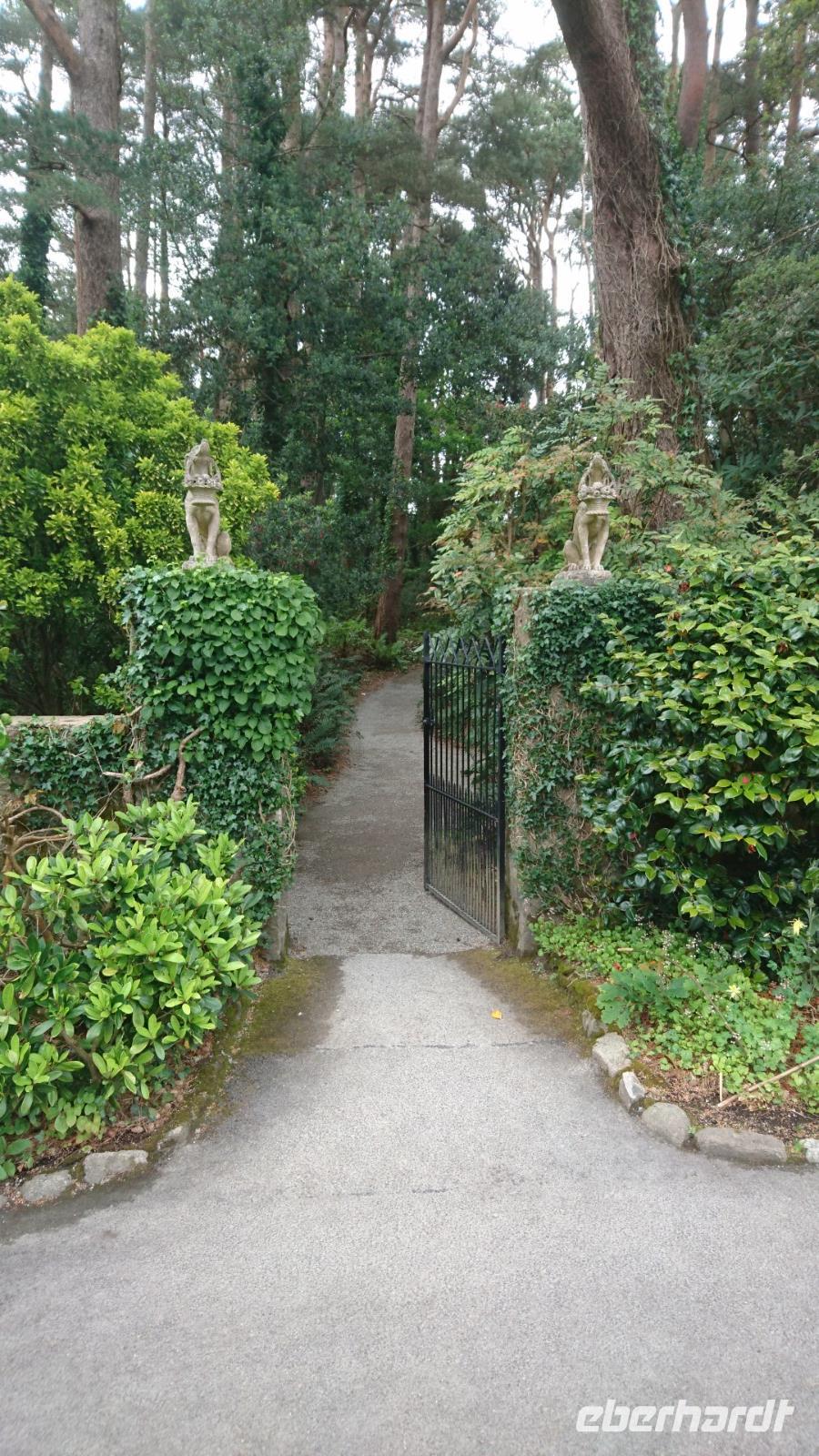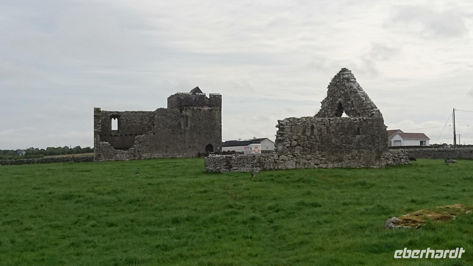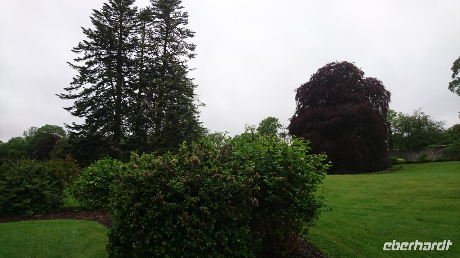 Wieder hieß es: Koffer packen. Peter lud all unser Gepäck mit einer Ruhe und genauer Planung ins Busfach und wir staunten über seine tetrisartige Arbeit, ehe er und Stefan wieder die Morgengetränke im Bus verteilten und sich unser Fahrzeug gen Süden in Bewegung setzte. Längst hatten wir die Antrimküste verlassen und befanden uns nun auf dem Wild Atlantic Way, der uns nun noch einige Tage auf unserer weiteren Tour begleiten und führen sollte. Erst einmal ging es aus Letterkenny hinaus gen Süden, noch einmal an Donegal vorbei und schließlich verließen wir an einer sehr schmalen Stelle die Hauptstraße und fuhren hinein ins ursprüngliche Irland. Bald schon tauchte es vor uns auf, Schloss Mulaghmore, das Castle der Montbattens, die einst den indischen Vizekönig stellten und direkte Verwandte von Prinz Charles sind. Stefan erzählte uns die Geschichte des Todes desletzten wichtigen Lords der Familie, aber auch, wie vor einigen Jahren ein erster Staatsbesuch von Prinz Charles und seiner Lady Camilla Stefans Reiseprogramm einen Tag lang total durcheinanderbrachte. Dazu genossen wir die schroffen Küstenabschnitte dieser Tour und erreichten wenig später Drumcliff, welches ebenso mit der irischen Geschichte eng verknüpft ist, denn zum einen liegt dort der irische Nationaldichter E.B. Yeats begraben, zum Anderen steht da ein Baum, gepflanzt von Prinz Charles und zum Dritten findet man dort ein altes keltisches Hochkreuz und jenen Rundturmstumpf, der eines Tages zusammenbrechen soll, wenn der klügste Mensch der Welt daran vorbei geht. Nun ja, wir wollten den Iren den Turm nicht kaputt machen und ließen diesen Test einfach mal aus, fuhren lieber weiter und erreichten bald ebenso irische Geschichte, wenn auch sehr frühe. Denn nun ging es bis ins Jahr 4.000 und weiter vor Christus zurück. Das alte Megalithgräberfeld in Carrowmore legte Zeugnis ab von einer hohen Totenkultur eines Volkes, das plötzlich kam und ebenso plötzlich 2.000 Jahre nach seinem Eintreffen wieder verschwand, ohne dass man bis heute nachvollziehen kann, woher und wohin. Aber wir wussten, wohin wir heute noch wollten und nach Stefans Führung über die alte Grabanlage gab es Mittagswürstchen am Bus und dann den Aufbruch weiter nach Süden, wo wir den größten und wichtigsten irischen Wallfahrtsort, Knock, erreichten, dort nicht nur die riesige WC-Anlage nutzten, sondern ebenso die große Kirche besichtigten. Danach fuhren wir weiter, vorbei an Galway nach Gort, wo wir am Abend unser neues Hotel, das der Lady Gregory, bezogen und bald zu Abend aßen, ehe wir uns wieder ausruhten für kommende Erlebnisse.