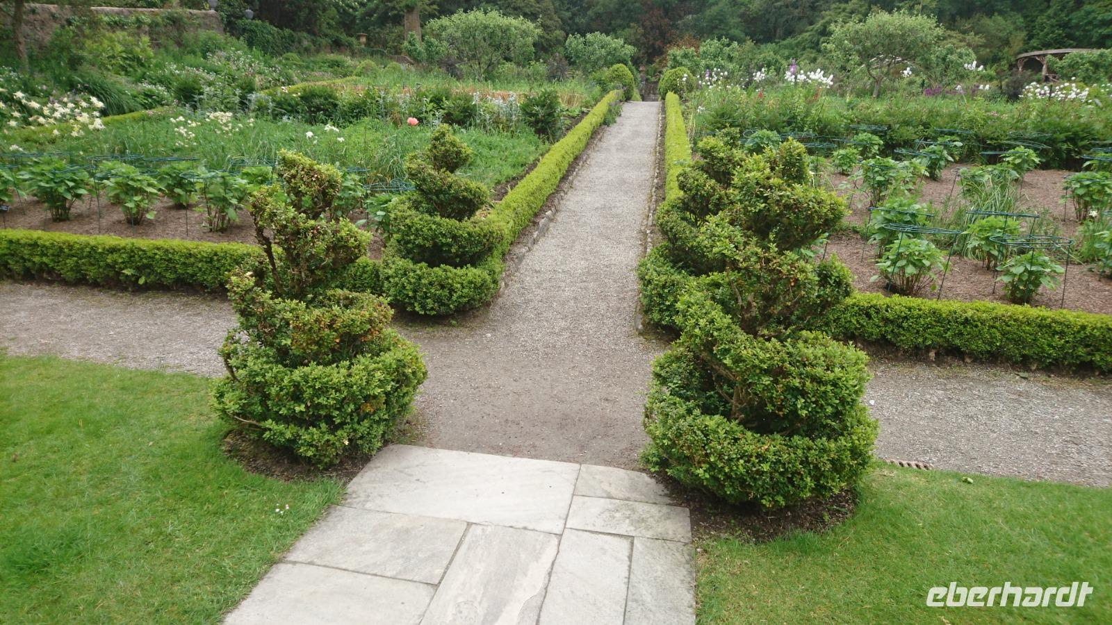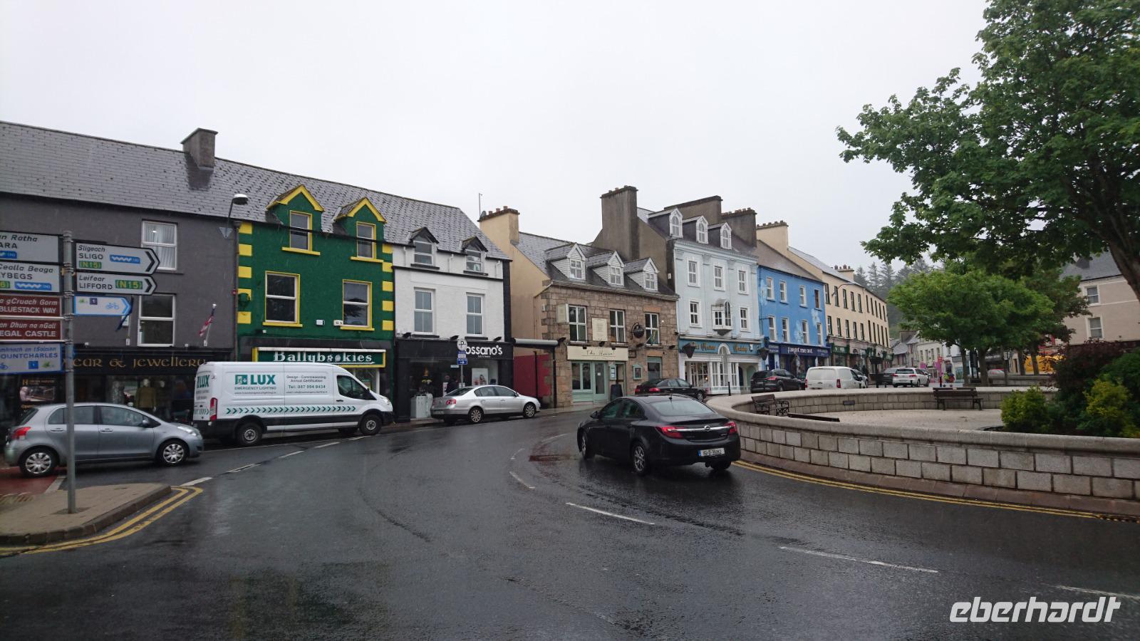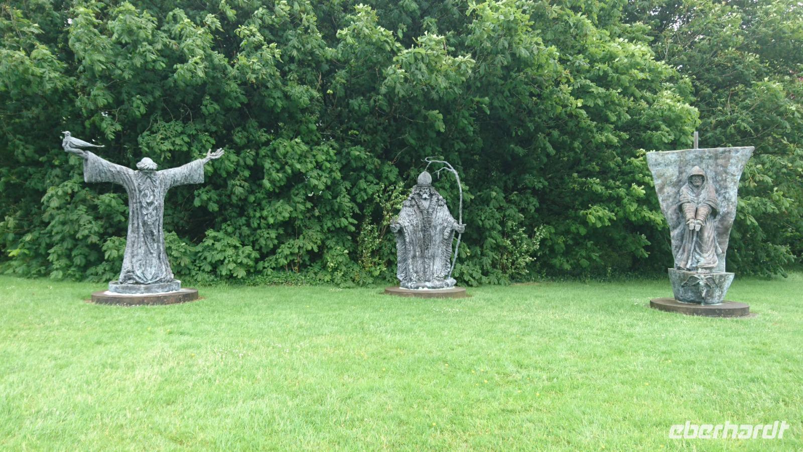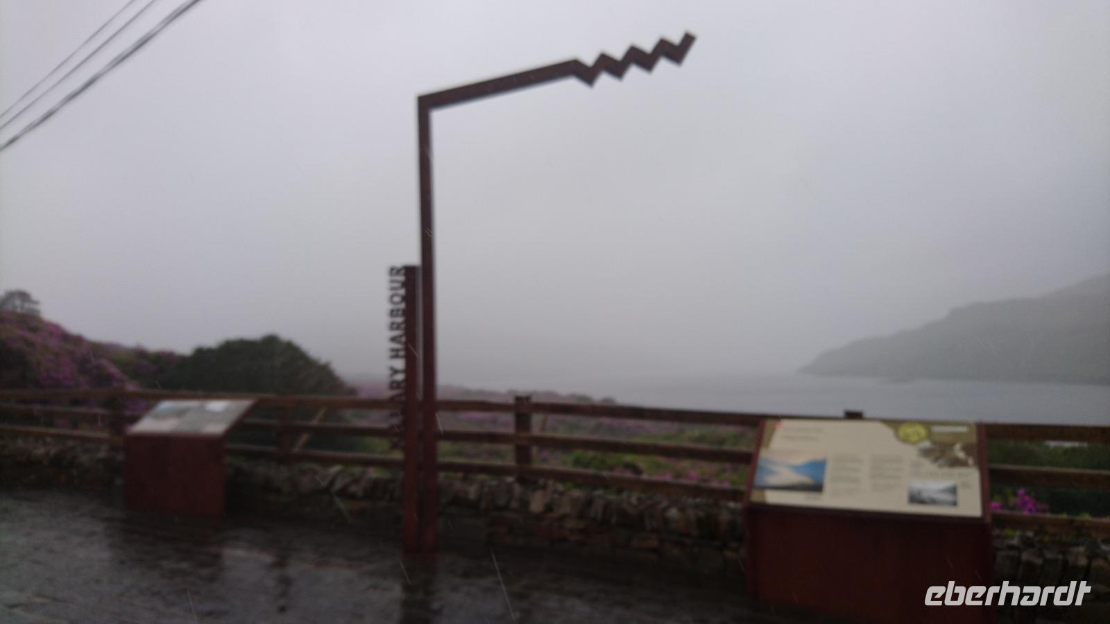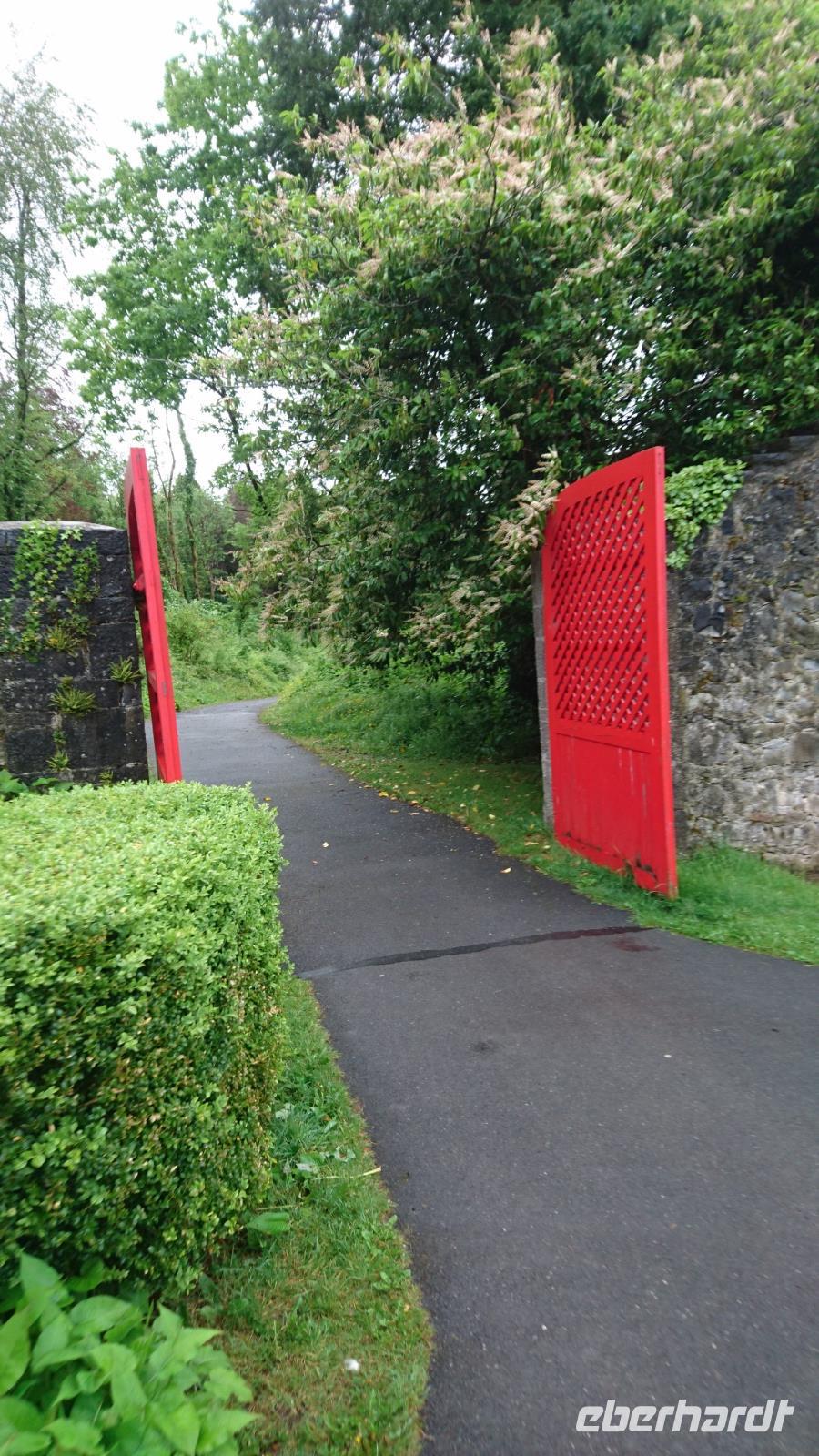Wieder hieß es: Koffer packen. Peter lud all unser Gepäck mit einer Ruhe und genauer Planung ins Busfach und wir staunten über seine tetrisartige Arbeit, ehe er und Stefan wieder die Morgengetränke im Bus verteilten und sich unser Fahrzeug gen Süden in Bewegung setzte. Längst hatten wir die Antrimküste verlassen und befanden uns nun auf dem Wild Atlantic Way, der uns nun noch einige Tage auf unserer weiteren Tour begleiten und führen sollte. Erst einmal ging es aus Letterkenny hinaus gen Süden, noch einmal an Donegal vorbei und schließlich verließen wir an einer sehr schmalen Stelle die Hauptstraße und fuhren hinein ins ursprüngliche Irland. Bald schon tauchte es vor uns auf, Schloss Mulaghmore, das Castle der Montbattens, die einst den indischen Vizekönig stellten und direkte Verwandte von Prinz Charles sind. Stefan erzählte uns die Geschichte des Todes desletzten wichtigen Lords der Familie, aber auch, wie vor einigen Jahren ein erster Staatsbesuch von Prinz Charles und seiner Lady Camilla Stefans Reiseprogramm einen Tag lang total durcheinanderbrachte. Dazu genossen wir die schroffen Küstenabschnitte dieser Tour und erreichten wenig später Drumcliff, welches ebenso mit der irischen Geschichte eng verknüpft ist, denn zum einen liegt dort der irische Nationaldichter E.B. Yeats begraben, zum Anderen steht da ein Baum, gepflanzt von Prinz Charles und zum Dritten findet man dort ein altes keltisches Hochkreuz und jenen Rundturmstumpf, der eines Tages zusammenbrechen soll, wenn der klügste Mensch der Welt daran vorbei geht. Nun ja, wir wollten den Iren den Turm nicht kaputt machen und ließen diesen Test einfach mal aus, fuhren lieber weiter und erreichten bald ebenso irische Geschichte, wenn auch sehr frühe. Denn nun ging es bis ins Jahr 4.000 und weiter vor Christus zurück. Das alte Megalithgräberfeld in Carrowmore legte Zeugnis ab von einer hohen Totenkultur eines Volkes, das plötzlich kam und ebenso plötzlich 2.000 Jahre nach seinem Eintreffen wieder verschwand, ohne dass man bis heute nachvollziehen kann, woher und wohin. Aber wir wussten, wohin wir heute noch wollten und nach Stefans Führung über die alte Grabanlage gab es Mittagswürstchen am Bus und dann den Aufbruch weiter nach Süden, wo wir den größten und wichtigsten irischen Wallfahrtsort, Knock, erreichten, dort nicht nur die riesige WC-Anlage nutzten, sondern ebenso die große Kirche besichtigten. Danach fuhren wir weiter, vorbei an Galway nach Gort, wo wir am Abend unser neues Hotel, das der Lady Gregory, bezogen und bald zu Abend aßen, ehe wir uns wieder ausruhten für kommende Erlebnisse.