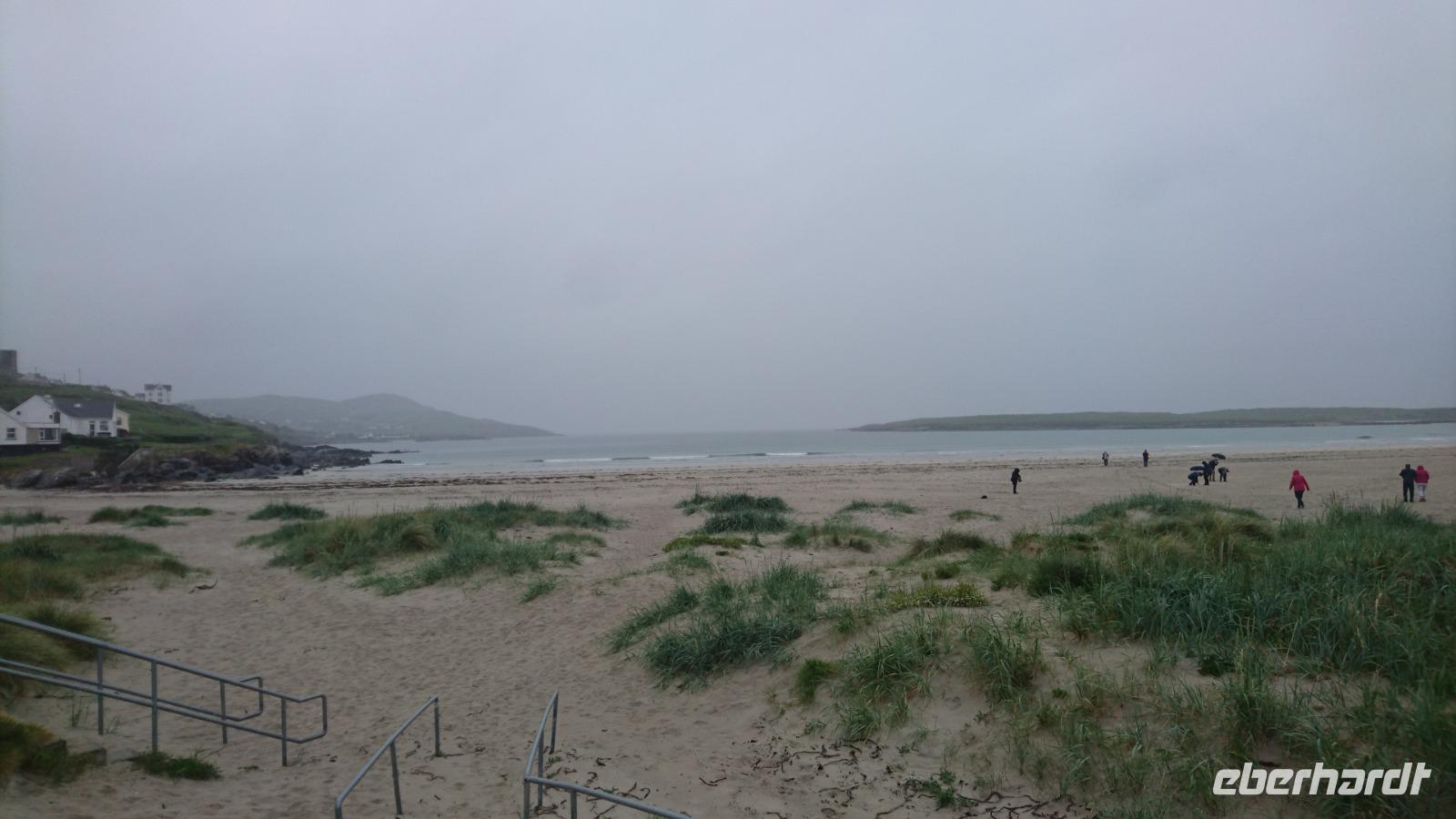 Fakultativ bedeutet freiwillig und extra. Trotzdem waren wir alle dabei, als Peter den Bus am Morgen startete. Es ging in den nahen Glenveagh Nationalpark, den einst ein Capitan Adare inmitten einer Torflandschaft als Jagdrevier und Wohnreich erschuf. Das Castle aus Granit am Lough Veagh unterhalb des heiligen Berges Mt. Errigal, der herrlich darum angelegte Park und der ummauerte Garten, aber auch das Besucherzentrum begeisterten uns alle sehr und wir bemerkten kaum, wie die Stunden dort vergingen. Zur Einstimmung sahen wir dort noch einen tollen Film, der die Geschichte des Nationalparks der Familie Adare, des Castles und natürlich der wunderbar heute noch gehegten Natur gut erläuterte, ohne zu langweilen. Doch nach all dem fuhren wir weiter, nicht etwa zurück zum Hotel, sondern zum Atlantik. Am Strand von Narin konnten wir das Atlantikwasser anfassen und Muscheln sammeln, ehe wir noch einen Abstecher nach Donegal Town unternahmen, wo wir uns Innenstadt, Hafen, Castle und viele andere kleine und schöne Details anschauten. Unterwegs auf unserer Tour sahen wir herrliche grüne Weiten, viele Torflager und frische Abstiche, kleine Dörfer mit den typisch irischen Häusern und so vieles mehr, dass wir kaum glaubten, all das an einem Tag erlebt zu haben, als wir am Abend am Hotel ankamen und bald zu Abend aßen.