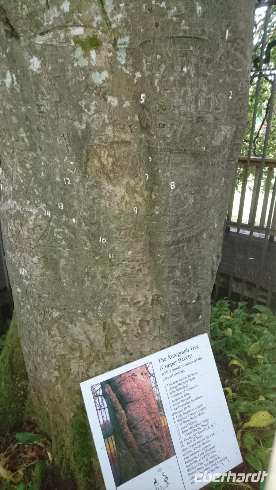 Auch ein Peter ist nur ein Mensch und so hatte er heute einen freien Tag und ein irischer Bus, gesteuert von Patrick von der Firma Martins, übernahm die heutige Tour mit uns. Zuerst wollten wir der Lady Gregory, die im Hotel als Gemälde zu sehen war, einen näheren Besuch abstatten und fuhren in ihren ehemaligen Wohnpark, den Coole Park bei Gort. Stefan zeigte uns hier einen sehr interessanten Baum, eine alte Rotbuche, in dessen Rinde eine Menge der Besucher der alten Lady ihre Unterschriften ritzten. Man kann diese im Unterschriftenbaum heute noch erkennen. W.B. Yeats, George Bernard Shaw und viele Weitere verewigten sich dort. Doch auch der ummauerte Garten war schön und so schauten wir uns all das ein wenig an, ehe es hinein in die Connemara Region ging. Bei Maams Cross machten wir eine klein e Bedürfnispause und sahen uns auch den großen Souvenirshop an, dann ging es weiter durch die einzigartige Torflandschaft, vorbei an hohen Bergen zum einzigen Fjord Irlands, dem Killary Harbour. Der Regen störte uns nicht, wir sahen uns Fjord, Austernbänke und die vielen wilden Rhododendronbüsche an, ehe es zu einem weiteren Highlight der Tour ging. Wir kamen nach Kylemore Abbey, einem alten Herrschaftshaus, das heute den Nonnen von Kylemore gehört und von ihnen bewirtschaftet wird. Stefan besorgte für alle, die hineinwollten, ein Gruppenticket und wir genossen die Umgebung und die schönen Sichten oder nutzten das Besucherzentrum für Shopping, Ruhe und Mittagessen. Danach und unterbrochen von ein paar Fotostopps und einer Pause in Spiddal, erreichten wir Galway, wo wir, geführt von Stefan, die Innenstadt kennenlernten und dann noch etwas Freizeit fürs eigene Bummeln von da zurück zum Bus bei der Kathedrale hatten. Die Rückfahrt war heute etwas ruhiger, denn wir waren viel zu Fuß unterwegs und darum müde. Am Hotel in Gort verabschiedeten wir uns von unserem heutigen Fahrer Patrick und gingen bald zum Abendessen vor der wohl verdienten Nachtruhe.