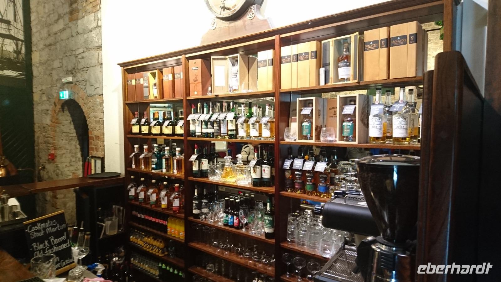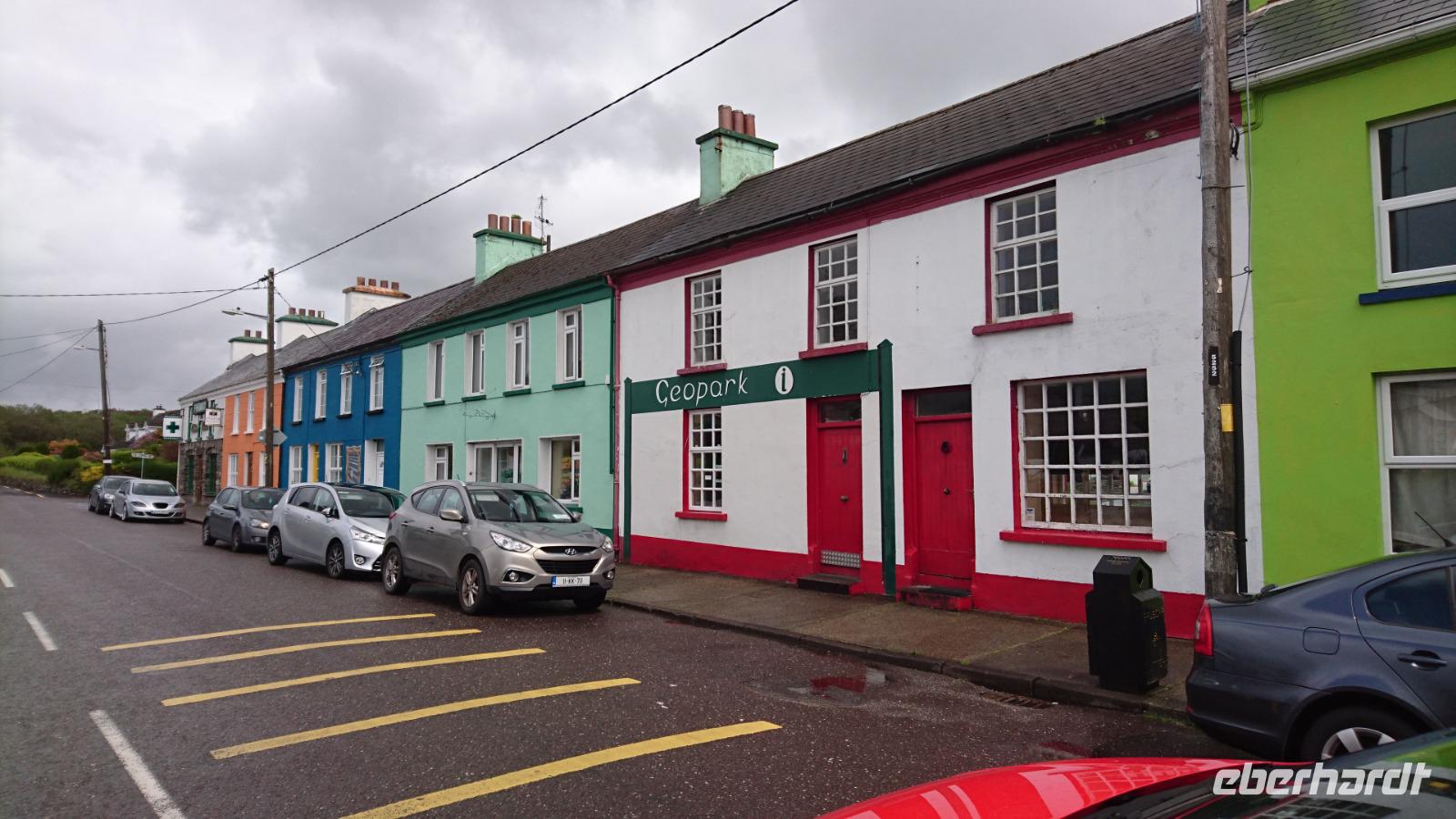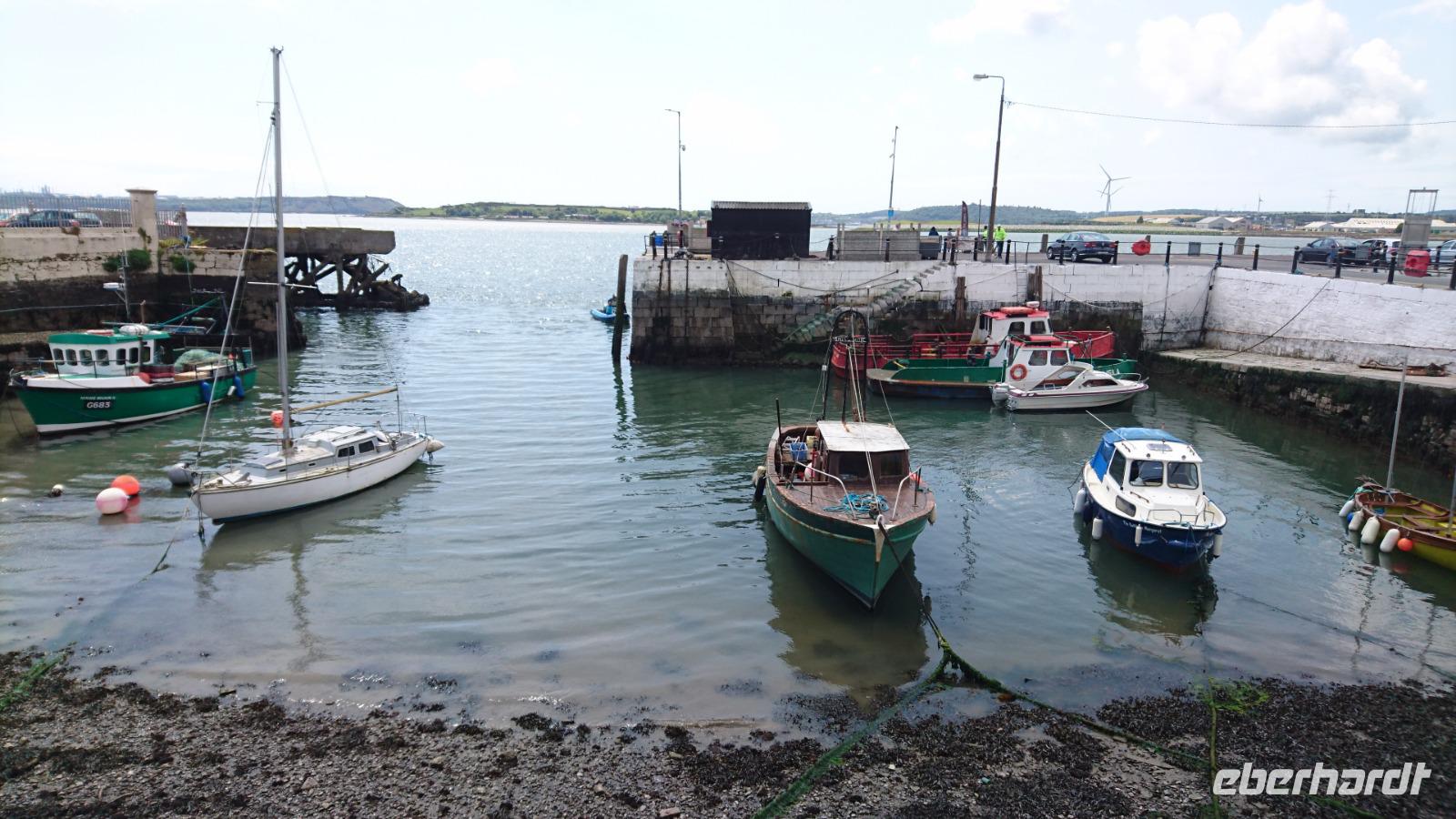 Ging es die letzten Tage nach Süden, schwenkte unser Kompass heute nach Osten. Peter puzzelte wieder all unsere Koffer ins Busfach und ab ging es, weiter herum um die Insel. Nach einiger Zeit erreichten wir Macroom für eine kleine Pause und die Besichtigung von Ort, Kirchhof und Castlefront, dann ging es vorbei an der größten Spielzeugsoldatenfirma der Welt und an Cork nach Cobh, der ehemaligen Hafenstadt von Cork und dem letzten Ort, wo die Titanic anlegte und hunderte von Iren aufnahm, die nach Amerika auswandern wollten. Damals hieß der Ort nach Königin Victoria noch Queenstown, doch mit der irischen Unabhängigkeit wollte man sich in der Republik Irland von den alten Königsnamen trennen und gab dem Ort wieder seinen alten irisch-gälischen Namen zurück. Wir besichtigten Ort, Pubs, Läden, Kathedrale, Denkmäler für untergegangene Schiffe und erfolgreiche Sportler und fuhren dann, gestärkt mit Würstchen aus dem Bus und eingenommen am Heritage-Center des Ortes am Busparkplatz, weiter nach Midleton, dort natürlich zu Jameson, der größten Whiskey-Produktionsfirma Irlands. Hier organisierte Stefan den schnellen Beginn unserer Führung und übersetzte dann auch gleich, was uns die Führerin erläutern wollte. Die Verkostung, erst im Vergleich zwischen schottischem, amerikanischen und irischen Whisk(e)y, dann mit einem Getränk unserer Wahl an der Formen-Museums-Theke, war auch toll und wir kamen ins Erzählen und bemerkten kaum, wie die Zeit verging. Nun noch schnell etwas im Souvenirshop einkaufen für daheim und dann ab in den Bus. Manch einer ließ sich sogar einen kleinen Flachmann mit seinem Namen gravieren, ehe wir wieder auf die Piste fuhren und weiter gen Osten kamen. Natürlich hatte Stefan wieder die passende irische Musik dabei und so hörten wir während der gesamten Tour viele bekannte oder auch für uns völlig neue irische Lieder, nun jedoch Pub-Musik, wie es nach der Verkostung auch passte. Aber wir fuhren jetzt nicht so einfach durch zum Hotel, obwohl der Tag ja schon fortgeschritten war. Irgendwann bog Peter, geführt von Stefan, ab gen Meer und wir erreichten Ardmore, einen kleinen Kirchhof mit einem gut erhaltenen Rundturm, einer Abteiruine und der ältesten noch erhaltenen Kapelle Irlands und einem wunderbaren Blick hinunter zum Strand von Ardmore und aufs Meer. Nach noch einmal vielen Fotos und einem interessanten Wendemanöver unseres Peter-Busses waren wir wieder auf der Straße und ab ging es nach Waterfort zu unserem heutigen Tower-Hotel direkt am Hafen und am Wikingermuseum. Denn Waterfort ist die älteste Stadt Irlands, einst, wie Dublin, gegründet durch die Wikinger und schön gelegen und gestaltet. Wir bezogen unsere Zimmer, aßen zu Abend und bummelten noch etwas durch die Stadt, ehe wir uns für die letzte Besichtigungsetappe unserer Tour zum Ausruhen niederlegten.