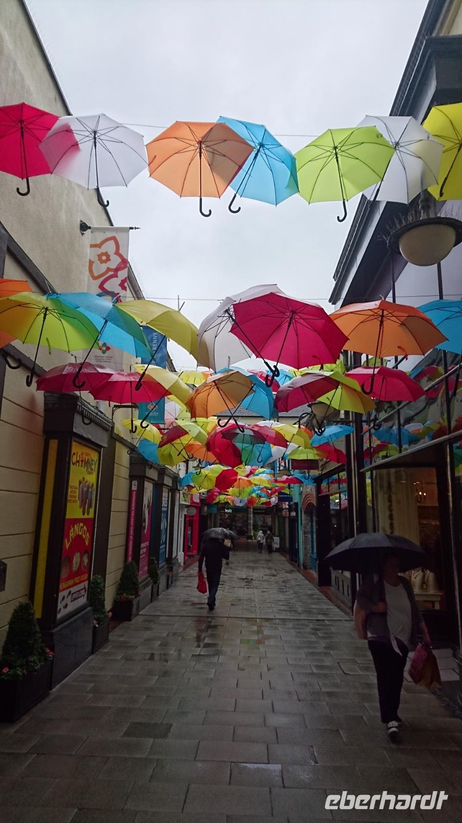 Die Koffer waren im Bus verstaut, es ging ab gen Norden. Unser nächster Stopp am tage war Kilkenny, die Bierstadt, woher unter anderem das von vielen aus unserer Gruppe gern am Abend getrunkene Smithwick's-Bier kam. Wer wollte, konnte an diesem leider verregneten tag das Kilkenny-Castle besichtigen, alle anderen waren im Ort unterwegs. Stefan empfahl das Einkaufszentrum zur Entspannung und den Aufstieg auf einen echten irischen Rundturm an der Kathedrale, die man einst an den noch existierenden Rundturm anbaute. Er selbst ging auch dahin und stieg hinauf, manch einer folgte. Der Ort ist hübsch und klein, hat viele Geschäfte und doch nicht so ein geschäftlich übertriebenes Treiben, wie deutsche Städte. Wir genossen es, ehe wir wieder in den Bus stiegen und Stefan uns verkünden musste, dass wir nun die letzte gemeinsame Fahrt in großer Runde antraten. Die Fluggäste würden heute am Hotel in Dublin aussteigen und morgen heimfliegen, während alle Busgäste die Heimreise per Bus und Fähre antreten würden. Also fasste Stefan die Tour noch einmal zusammen, ehe John, unser Stadtführer in Dublin, zustieg und uns die irische Hauptstadt zeigte. Hier sahen wir die Innenstadt, den River Liffy, die Guinness-Brauerei, machten Station im Phönix-Park und an der St. Patricks Kathedrale, ehe wir unser Hotel gleich oberhalb des Temple Bar Bezirkes erreichten, da eincheckten und trotz des Regens etwas Freizeit bis zum Abendessen in Dublin genossen. Nach dem Essen wollte kaum mehr jemand hinaus und so waren wir nicht traurig, nach der Stadtrundfahrt nicht viel mehr von Dublin zu sehen und zu erleben, denn vom Regen in der Stadt wollten wir uns unsere schönen Erlebnisse der letzten Tage nicht vermiesen lassen. Also verabschiedeten sich Bus- und Fluggäste voneinander, denn per Bus ging es am kommenden Morgen eher los, als per Flieger, und dann wurde wieder ausgeruht und alles noch einmal durchlebt, was wir in den letzten Tagen erlebten.