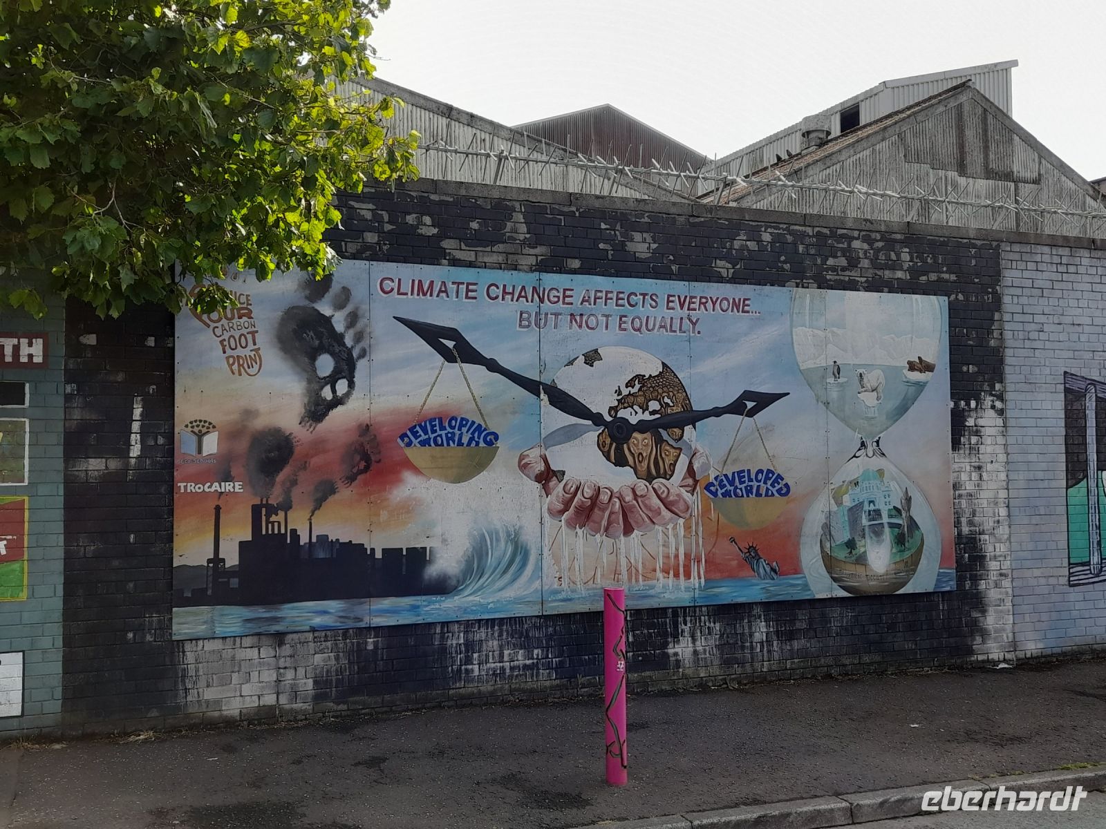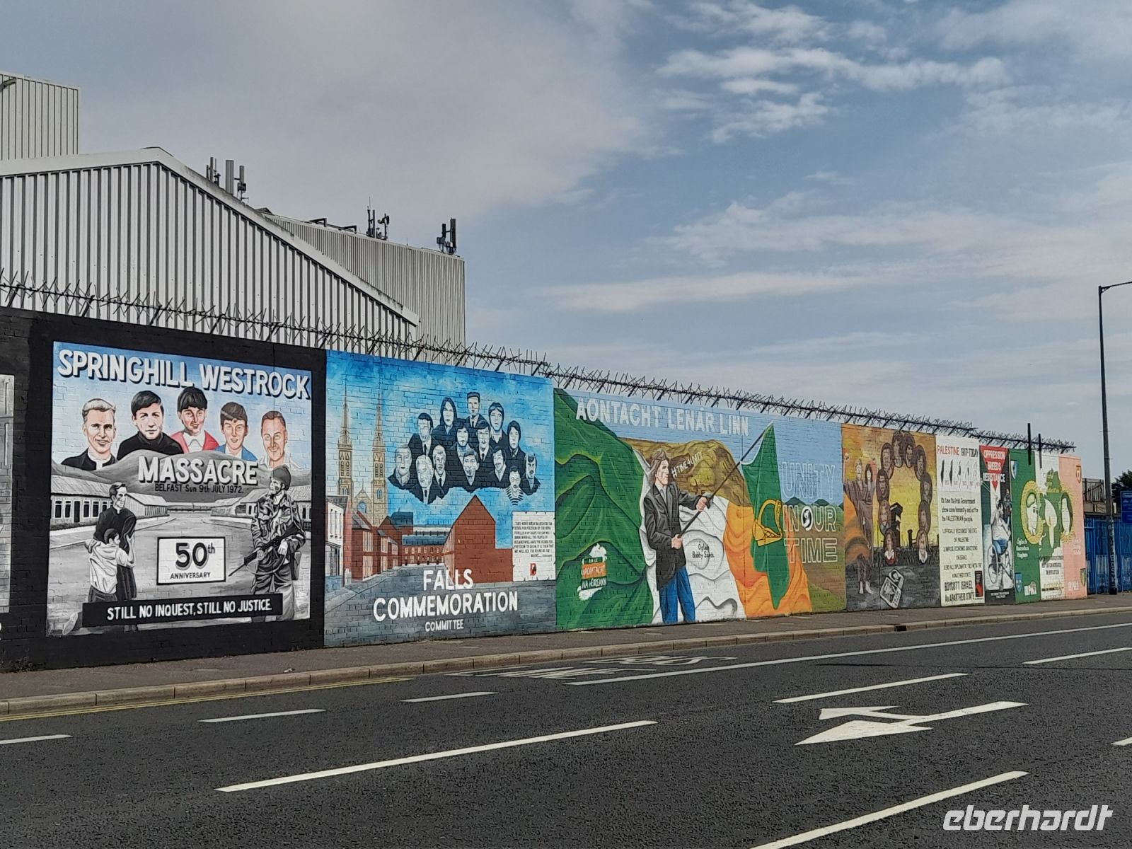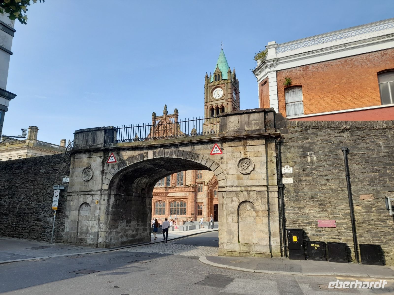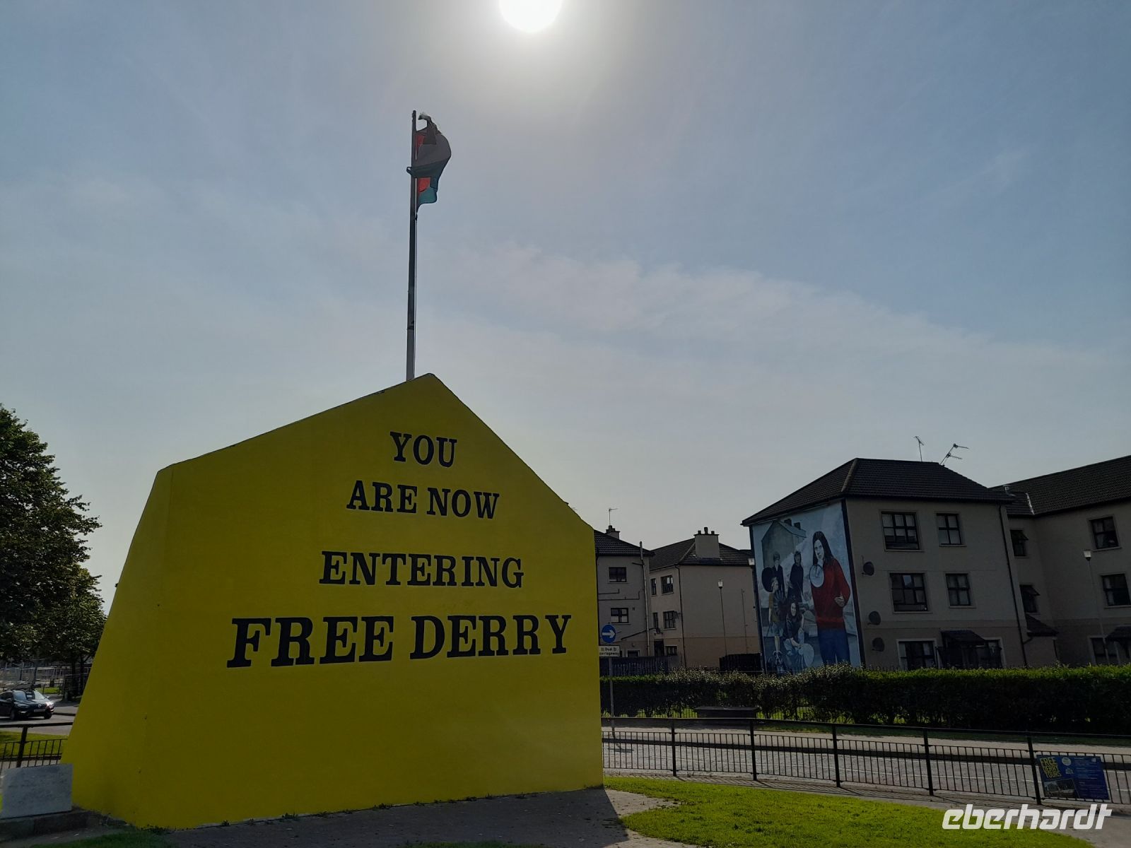 Am Nachmittag erreichen wir dann Derry/Londonderry. Die Stadt nahe der Grenze zur Republik Irland war seit Ender der 1960er Jahre Zentrum der blutigen Auseinandersetzungen zwischen Katholiken, Protestanten und dem britischen Militär. Als Bloody Sunday ging der 30. Januar 1972 in die Geschichte ein, als die Armee das Feuer auf unbewaffnete Zivilisten eröffnete und damit eine Reihe von Vergeltungsschlägen der IRA auslöste.
