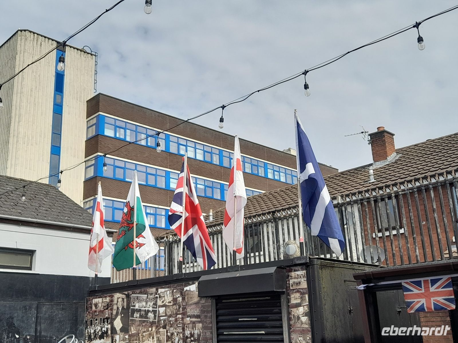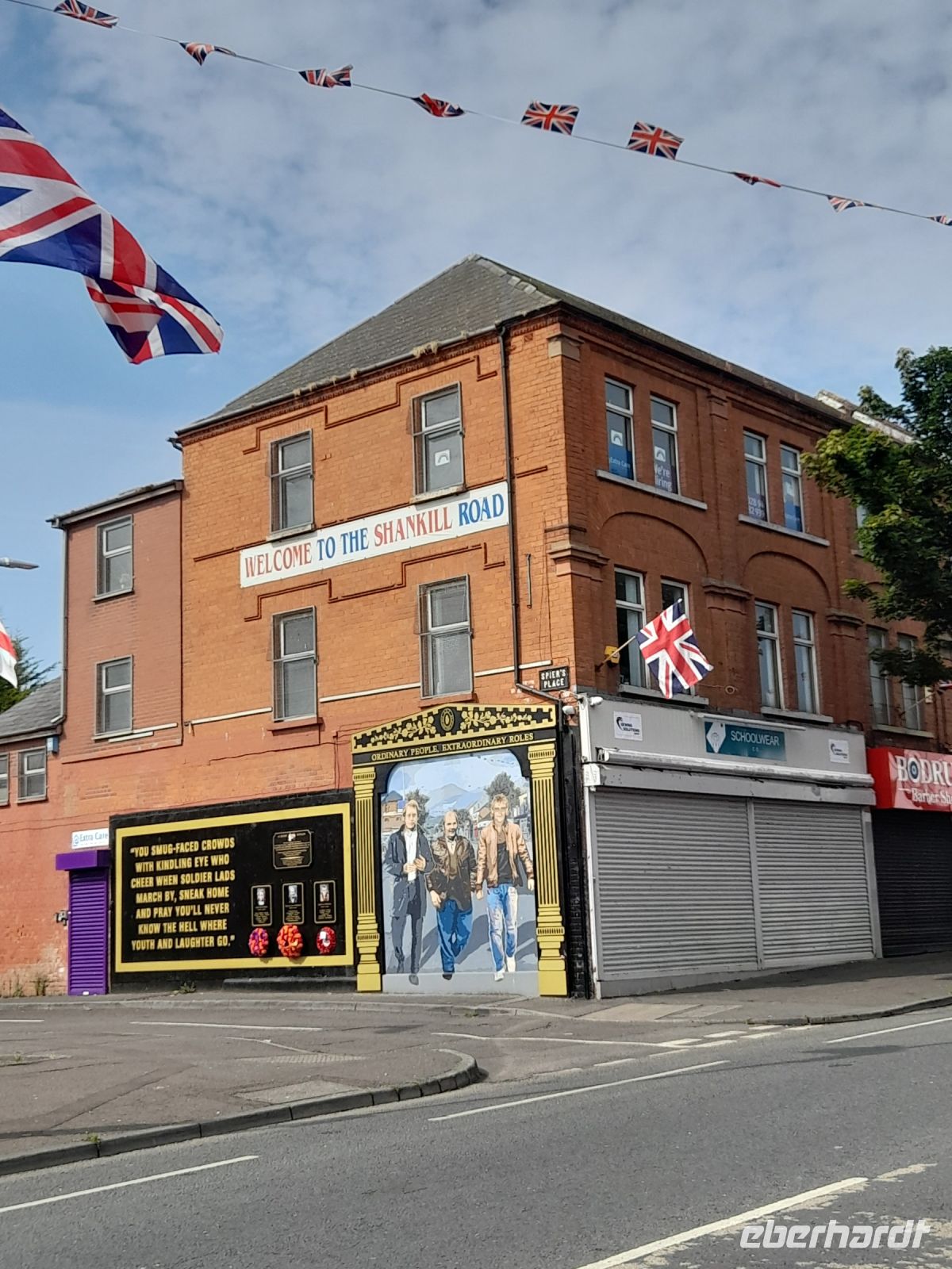 Weiter geht es im Anschluss durch die berühmte Shankill Road, die vom Thronjubiläum Königin Elisabeths noch reich geschmückt ist, durch die Innenstadt und hinaus zum nordirischen Parlament.