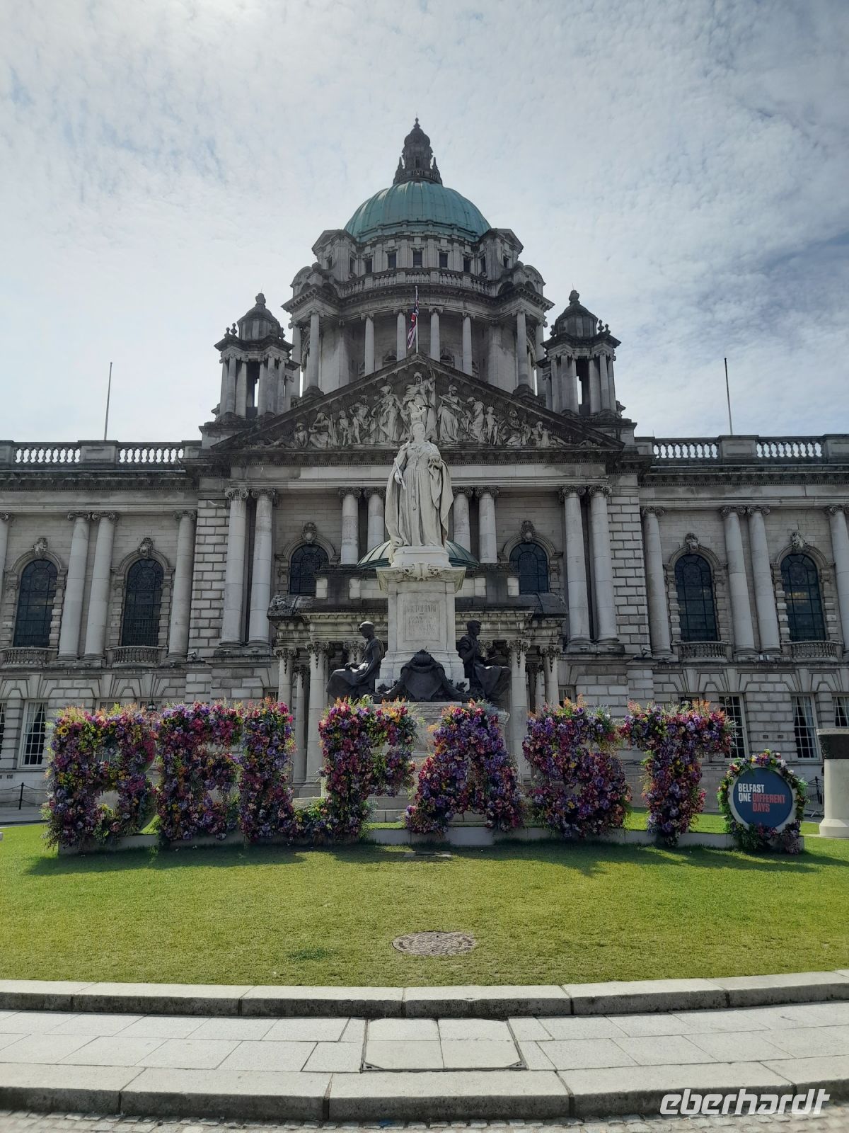 Endlich ist es soweit, die Rundreise geht mit der kompletten Gruppe endlich so richtig los. Nach dem Frühstück treffen wir unsere Stadtführerin Bibi, um mit ihr die Hauptstadt Nordirlands richtig kennenzulernen. Bei unserer Stadtrundfahrt besuchen wir zunächst die Queen's University, die Mitte des 19. Jahrhunderts durch Königin Victoria gegründet wurde und heute eine der weltweit renommiertesten Fakultäten für Medizin vorweisen kann. Der Hochschule angegliedert ist ein wunderschöner botanischer Garten, von dem wir uns bei einem kleinen Spaziergang zumindest einen Überblick bekommen können.