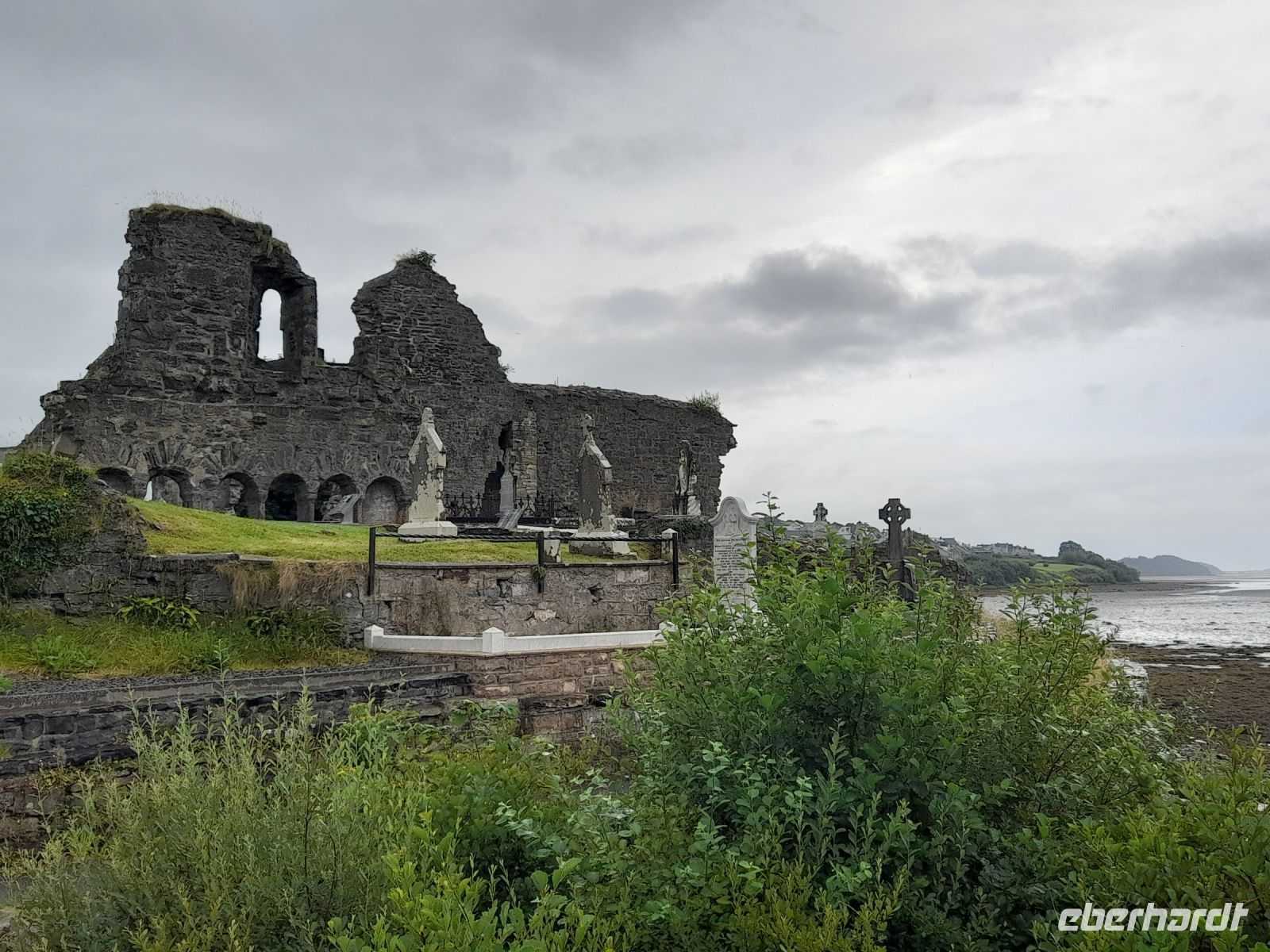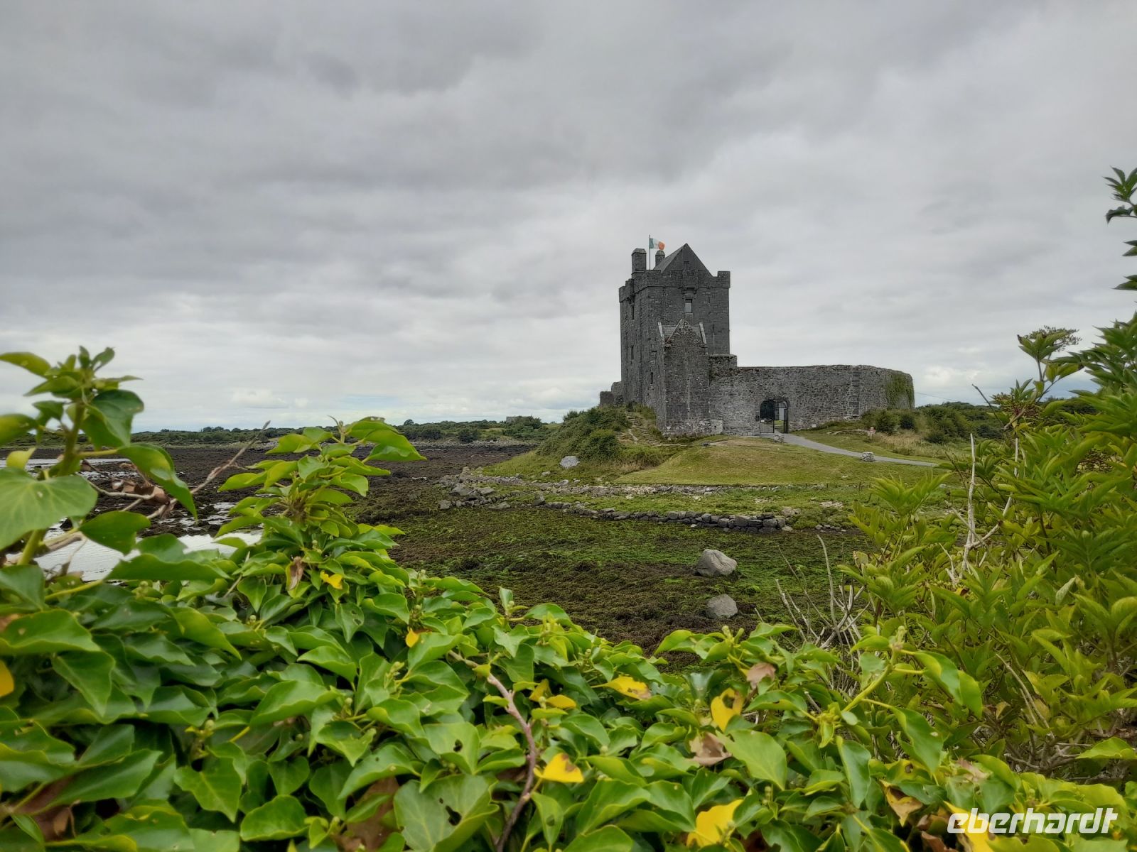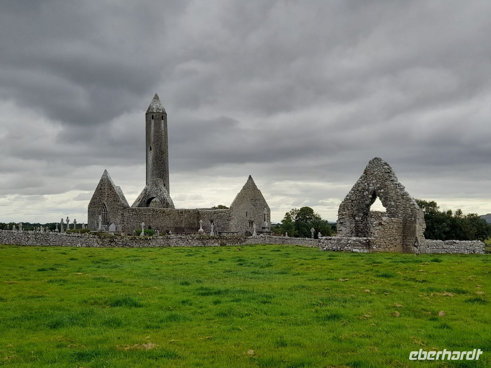 Am Nachmittag erreichen wir dann schließlich das County Galway. Bevor wir unser Hotel in Gort für die nächsten Nächte beziehen, machen wir allerdings noch einen kleinen Abstecher an die Küste. Das Dunguaire Castle, ein Wohnturm aus dem 16. Jahrhundert liegt in einer kleinen Bucht der Galway Bay und war im 19. Jahrhundert Treffpunkt des Literatenzirkels um Lady Gregory, zu dem auch William Butler Yeats gehörte. Zu guter Letzt besuchen wir noch die Abtei von Killmacdough, deren Rundturm genauso schief sein soll wie der Turm von Pisa. Wir sind uns nicht ganz sicher, ob das stimmt, aber tolle Fotomotive gibt es hier allemal.