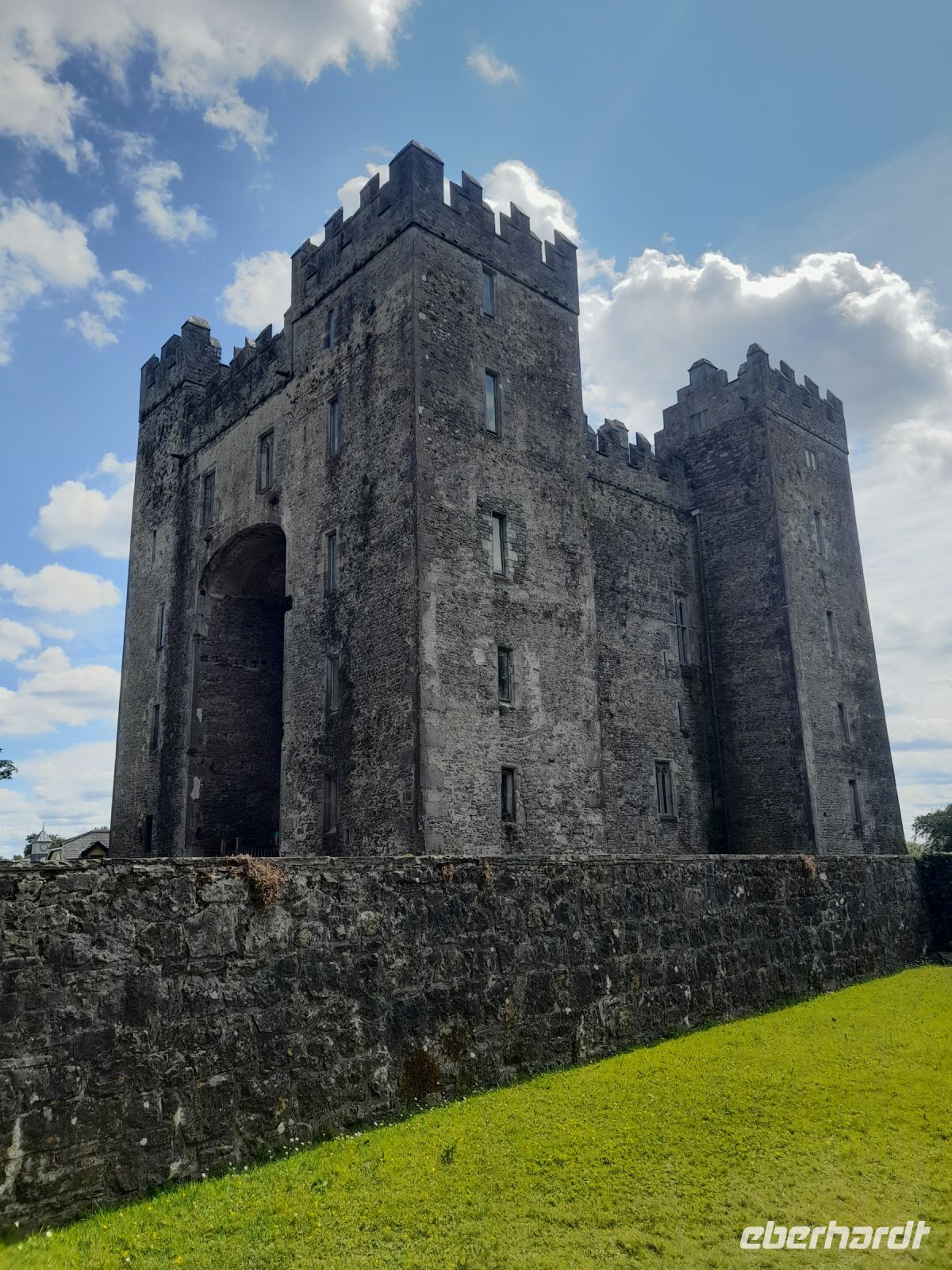 Nach der Mittagspause folgen wir dann recht bald dem Fluss Shannon, dem längsten Fluss des Landes bis wir in der Nähe der Stadt Limerick das Bunratty Castle erreichen. Die Burg ist heute nach dem originalgetreuen Zustand aus dem 15. Jahrhundert restauriert und eingerichtet und bietet einen tollen Einblick in das Leben eines Clanoberhauptes. So glamourös wie man es sich vorstellen könnte, war auch der Alltag des Adels damals nicht. Wie hingegen das gewöhnliche Volk zum Teil noch bis ins 20. Jahrhundert lebte, kann man im angegliederten Freilichtmuseum anhand zahlreicher Gebäude aus ganz Irland erfahren, die anderswo abgebaut und hier wiederaufgebaut wurden.