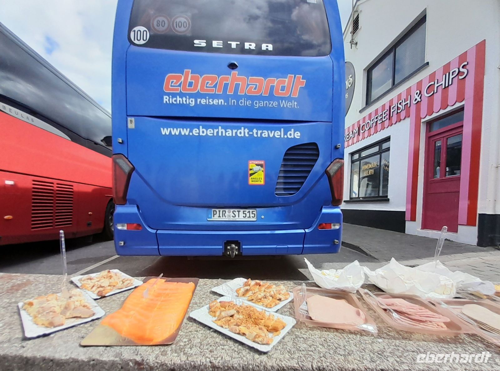 Wer weit reisen möchte, muss früh aufstehen – so oder so ähnlich könnte das Motto jeder Reise auf die britischen Inseln lauten. Schon vor drei Uhr morgens verlässt der Eberhardt-Reisebus den Betriebshof in Kesselsdorf und trifft wenig später zum ersten Zustieg in Siebenlehn ein. Über Chemnitz und Teufelstal geht es dann mit 16 Reisegäste weiter über A4 und A3 in Richtung der Niederlande. Durch den üblichen Stau geht es streckenweise etwas langsam voran, doch letztendlich erreichen wir pünktlich den Fährhafen von Amsterdam in Ijmuiden.