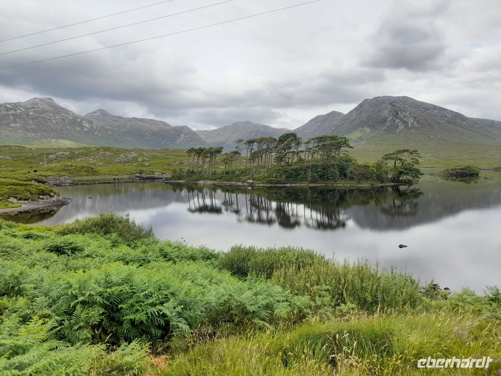 Da Jan heute einen Ruhetag braucht, geht es mit einem irischen Bus und Fahrer Ollie auf Tagesfahrt auf die Halbinsel Connemara. Die Region in der Grafschaft Galway ist bekannt für ihre herrliche Natur: Torfmoore, zu dieser Zeit des Jahres schon mit ersten sanften Tupfern der lila Heideblüte, und zahlreiche dunkle Seen im Süden, die bis zu 700 Meter hohen Berge „Twelve Bens“ des Connemara-Nationalparks im Norden.