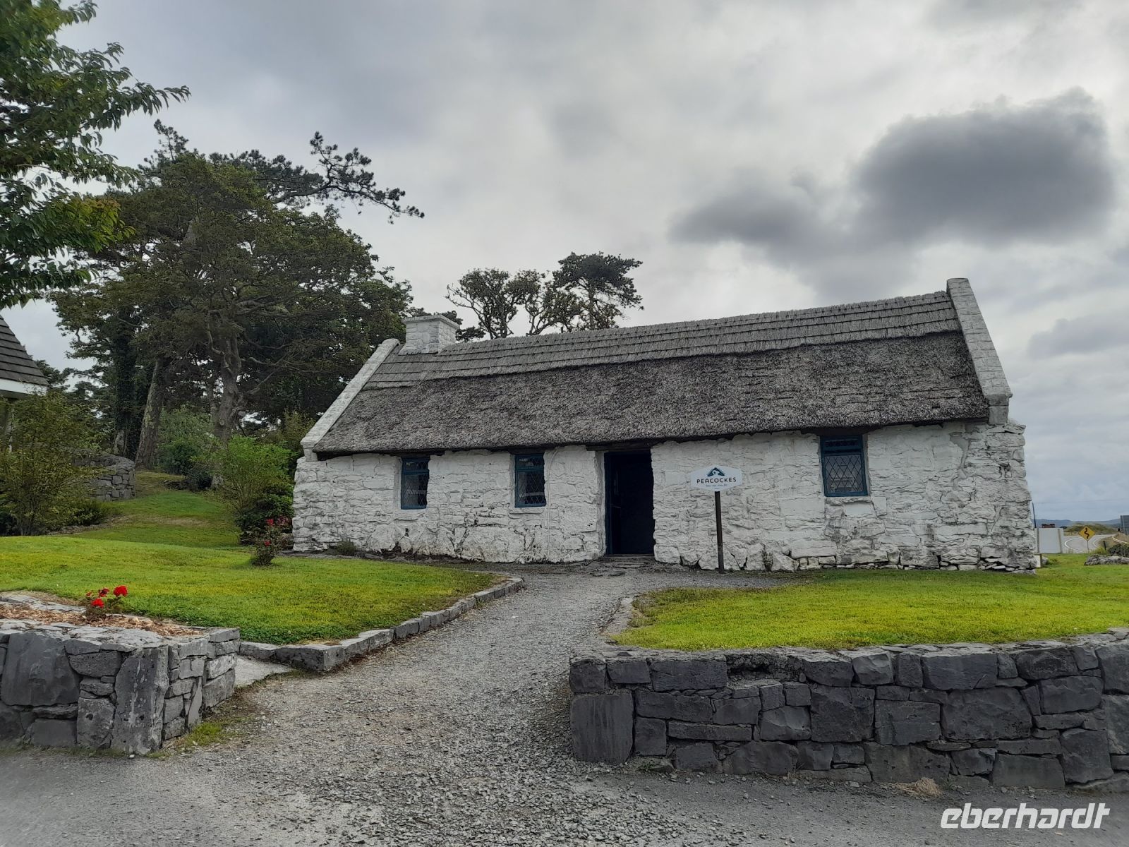 Bei unserem ersten Stopp können wir ein traditionelles irisches Cottage besichtigen und uns ansehen, wie die arme Landbevölkerung noch bis ins späte 19. Jahrhundert gelebt hat. Außerdem gibt das strohgedeckte, weiß getünchte Häuschen auch ein wunderbares Fotomotiv ab. Unterbrochen von einigen Fotostopps geht es über den Hauptort Connemaras, Cliffden, weiter zur berühmten