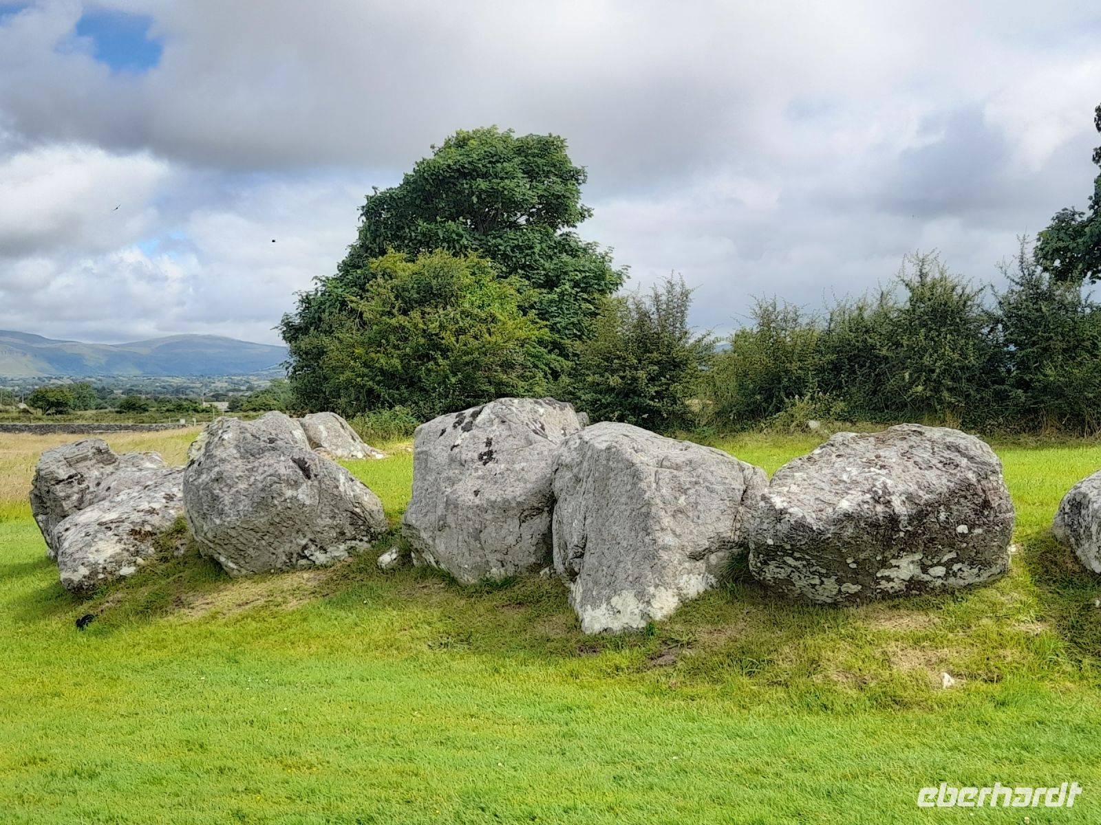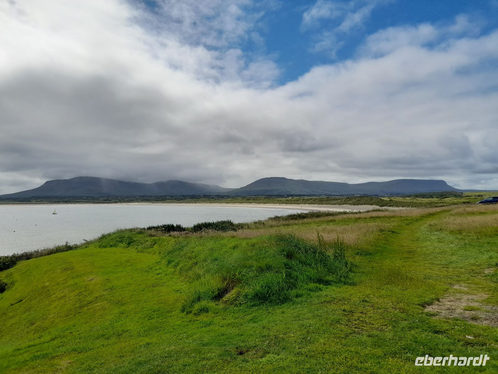 Auf der gleichen Route wie gestern verlassen wir heute das County Donegal Richtung Süden, auch in der Hoffnung, das schlechte Wetter im Norden zurückzulassen. Unser erstes Ziel ist die kleine Mullaghmore-Halbinsel ganz im Norden des County Sligo. Pünktlich zu unserer Ankunft verziehen sich die dunklen Wolken ins Landesinnere und geben ein grandioses Bild ab, wie sie in den Gipfels der Dartry Mountains hängen. Passend zum Wetter gibt es noch einen Irish Coffee zur schönen Aussicht und anschließend noch eine Rundfahrt entlang der Steilküste. Dann geht es weiter, vorbei an Sligo, zur Megalithanlage von Carrowmore. Auf etwa drei Quadratkilometern befinden sich hier 25 sehr gut erhaltene von ursprünglich über 80 Grabanlagen, die zwischen 4000 und 2500 v. Chr. in der Jungsteinzeit errichtet wurden. Diese Konzentration macht die Anlage in Irland einzigartig. In der Nähe liegt der Knocknarea, ein 350 m hoher natürlicher Hügel, auf dem unter anderem ein gewaltiges Hügelgrab liegt, dort soll die mythologische Königin Madb begraben worden sein.