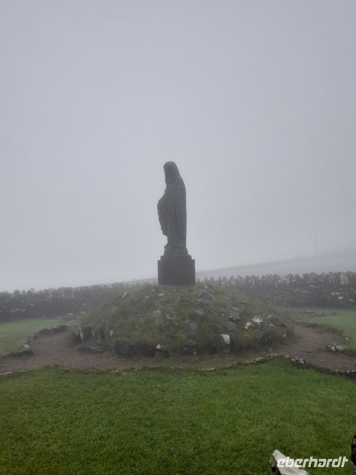 Neben all der Mythologie gibt es allerdings eine Komponente die man in der irischen Identität nicht vergessen darf: über 85% der Bevölkerung sind heute noch gläubige Katholiken und somit spielt auch die Kirche eine wichtige Rolle im alltäglichen Leben. Wichtige Themen der modernen Gesellschaft wie Scheidungen, Schwangerschaft vor der Ehe, Abtreibungen und Verhütung sind bis heute gerade auf dem Land noch unglaublich große Probleme. Doch abgesehen davon bringt der Glaube auch Kurioses zum Vorschein. Während der Kult um den Nationalheiligen Patrick in der ganzen Welt bekannt ist, schaffen es die heute immer noch auftretenden Wunder nicht unbedingt in die internationale Presse. Der größte Kassenschlager ist der Wallfahrtsort Knock. Im bitterarmen County Mayo soll am 21. August 1879 um 8 Uhr abends die Jungfrau Maria, in Begleitung des heiligen Josef sowie des Evangelisten Johannes, mehreren Personen am Südgiebel der Johannes dem Täufer geweihten Kirche im Dörfchen Knock erschienen sein. Binnen weniger Wochen setzte ein Zustrom von Pilgern ein, der dazu führte, dass 1963 eine Kirche für bis zu 10.000 Gläubige eingeweiht wurde und 1986 sogar ein Flughafen, der den Pilgern die Reise vereinfachte.