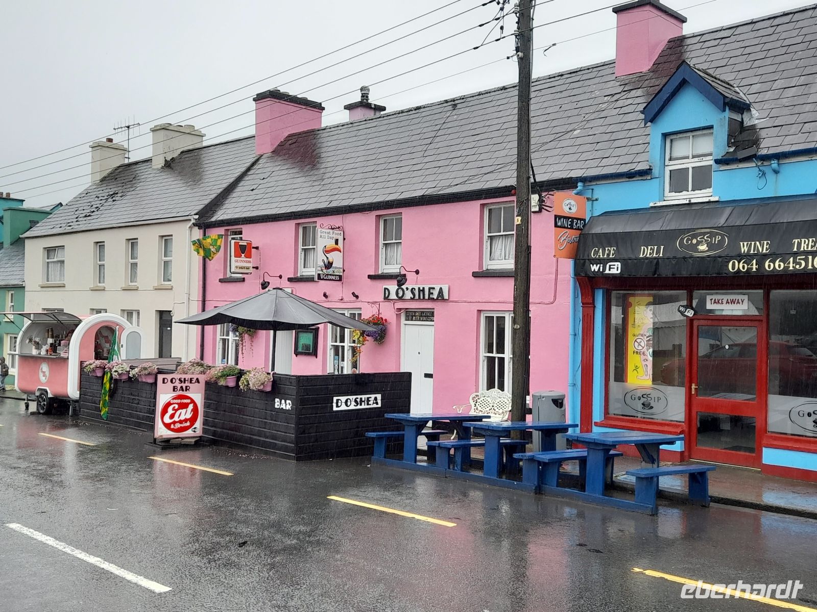 Leider hat sich das Wetter nun schließlich für Regen entschieden und wir legen zunächst einmal einen Stopp im pittoresken Örtchen Cahersiveen ein und hoffen, dass das Wetter etwas aufklart. Leider ohne großartige Verbesserung geht es anschließend weiter bis nach Waterville, wo viele Reiche und Prominente, unter anderem auch Charlie Chaplin, gerne ihren Urlaub verbrachten und immer noch verbringen.