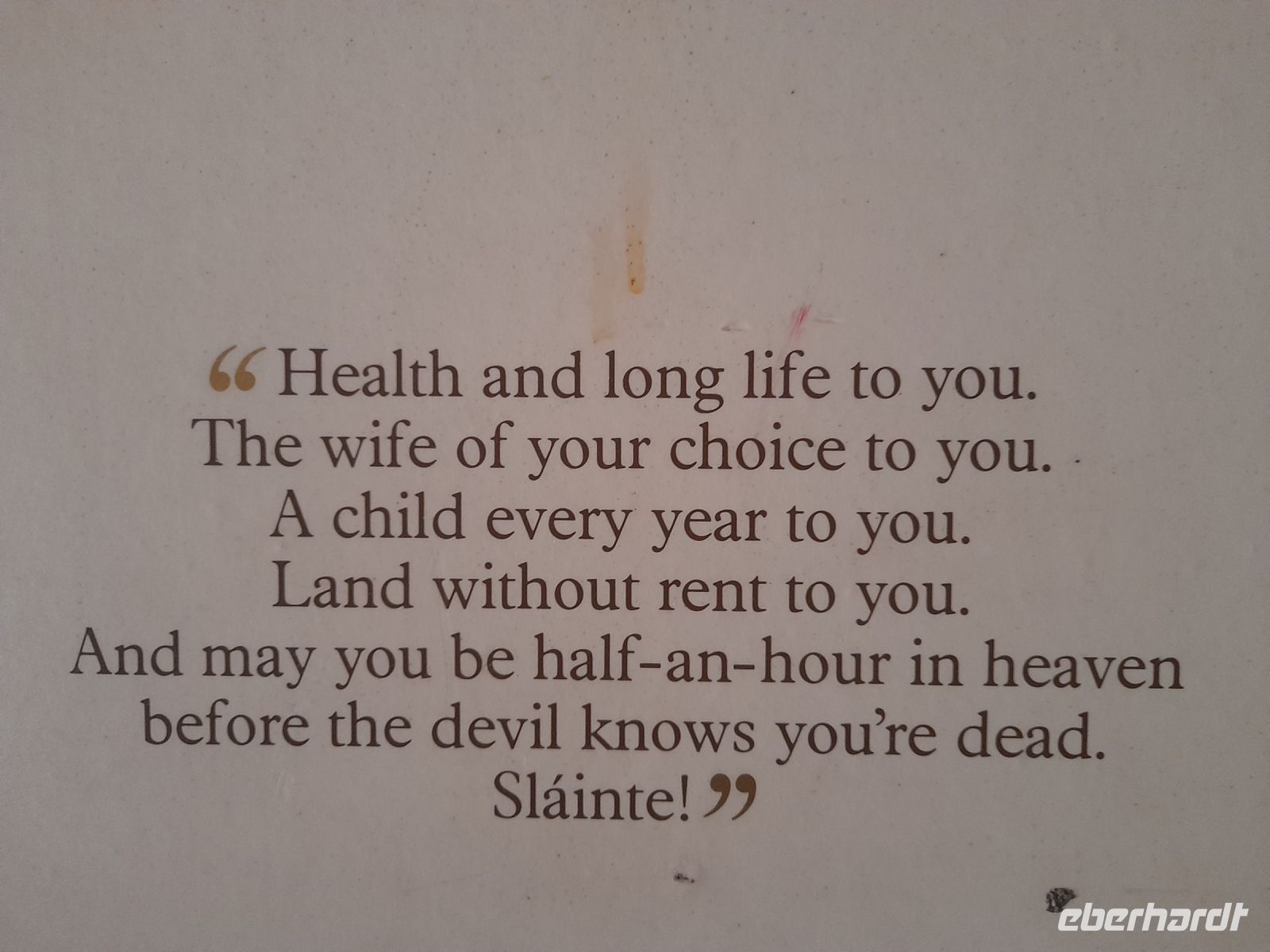 Anschließend geht es dann wieder auf die Autobahn und vorbei an Limerick. Eine gute Gelegenheit um die weitere Fahrzeit mit etwas Beschäftigungstherapie zu vertreiben. Ob die bekannten Spaßgedichte ihren Namen nun tatsächlich von der Stadt Limerick haben, das kann bis heute niemand mit Sicherheit sagen – aber nach dem Schema AABBA reimt es sich ganz wunderbar und bis zum nächsten Vormittag sollen noch einige kreative Reime zum Wettbewerb eintrudeln.