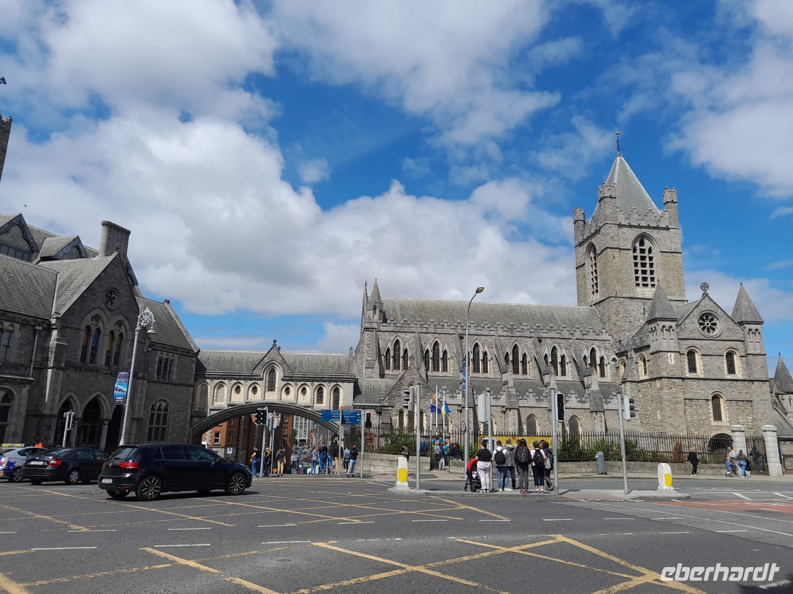 Unser letzter gemeinsamer Tag in Irland steht ganz im Zeichen der irischen Hauptstadt. Nach einer guten Stunde Fahrt erreichen wir Baile Átha Cliath, wie Dublin auf irisch heißt. In der größten Stadt des Landes leben etwa 600.000 Menschen und noch einmal so viele in den umliegenden Vororten. Kein Wunder, dass uns hier gefühlt mehr Verkehr begegnet wie auf der ganzen Reise zusammen. Doch pünktlich treffen wir am Heuston Bahnhof ein, um dort unsere Stadtführerin Monika zu treffen. Direkt fällt der Blick natürlich auch auf das riesige Gelände der Guinness-Brauerei, die 1759 von Arthur Guinness gegründet wurde. Mit ihrer arbeiterfreundlichen Firmenpolitik trug und trägt das Unternehmen in den letzten über 250 Jahren entscheidend zur Entwicklung der Stadt Dublin bei.