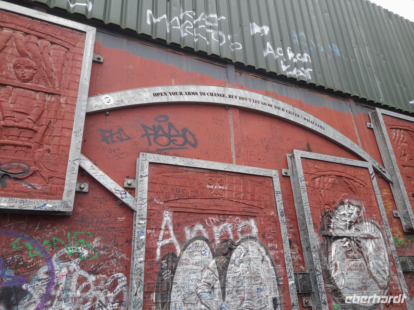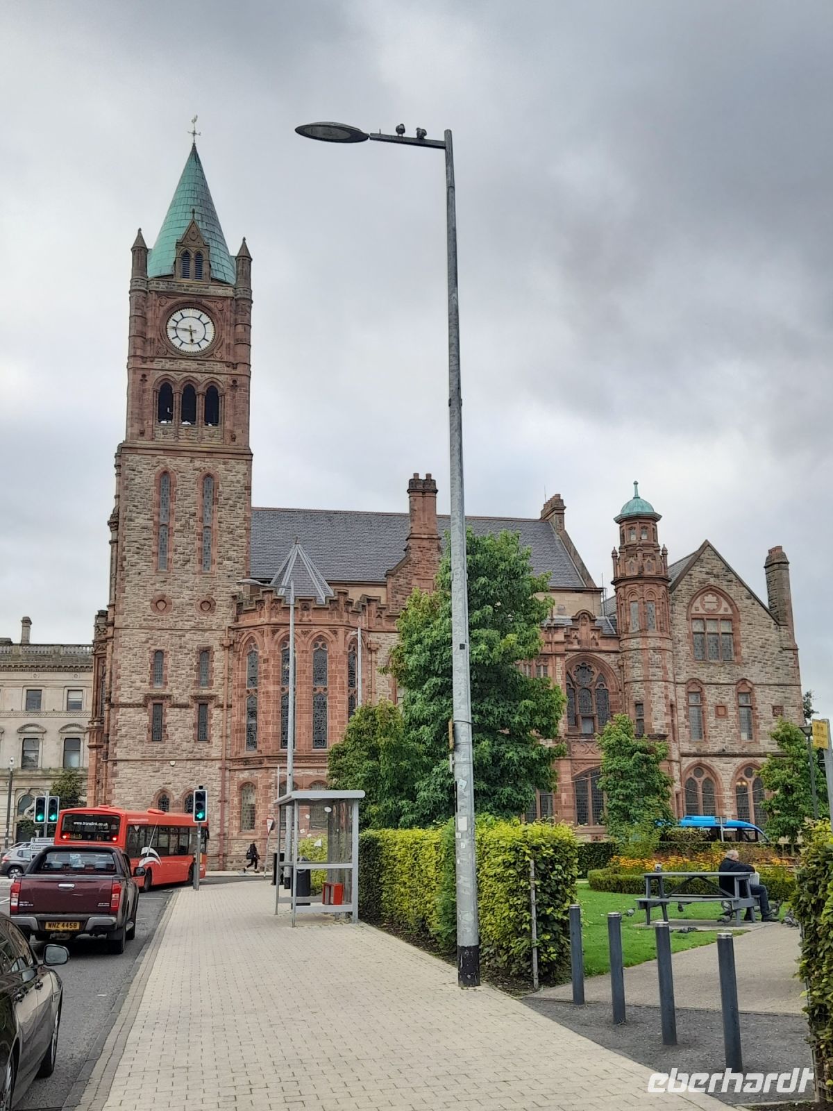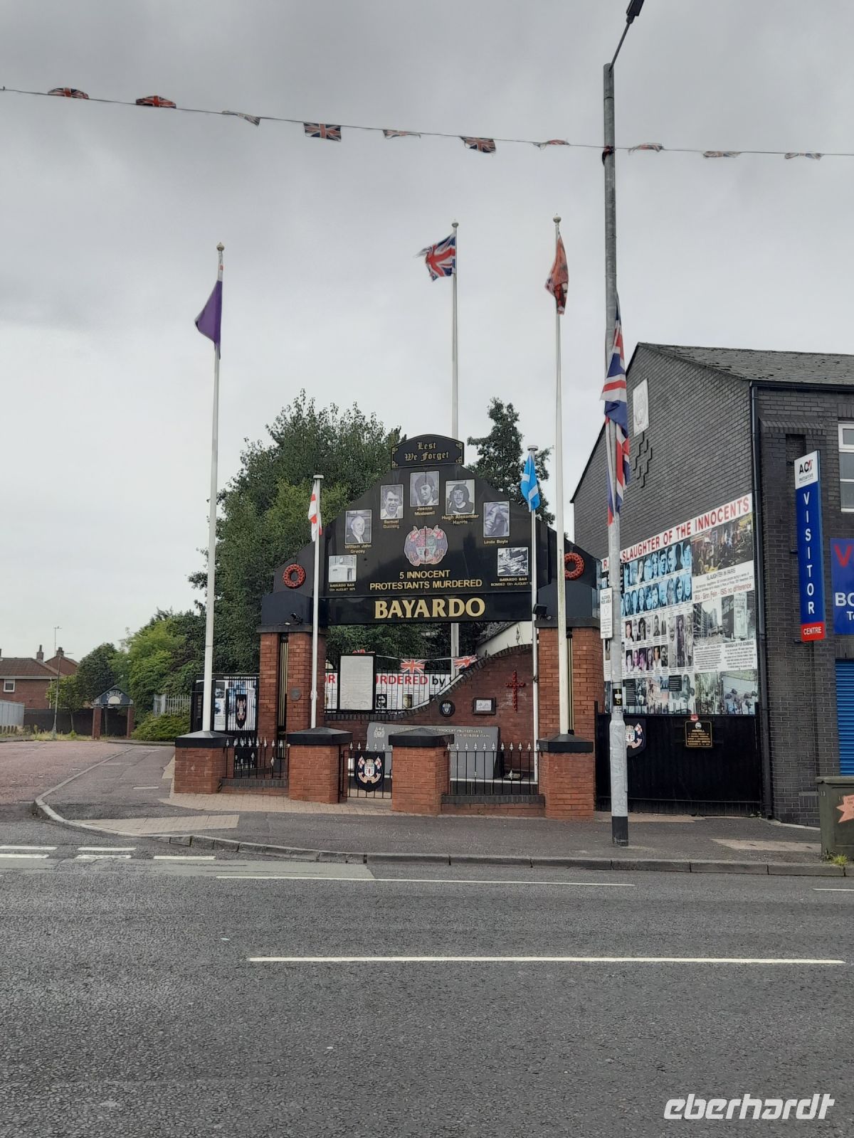 Am späten Nachmittag erreichen wir dann Derry/Londonderry. Die Stadt nahe der Grenze zur Republik Irland war seit Ender der 1960er Jahre Zentrum der blutigen Auseinandersetzungen zwischen Katholiken, Protestanten und dem britischen Militär. Als Bloody Sunday ging der 30. Januar 1972 in die Geschichte ein, als die Armee das Feuer auf unbewaffnete Zivilisten eröffnete und damit eine Reihe von Vergeltungsschlägen der IRA auslöste.