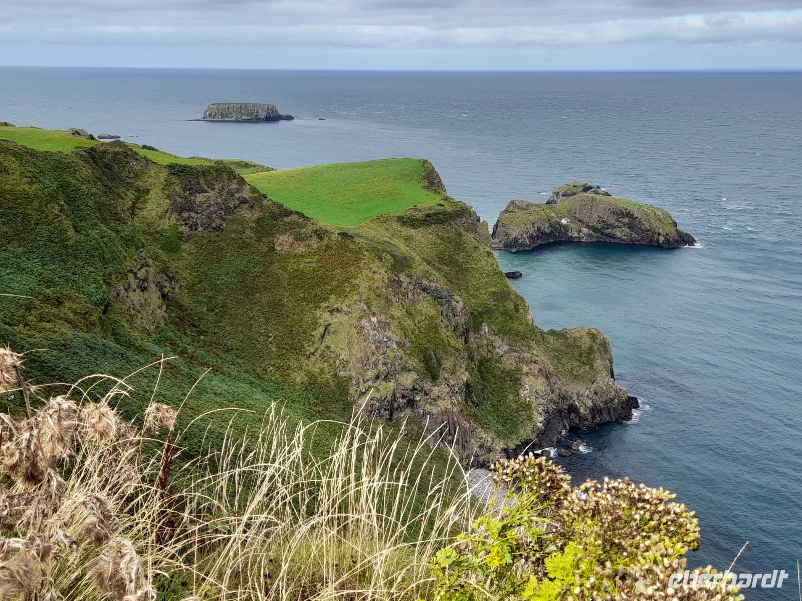 Früh verlassen wir heute die Hauptstadt Nordirlands in Richtung Norden. Vom Regen von gestern ist zum Glück kaum noch etwas zu sehen und die Sonne kämpft sich langsam aber sicher durch die Wolken. Wir folgen der Küstenstraße, der Causeway Coastal Route zunächst bis nach Carrickfergus. Das Castle aus dem 12. Jahrhundert ist die größte erhaltene normannische Burg Irlands und durchaus geschichtsträchtig. Wir fahren weiter entlang der Küste und genießen die Landschaft der Grafschaft Antrim, die zu den schönsten in ganz Irland gehört. Grüne bewaldete Täler, die in der letzten Eiszeit von gewaltigen Gletschern geformt wurden, wechseln sich ab mit wilder Küstenlandschaft und smaragdgrünen Buchten mit weißen Sandstränden. Im Hinterland erinnern heidebewachsene Hochmoore an Schottland. Auch mythologisch sind die beiden Länder eng verbunden.