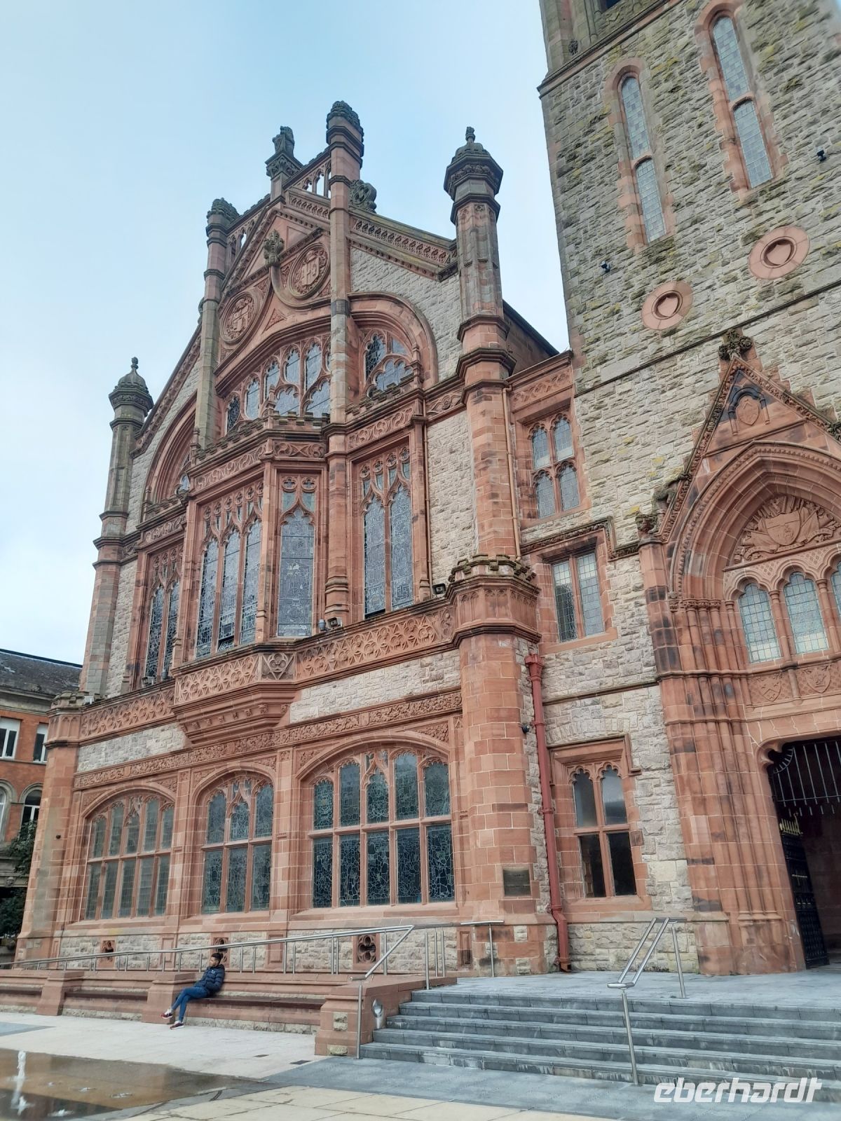 Endlich ist es soweit, die Rundreise geht mit der kompletten Gruppe endlich so richtig los. Nach dem Frühstück treffen wir unsere Stadtführerin Bibi, um mit ihr die Hauptstadt Nordirlands richtig kennenzulernen. Bei unserer Stadtrundfahrt besuchen wir zunächst die Queen's University, die Mitte des 19. Jahrhunderts durch Königin Victoria gegründet wurde und heute eine der weltweit renommiertesten Fakultäten für Medizin vorweisen kann.