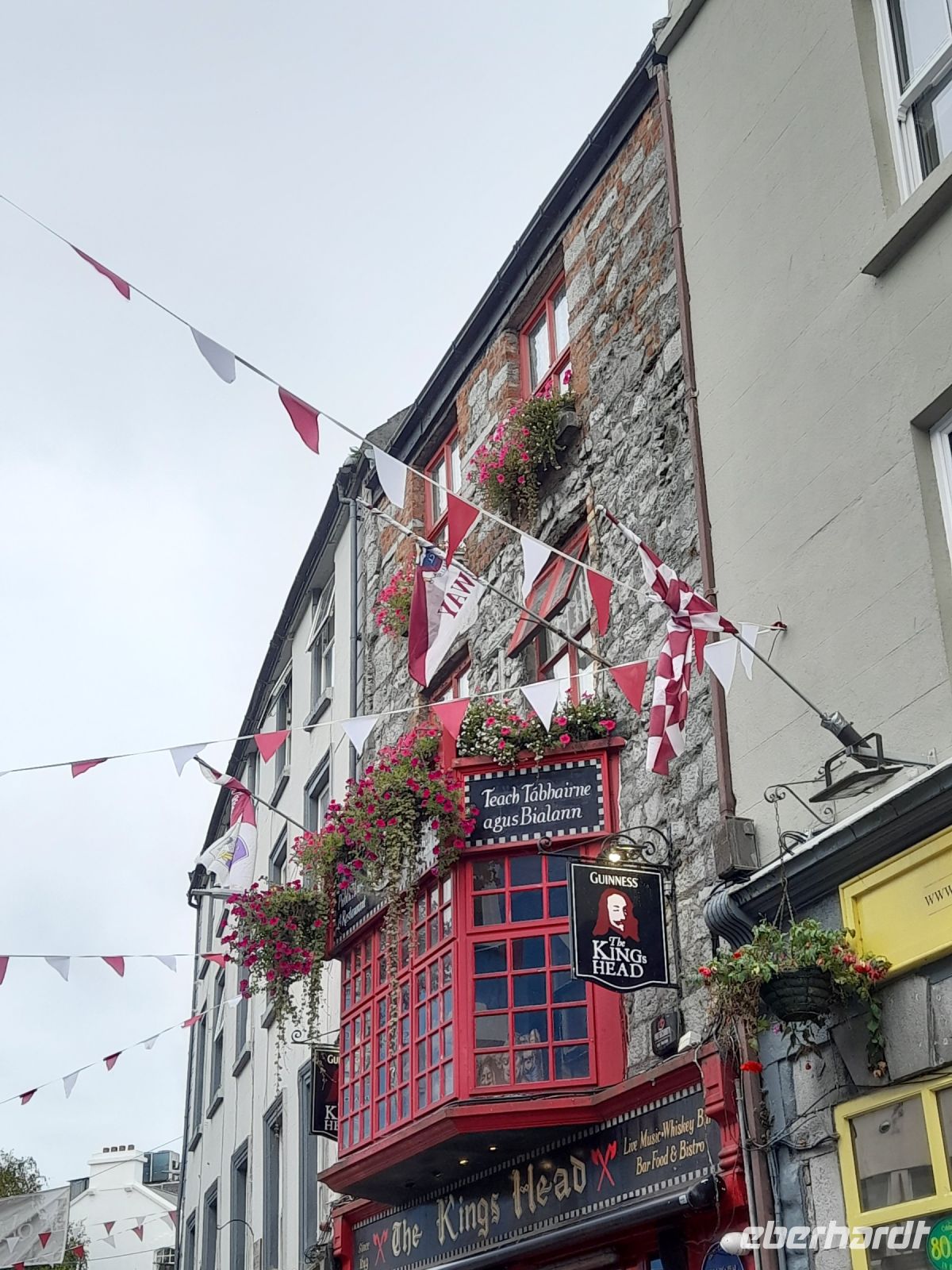 Am Nachmittag erreichen wir dann schließlich das County Galway, wo wir wenig später die gleichnamige Hauptstadt besuchen. Die Stadt an der Mündung des Flusses Corrib an der Galway-Bucht ist heute vor allem für seine lebhafte Pub- und Musikerszene bekannt. Wir starten an der prunkvollen, neugotischen Galway Cathedral, die erst in den 1960er Jahren vollendet wurde und unternehmen einen kleinen Bummel durch die Innenstadt und genießen die Atmosphäre. Besonders markant sind natürlich die viele Straßenmusiker und die zahlreichen Geschäfte, in denen man die typischen Claddagh-Ringe kaufen kann. Der Ring zeigt zwei Hände, die ein Herz mit einer Krone halten. Das Herz symbolisiert Liebe, die Hände Freundschaft und Vertrauen, die Krone Treue und Loyalität. Er wird als Partner- oder Freundschaftsring, gleichsam von Frauen und Männern getragen. Natürlich ragt sich auch um die Erfindung des Ringes eine dramatische Geschichte, allerdings eine mit Happy End.