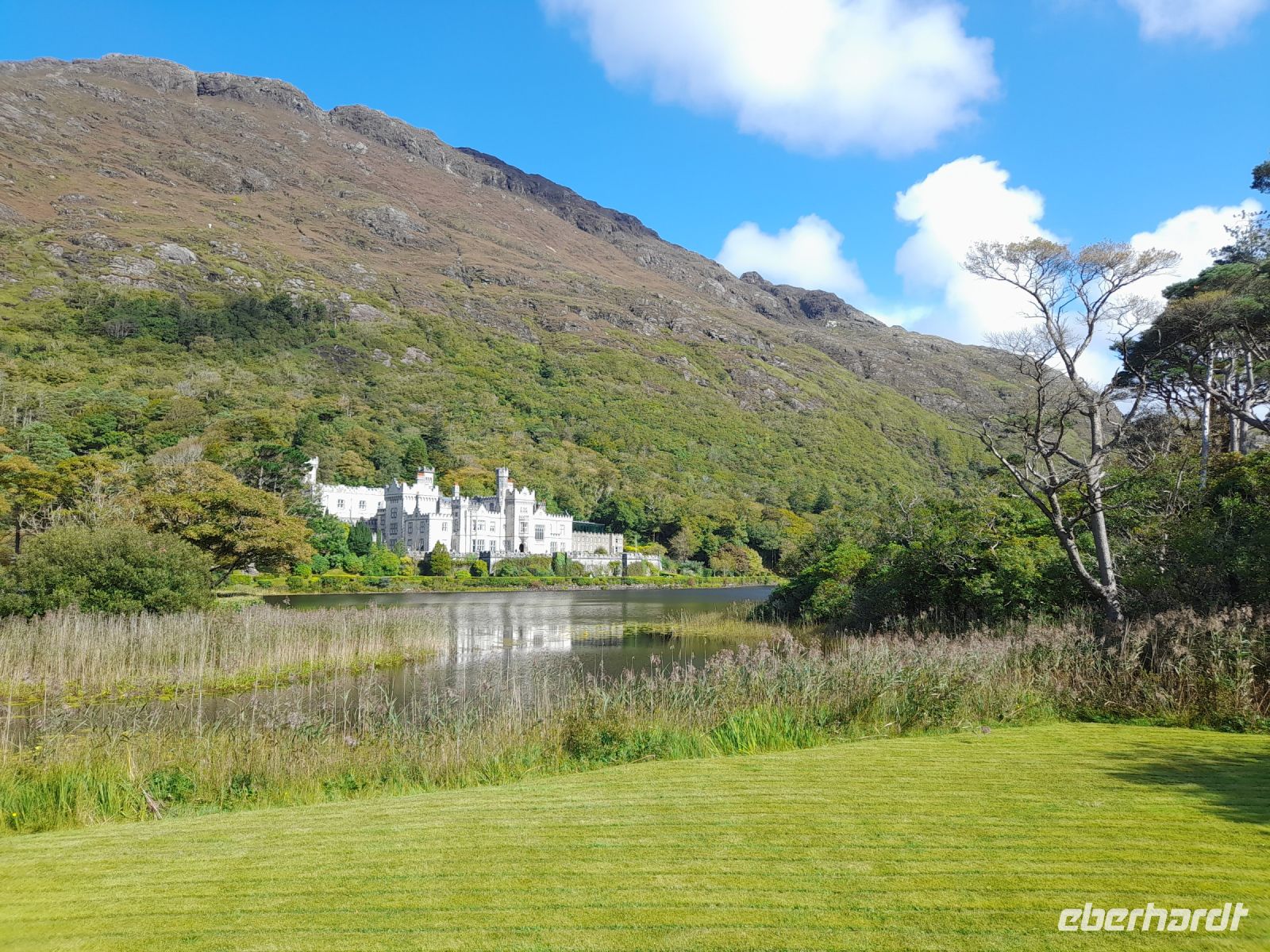 Kylemore Abbey. Das viktorianische Schloss ist eines der beliebtesten Fotomotive der Region und zudem ein aktives Kloster. Seit 1920 leben die Nonnen des ältesten irischen Benediktinerinnen-Ordens hier. Bei einer Besichtigung können wir uns sowohl das Schloss, als auch die herrlichen Gartenanlagen ansehen.