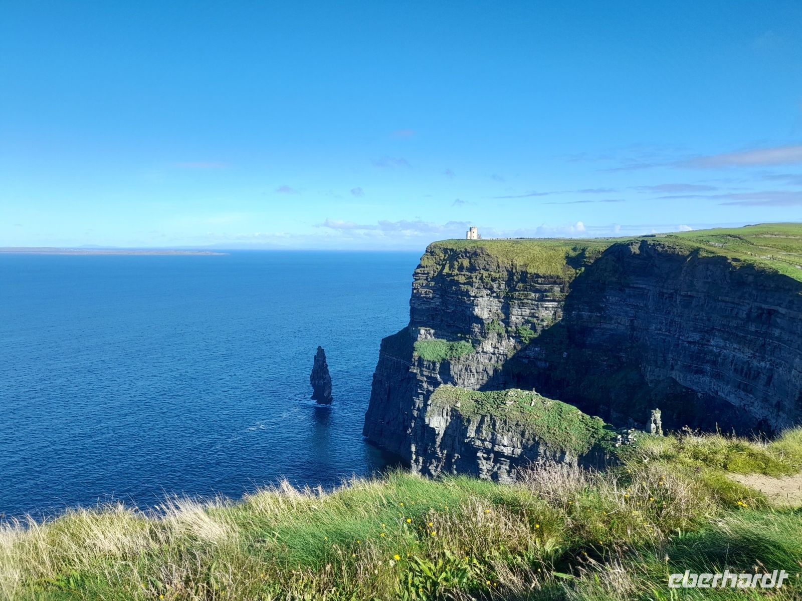 Die fast zehn Kilometer lange Steilklippenformation ragt fast senkrecht aus dem Atlantik. Am Südende, dem Hag’s Head, haben sie eine Höhe von ungefähr 120?m, nördlich des O’Brien’s Tower erreichen sie sogar 214?m. Am Kliff leben 30 Arten von Seevögeln, die bekanntesten sind die winzigen Papageientaucher, die sich in die entlegensten Ecken zurückziehen um dort zu Brüten. Das irische Wetter meint es wirklich gut mit uns und so können wir die Aussichten von den Wanderwegen entlang der Klippen richtig genießen. Wer noch ein wenig mehr Hintergrund zu Flora und Fauna, sowie zur Regionalgeschichte möchte, kann das informative Besucherzentrum besichtigen.