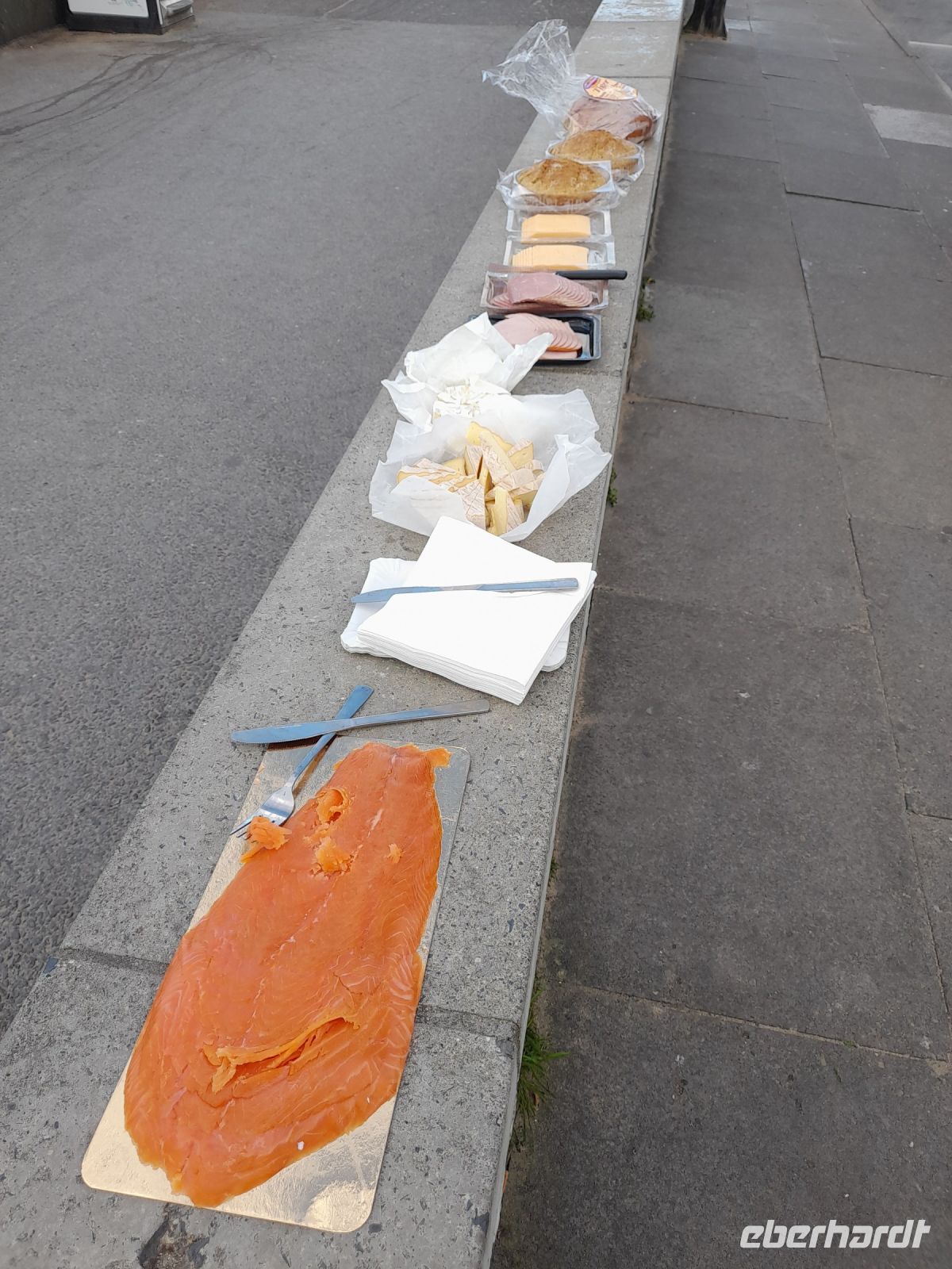 Gegen Mittag brechen wir auf und folgen der Küstenstraße bis in den nahegelegenen Badeort Lahinch. Zum Baden bleibt uns zwar keine Zeit, aber als Überraschung gibt es ein spontanes Picknick mit örtlichen Leckereien – ganz besonders der geräucherte Fisch vom Burren Smokehouse. Sogar die Queen hat diesen auf ihrem letzten Staatsbesuch schon gekostet. Nachdem wir schon die Geschichte vom Lachs der Weisheit gehört haben, bleibt nun zu hoffen, dass von dessen Gaben doch auch ein klein wenig auf uns übergehen wird.
