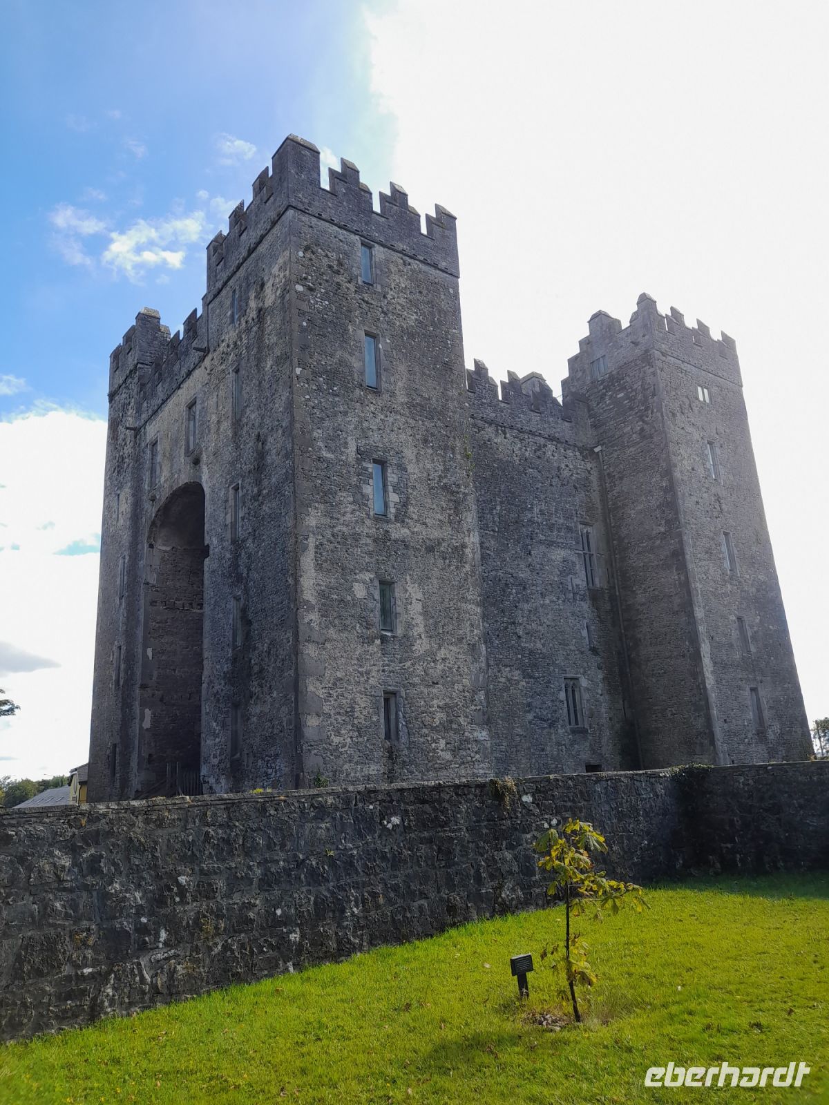 Nach der Mittagspause folgen wir dann recht bald dem Fluss Shannon, dem längsten Fluss des Landes, bis wir in der Nähe der Stadt Limerick das Bunratty Castle erreichen. Die Burg ist heute nach dem originalgetreuen Zustand aus dem 15. Jahrhundert restauriert und eingerichtet und bietet einen tollen Einblick in das Leben eines Clanoberhauptes. So glamourös wie man es sich vorstellen könnte, war auch der Alltag des Adels damals nicht. Wie hingegen das gewöhnliche Volk zum Teil noch bis ins 20. Jahrhundert lebte, kann man im angegliederten Freilichtmuseum anhand zahlreicher Gebäude aus ganz Irland erfahren, die anderswo abgebaut und hier wiederaufgebaut wurden.