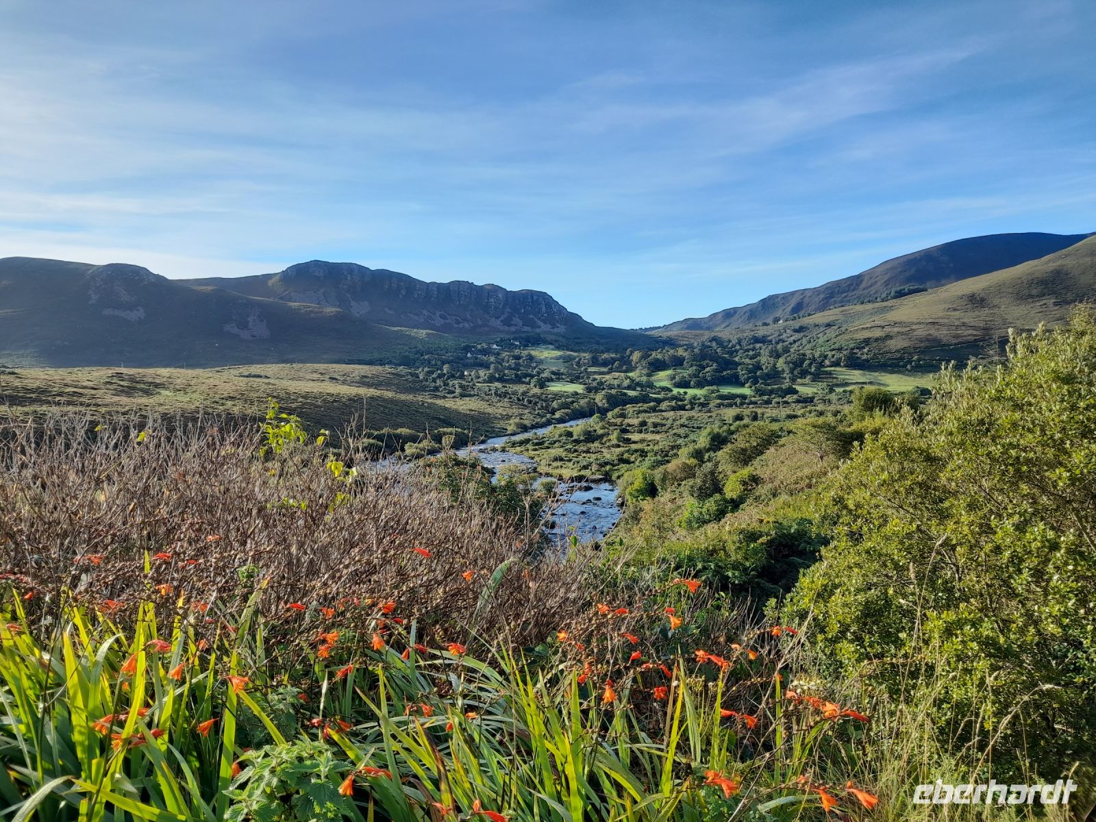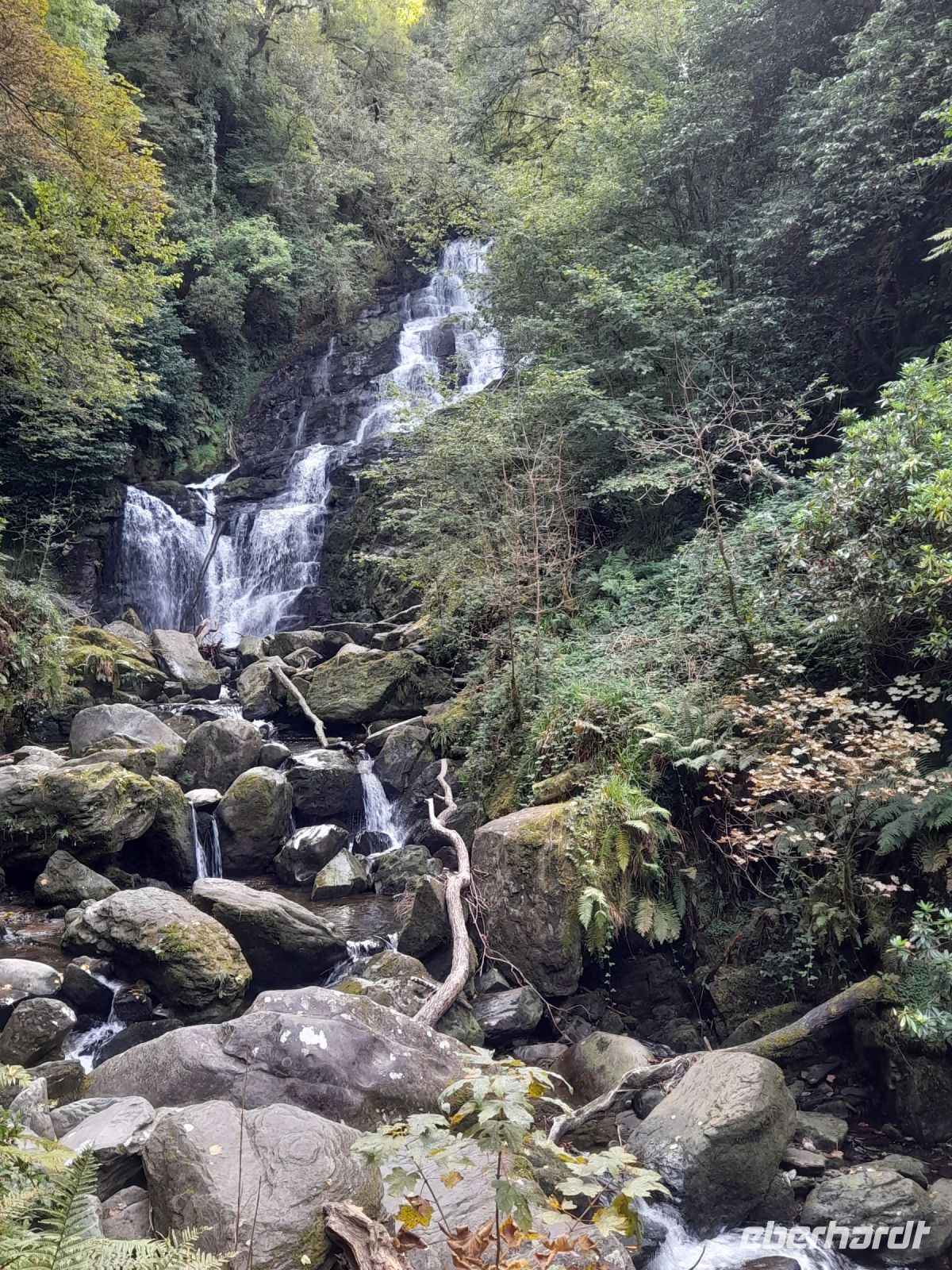 Über Caherdaniel, Castle Cove und Sneem geht es weiter entlang der N70, dann landeinwärts bis nach Moll's Gap. Seinen Namen hat der Ort von Moll Kissane, welche hier in den 1820er Jahren einen illegalen Gasthof betrieb, zu Zeiten als die Straße gerade im Bau gewesen ist. Wo einst die Hofdamen Queen Victorias die oberen Seen des Killarney Nationalparks bestaunten, bekommen wir am sogenannten Lady's View einen Eindruck, warum die Damen damals so begeistert gewesen sind. Die Aussicht hier ist wirklich toll. Unseren letzten Stopp legen wir am Torc Wasserfall ein, ein gelungener Abschluss für unsere wirklich perfekte Rundfahrt über den Ring of Kerry.