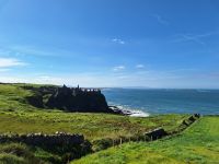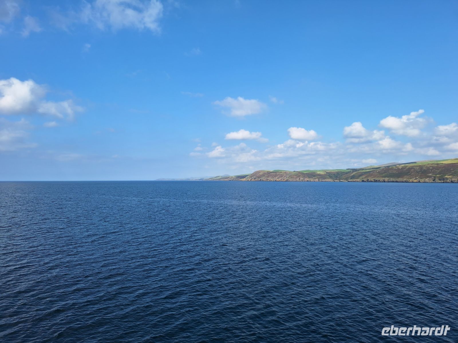 Durch die südlichsten Gebiete Schottlands, Ayrshire und Galloway fahren wir nun zügig immer weiter nach Westen, denn unsere nächste Fähre wartet nicht. Von dem relativ unspektakulären Örtchen Cairnryan aus nehmen wir dann am Nachmittag Kurs auf Nordirland. Unsere Fährverbindung nach Belfast bemisst zwar immerhin ganze 68 Kilometer, allerdings ist die beträgt die kürzeste Entfernung zwischen den beiden britischen Inseln nur 21 Kilometer zwischen dem Mull of Kintyre in Schottland und Ballycastle in Nordirland. Bei strahlendem Sonnenschein haben wir eine tolle Aussicht auf die Küstenlinien und die Zeit vergeht wir im Flug.