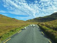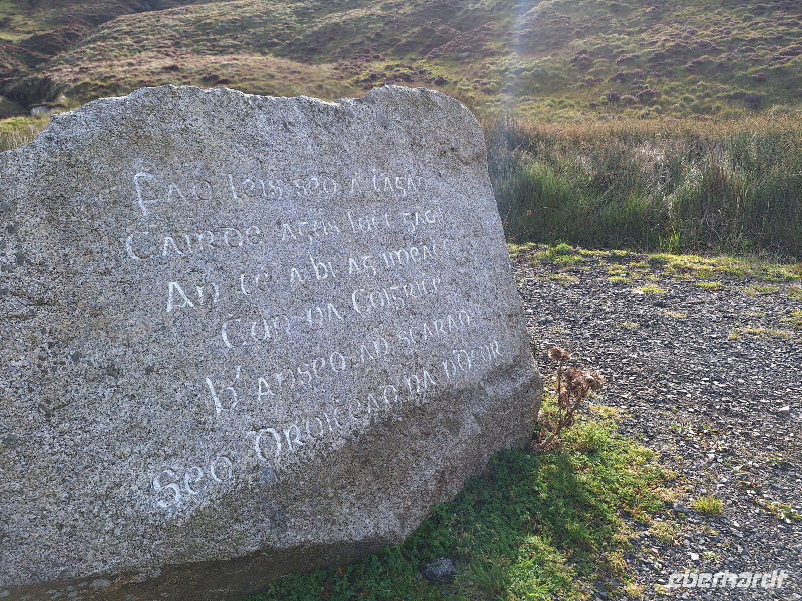 Wir folgen dann weiter dem Wild Atlantic Way, genießen den Blick auf die vorgelagerten Tory Islands und die wunderschöne Küstenlandschaft der Bloody Forelands. Schließlich durchqueren wir die Berge noch einmal und folgen der Muckish Gap von Falcarragh nach Letterkenny. Hier treffen wir nicht nur auf mehrere Schafherden auf der Straße, sondern auch auf eine alte Brücke, die als "Bridge of Tears" oder "Bridge of Sorrow" bekannt ist. Bis hierher begleiteten Familie und Freunde ihre meist jungen Angehörigen, die auf dem Weg nach Derry waren, um dort ein Schiff in Richtung Amerika zu besteigen - in der Hoffnung auf ein besseres Leben und der Gewissheit, dass man sich höchstwahrscheinlich nie mehr wiedersehen würde.