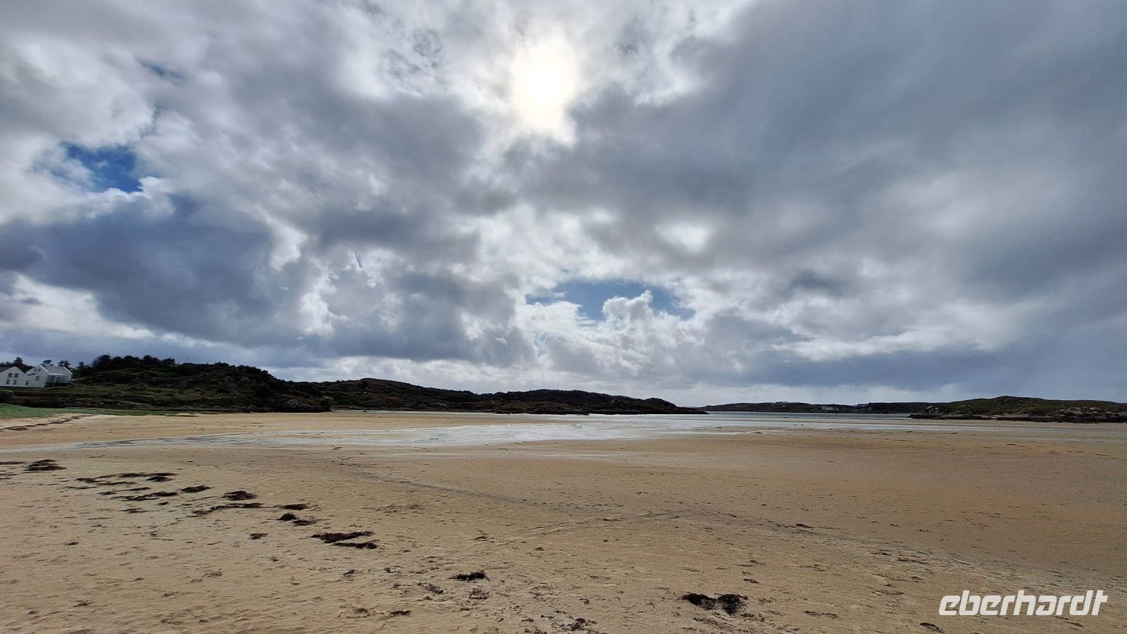 Gegen Mittag geht es dann weiter durch die wildromantische Landschaft Donegals. Wir durchqueren die Derryveagh Mountains und mit herrlichem Blick auf den höchsten Berg Donegals, Mount Errigal, und ins gegenüberliegende Tal, legen wir einen kleinen Stopp ein - und einige genehmigen sich bei dieser Gelegenheit einen Irish Coffee zur Feier des Tages. An der Küste angekommen folgen wir dem Wild Atlantic Ways ein Stückchen nach Norden und legen eine Pause ein am malerischen Strand von Bunbeg. Ein großes Staunen geht durch den Bus - wer würde so einen herrlichen Sandstrand an der Nordküste Irlands erwarten?