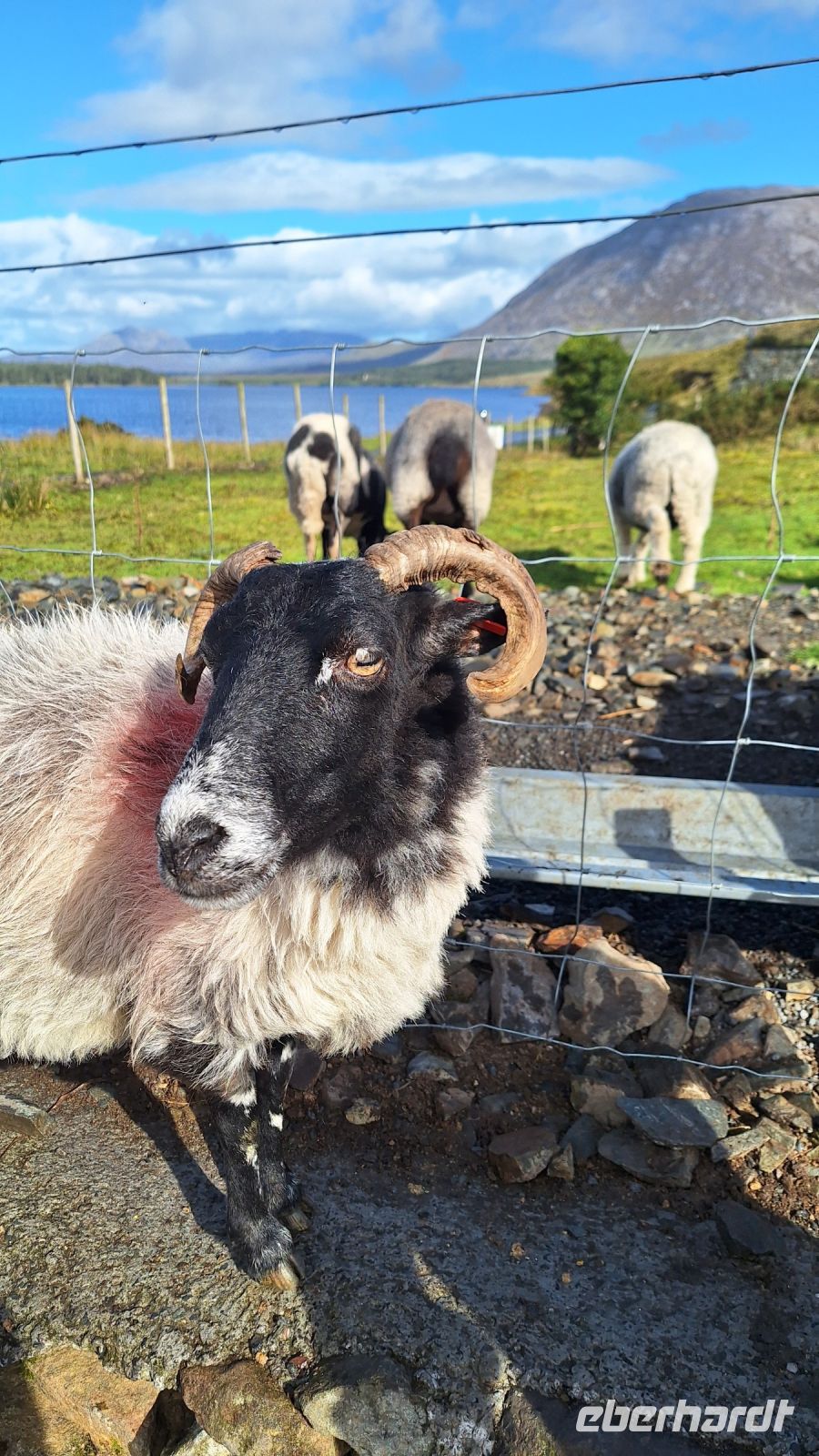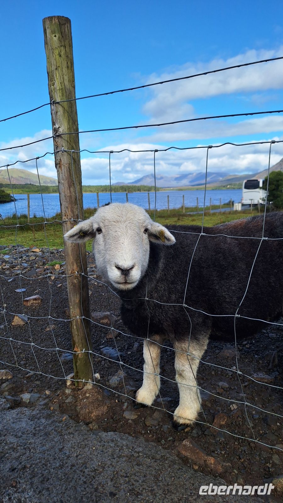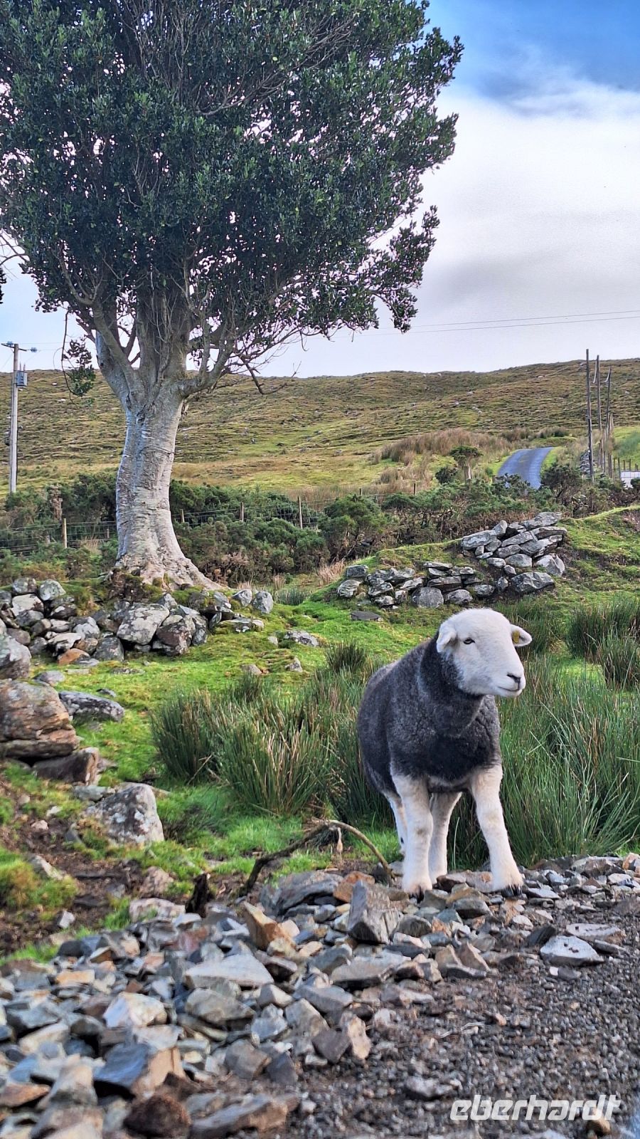 Unterbrochen von einigen Fotostopps geht es dann weiter durch das Inagh Tal durch die wunderbare Landschaft Connemaras. Hier treffen wir neben den typischen Scottish Blackface Schafen auch auf eine ganz besondere Rasse: die Herdwick-Schafe sind bei ihrer Geburt schwarz und werden dann mit zunehmendem Alter erst an den Beine, dann an der Nase und schließlich am ganzen Körper weiß. Beinahe wären sie im 19. Jahrhundert ausgestorben, wenn nicht ausgerechnet die Autorin Beatrix Potter sich für den Erhalt der Rasse eingesetzt hätte.