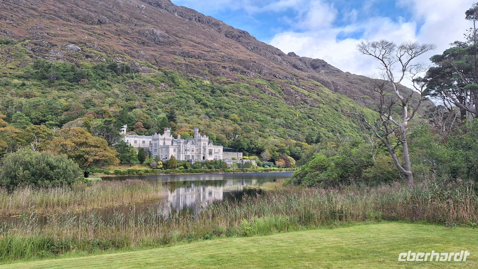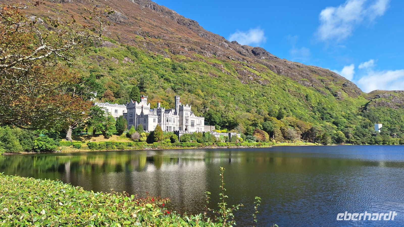 Nun ist es nicht mehr weit bis zur Kylemore Abbey. Das viktorianische Schloss ist eines der beliebtesten Fotomotive der Region und zudem ein aktives Kloster. Seit 1920 leben die Nonnen des ältesten irischen Benediktinerinnen-Ordens hier. Bei einer Besichtigung können wir uns sowohl das Schloss, als auch die herrlichen Gartenanlagen ansehen.