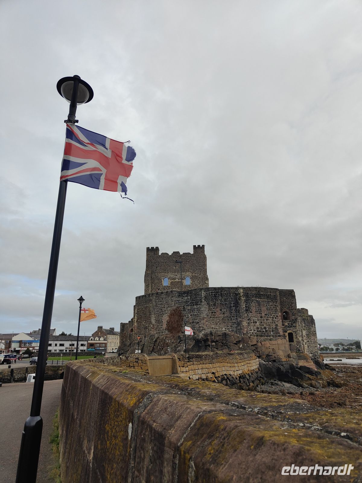 Durch die südlichsten Gebiete Schottlands, Ayrshire und Galloway fahren wir nun zügig immer weiter nach Westen, denn unsere nächste Fähre wartet nicht. Von dem relativ unspektakulären Örtchen Cairnryan aus nehmen wir dann am Nachmittag Kurs auf Nordirland. Unsere Fährverbindung nach Belfast bemisst zwar immerhin ganze 68 Kilometer, allerdings ist die beträgt die kürzeste Entfernung zwischen den beiden britischen Inseln nur 21 Kilometer zwischen dem Mull of Kintyre in Schottland und Ballycastle in Nordirland. Bei strahlendem Sonnenschein haben wir eine tolle Aussicht auf die Küstenlinien und die Zeit vergeht wir im Flug.