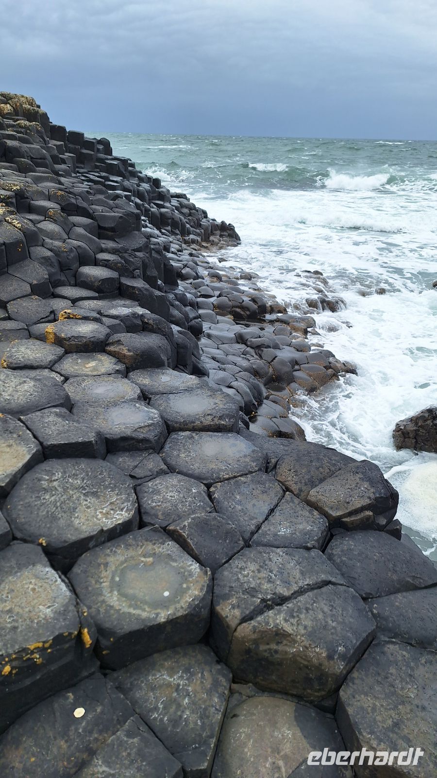 So viel zur Folklore. Fakt ist, dass der Giant's Causeway ein außerordentliches Naturdenkmal ist. Etwa 40.000 hexagonale Basaltsäulen verbinden tatsächlich die nordirische Küste mit der Hebrideninsel Staffa. Heute weiß man, dass die vulkanische Tätigkeit, die den Basalt entstehen ließ, etwa 60 Millionen Jahre her sein muss und eine tektonische Verschiebung danach so viel Druck auf das neue Gestein ausübte, dass es in seiner einzigartigen Art und Weise brach. Bei unserem Besuch haben wir die Gelegenheit, einen ausgedehnten Spaziergang entlang der Küste zu unternehmen. Im Anschluss kann man sich im 2012 neueröffneten Besucherzentrum eine Ausstellung zur Geologie und der Entstehung des Giant's Causeway ansehen.
