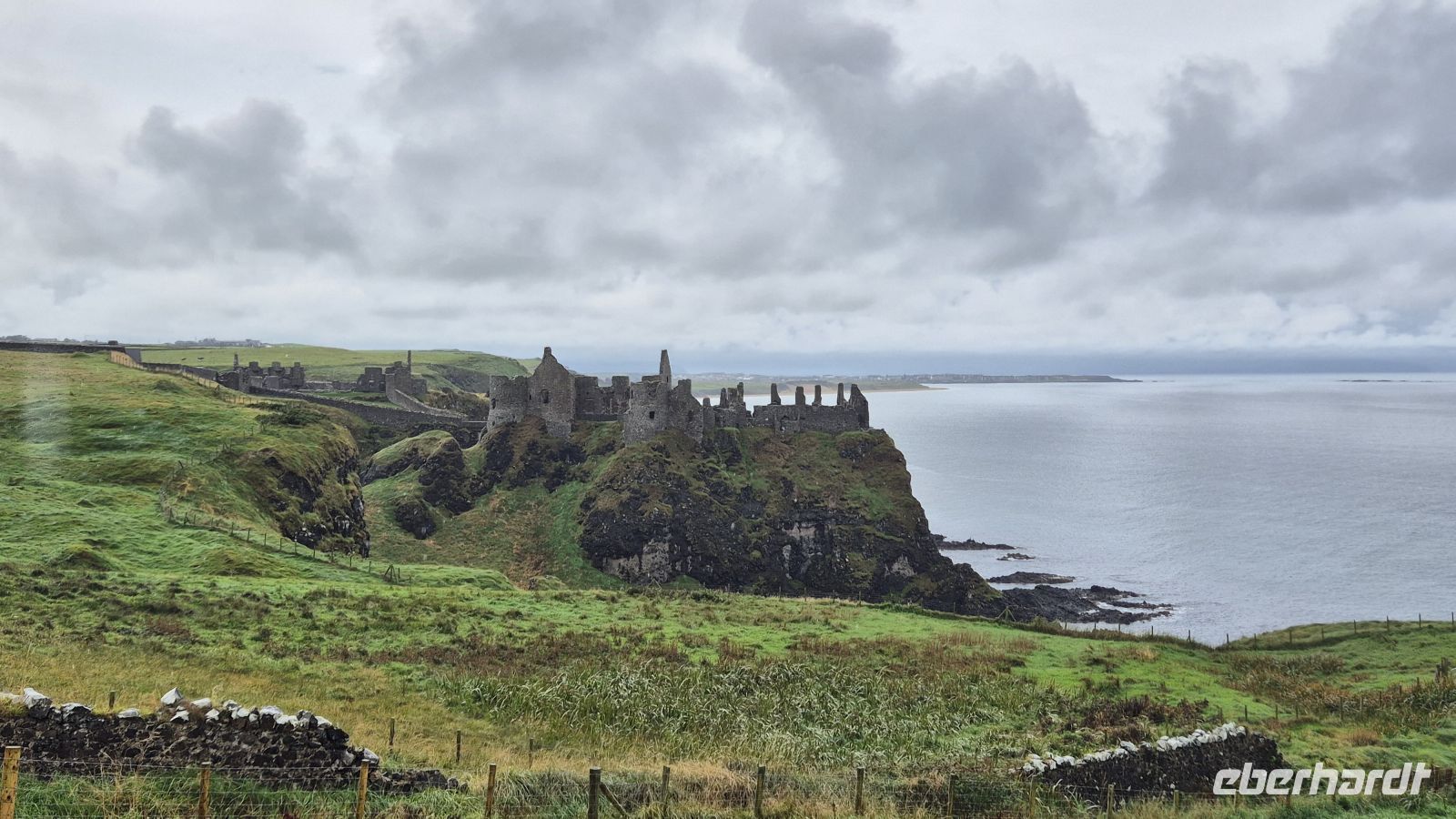 Durch die südlichsten Gebiete Schottlands, Ayrshire und Galloway fahren wir nun zügig immer weiter nach Westen, denn unsere nächste Fähre wartet nicht. Von dem relativ unspektakulären Örtchen Cairnryan aus nehmen wir dann am Nachmittag Kurs auf Nordirland. Unsere Fährverbindung nach Belfast bemisst zwar immerhin ganze 68 Kilometer, allerdings ist die beträgt die kürzeste Entfernung zwischen den beiden britischen Inseln nur 21 Kilometer zwischen dem Mull of Kintyre in Schottland und Ballycastle in Nordirland.